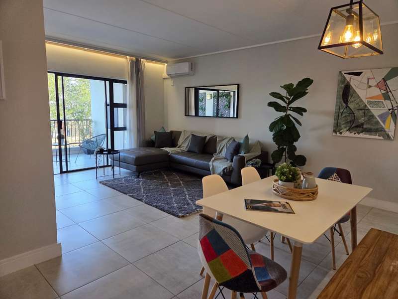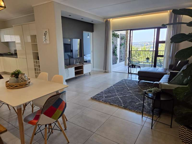 Situated on the first floor is this beautiful, fully furnished apartment. With 3 bedrooms, 2 bathrooms, back up power and airconditioning. Upon entering the apartment you are greeted with a open plan lounge, dining room which leads out to a covered patio with built in gas braai and lovely views of Waterfall. A modern kitchen with integrated Smeg appliances, a fridge/freezer, dishwasher, washing machine. The main bedroom has its own en-suite bathroom with a shower and the other 2 bedrooms share a full bathroom. There is an ideal study nook area between the 2 bedrooms. The 3rd bedroom which is currently equipped as a study can be changed and fitted with a 3rd bed if required. The unit includes a limited cleaning service once weekly. There are 2 carports assigned to the unit. The estate offers a lifestyle centre with pool, restaurant, convenience store, Gym, Spa and so much more… Disclaimer: Whilst every care has been taken in the preparation of this listing we cannot be held responsible for any errors/omissions that may occur.
