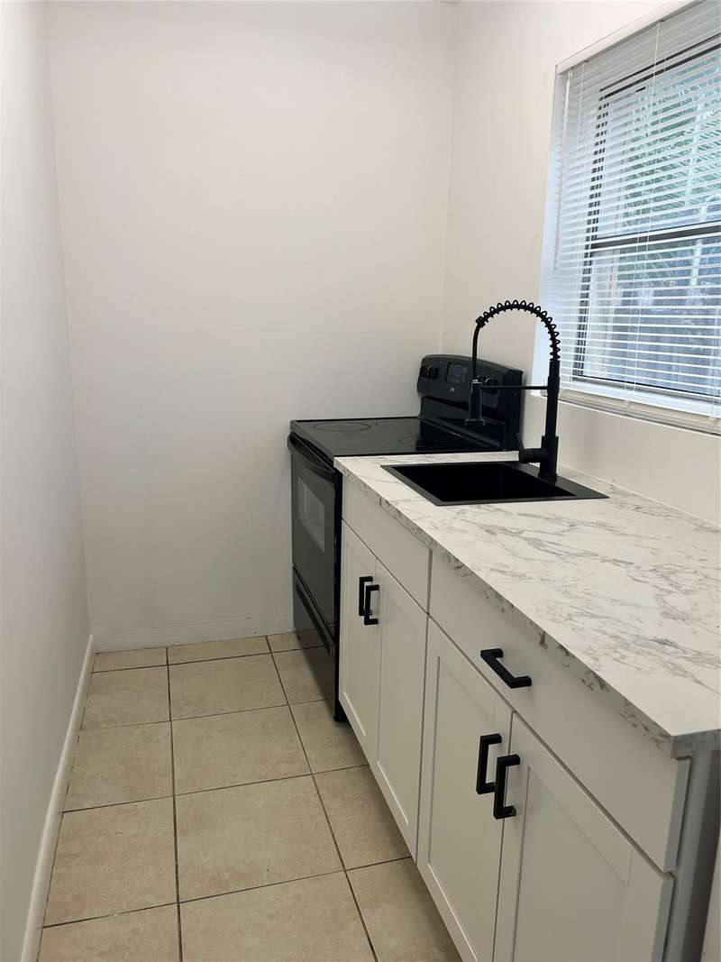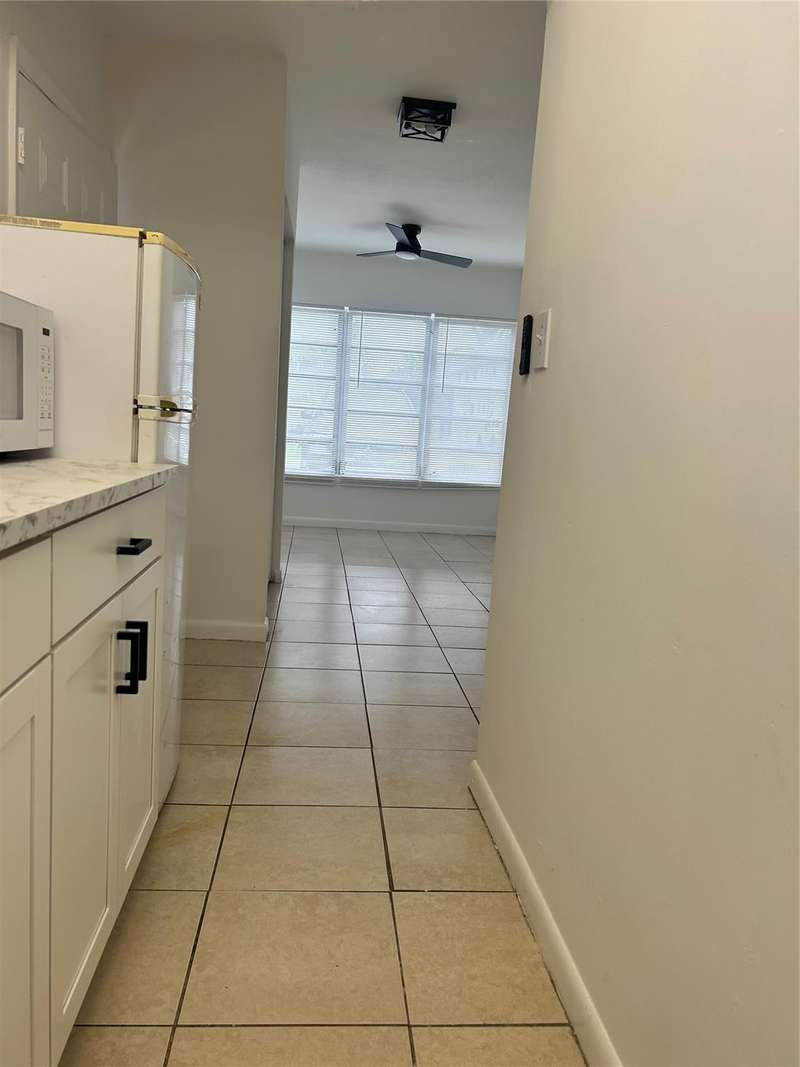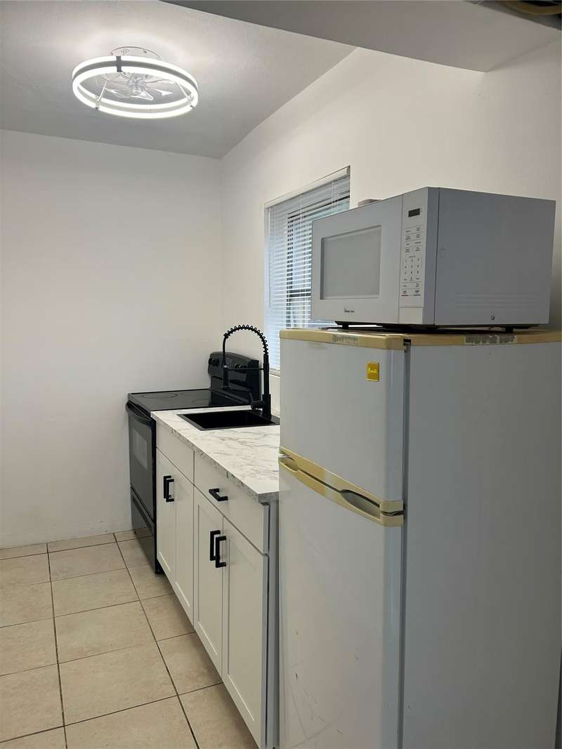 Freshly painted in crisp white, this luminous efficiency, attached to main house, features a brand-new kitchen with updated cabinets and countertop, plus essential appliances including new refrigerator, oven, and microwave. The space offers modern comfort with updated air conditioning, ceiling fans, and abundant natural light. Two convenient parking spaces. Electricity, water and sewer included in the rent. No condo approval needed. Ready to move in. Centrally located in a nice and quiet area.