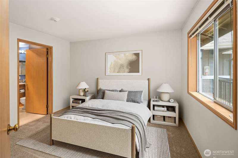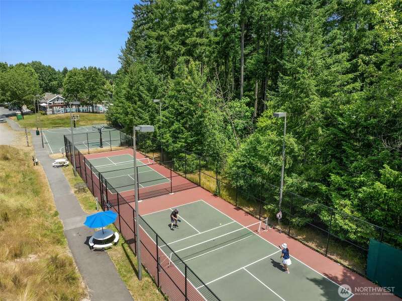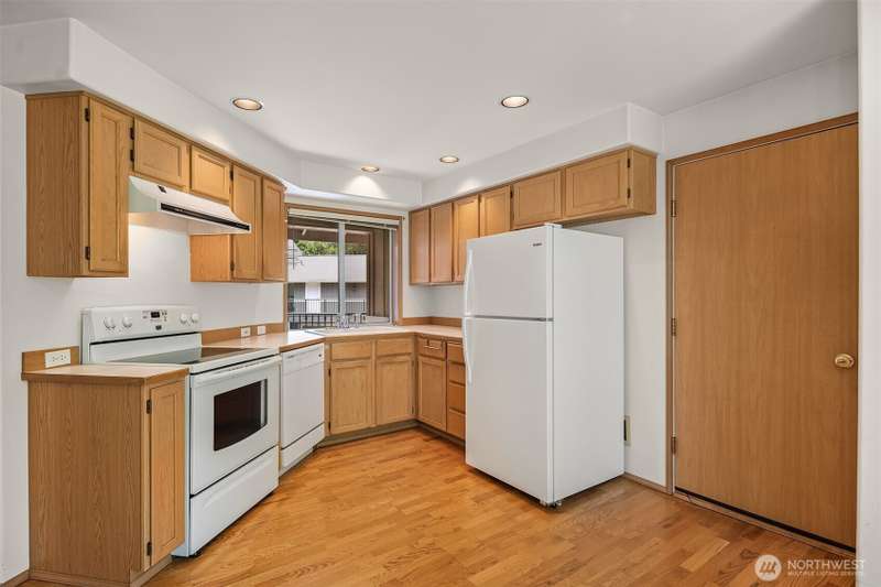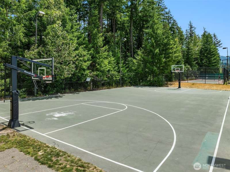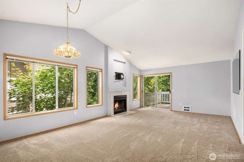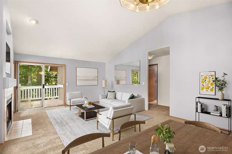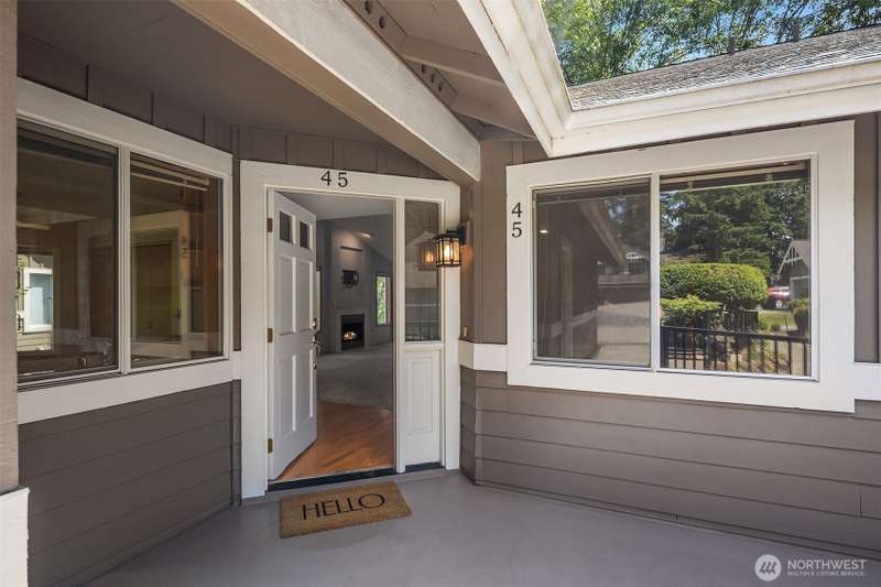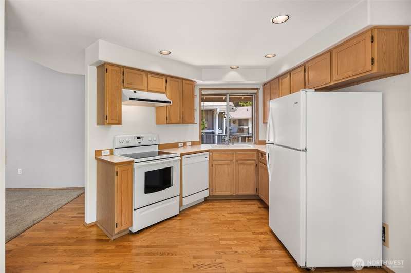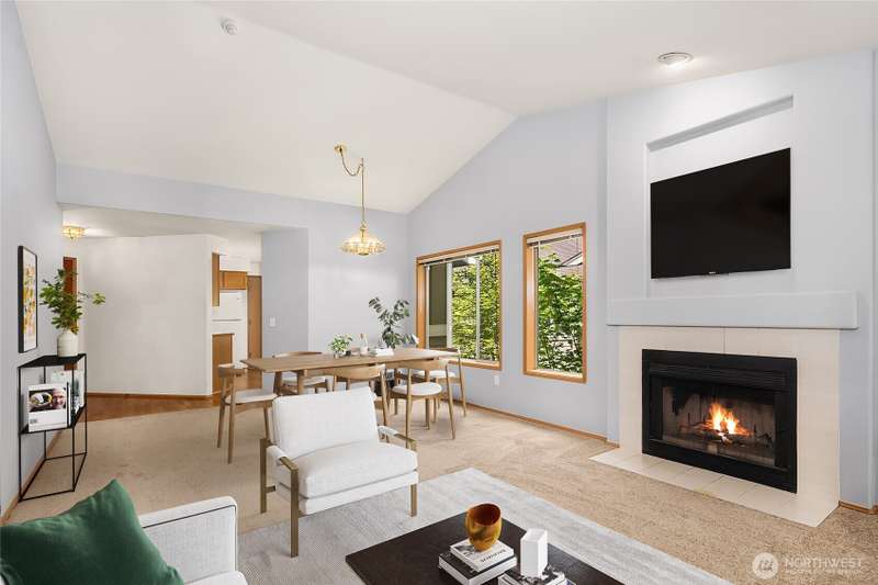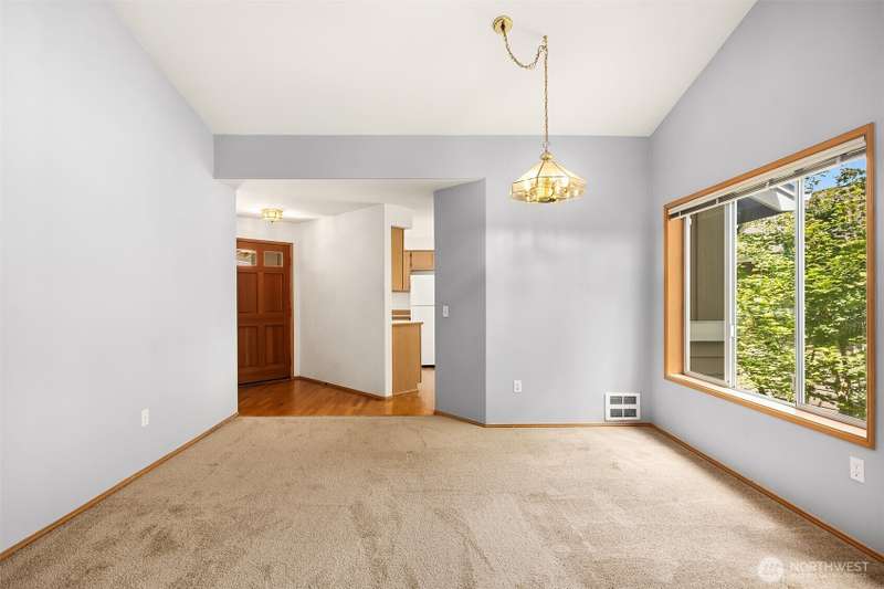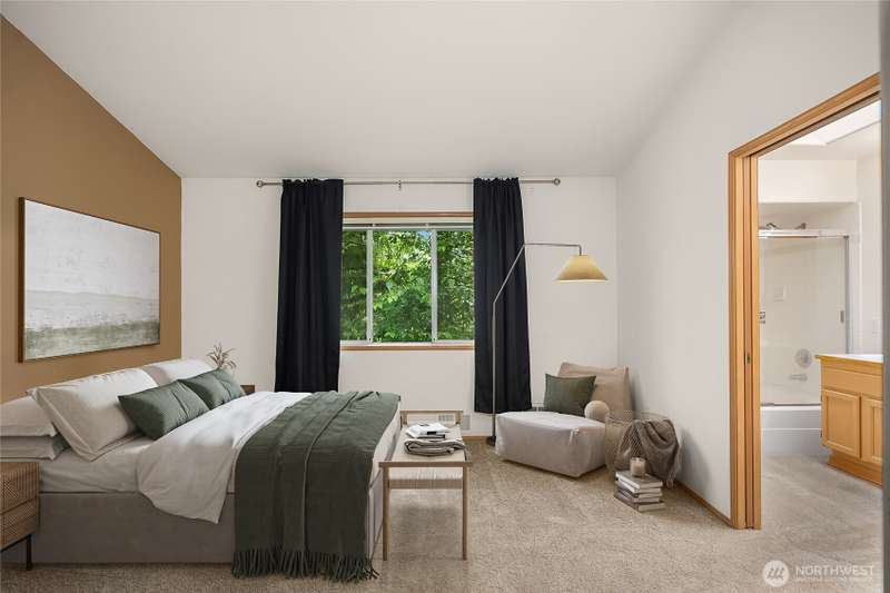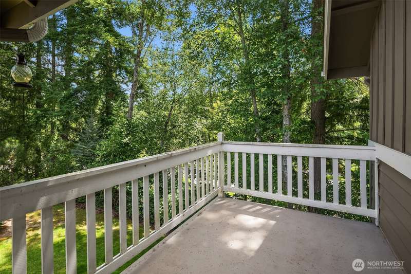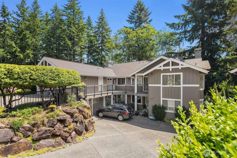 Serene top-floor 1-level townhome in desirable Barclay Square. Kitchen & baths feature clean, well-maintained classic finishes. Vaulted ceilings, skylights & bay windows fill the home with natural light and views of the surrounding NW landscape. 2 beds, 2 baths including primary suite with large walk-in closet & soaking tub. Eating nook with bay window off kitchen, formal dining space and spacious living room, full-size W/D & private peaceful patio. Street-level entry—no stairs—w/direct interior access from private 1-car garage + designated driveway parking. Prime Klahanie location with access to trails, pool, sports courts, clubhouse & shopping. Exceptional opportunity in a quiet, beautifully maintained community.