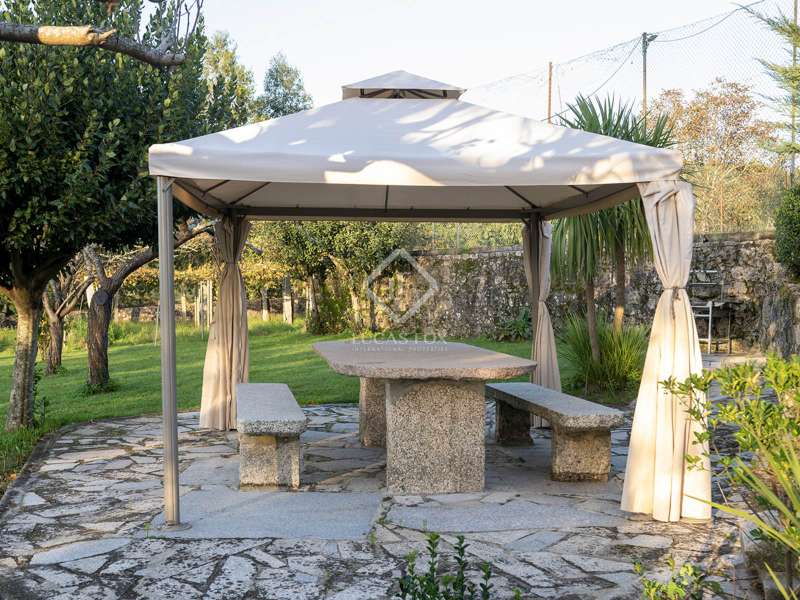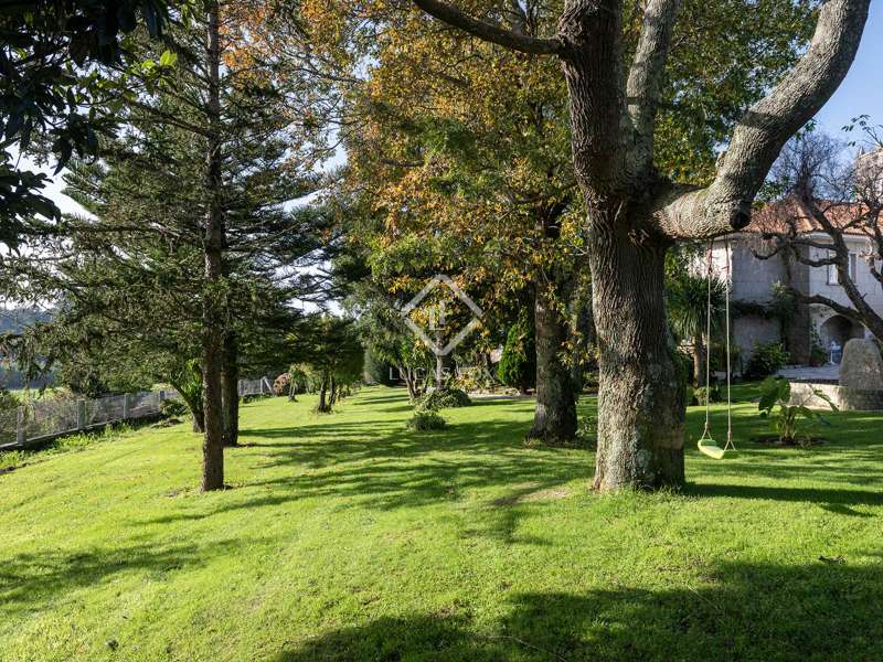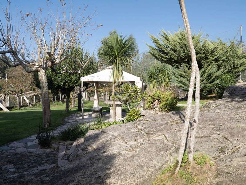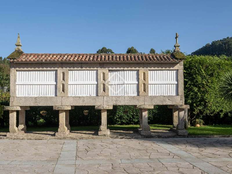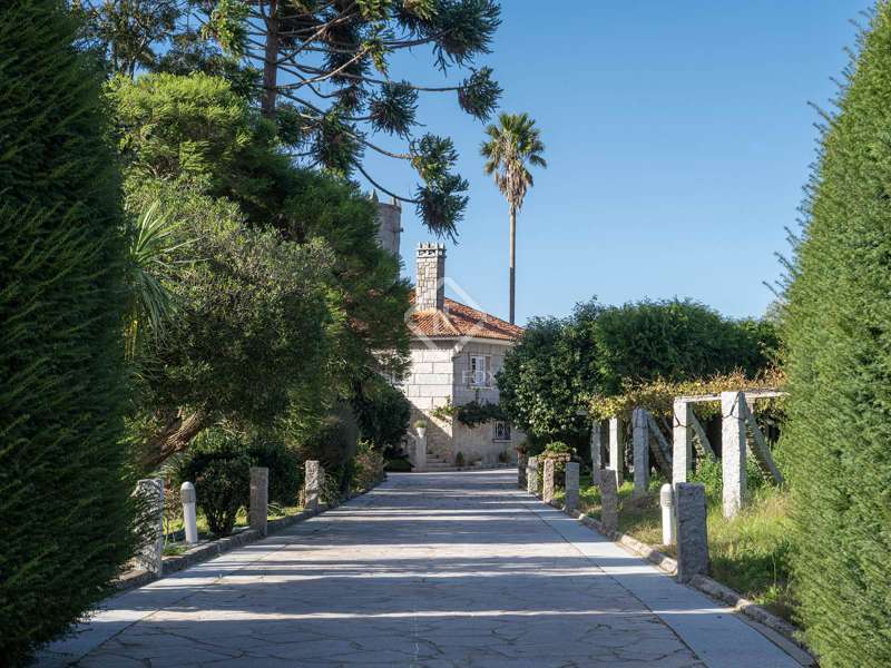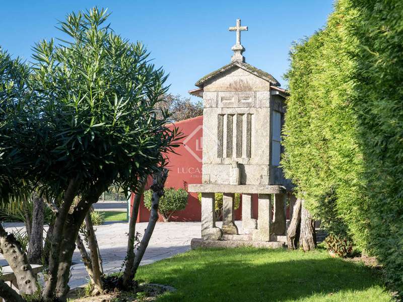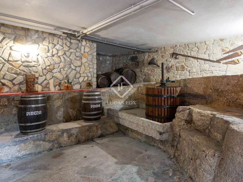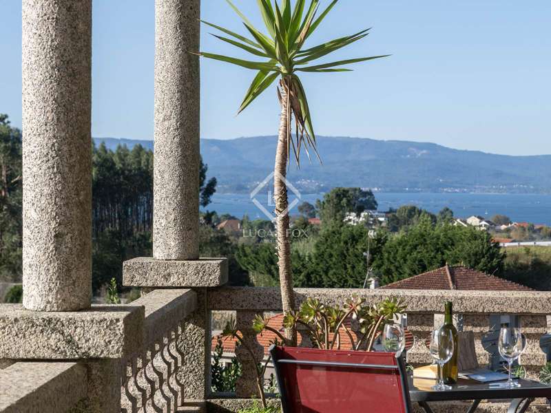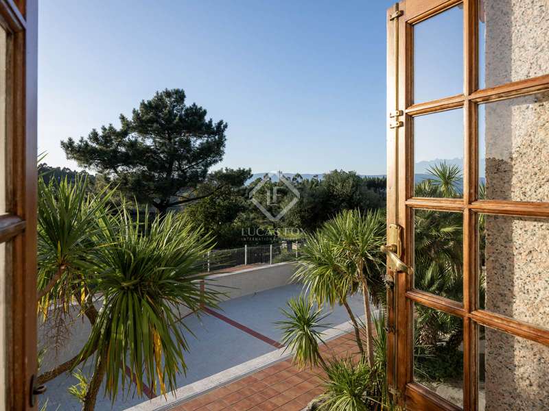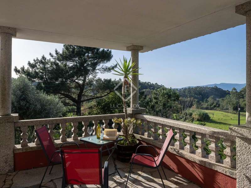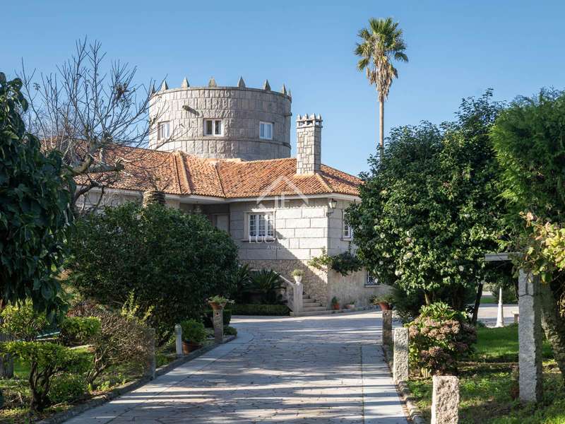 On the outskirts of Villagarcia and with views over the Arousa estuary, we find this unique detached family home, which includes a large plot and substantial Albariño vines. The solid-stone property, built in the 1980s, has been well cared-for and features a large landscaped garden with pond and barbecue area, a large swimming pool. Upon entering through a grand, gated driveway, there is a large parking area to the front of the house, which is to the left and features a central tower. Going up the steps and through the main entrance, we find an ample entrance hall and the fitted kitchen to the right. Straight ahead is the spacious living room which features a high circular ceiling thanks to the property's central tower, which has a sitting room and rooftop views over the whole area. The living room, hallway and bedrooms features a polished wood floor which is in excellent condition. At the end of the living area, double doors open out onto a large terrace with views over the swimming pool and to the estuary beyond. The hallway takes us from the lounge to the sleeping areas, all on the ground floor, and consists of five good-sized bedrooms, two with en-suite and the other three sharing a family bathroom. Most of the living accommodation is on the same floor, but going downstairs we also find a basement level, which is home to a large summer eating area, wood-fired oven and grill, as well as the machine room and cellar and a bathroom, convenient for use after the pool. From here there is access to the large pool and chill out area. Outside there is a great deal of space to relax, gardens with a pond, fruit trees and lawned areas amid vines which are currently harvested in an agreement with a local vineyard. There is also a tennis court, which requires resurfacing. This detached home would suit a growing family or a couple that likes entertaining, and looking for a relaxing way of life, at the same time being close to town and the beach. The property may suit investors looking for a place to rent-out in summer months. Please contact us for further information.