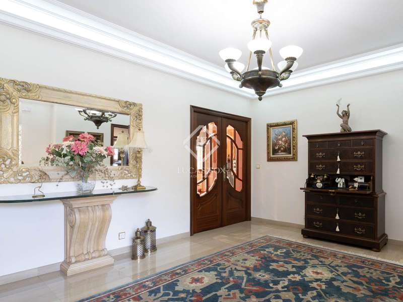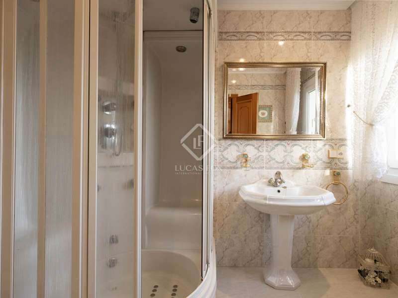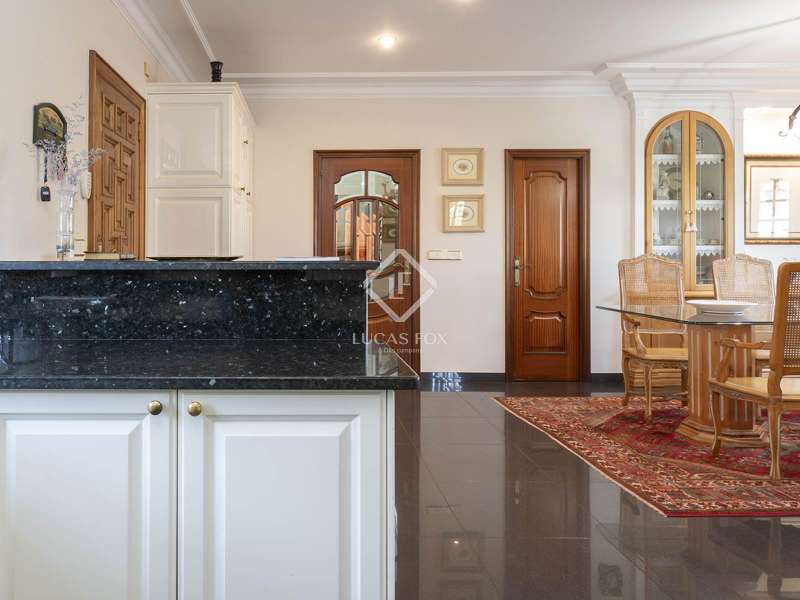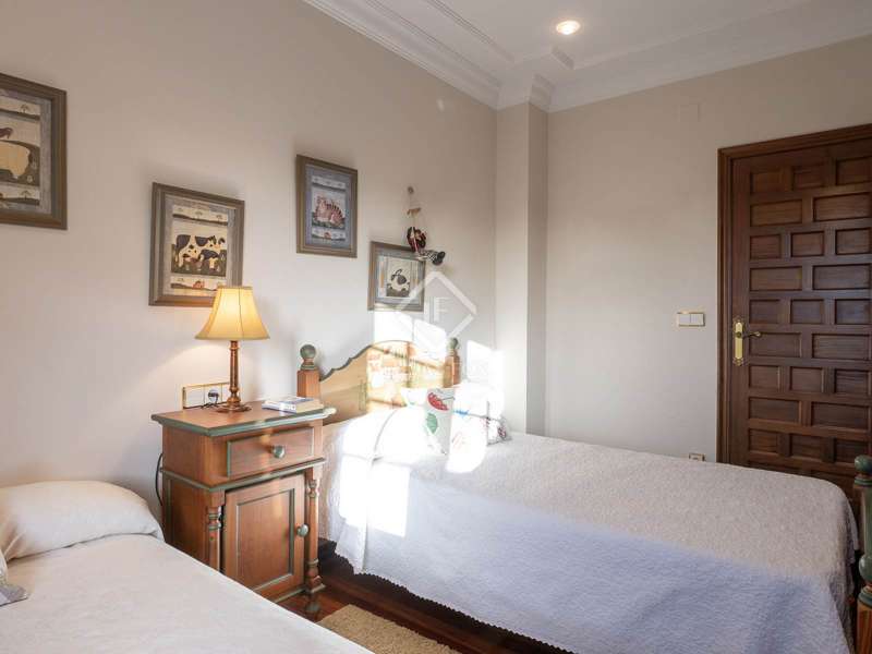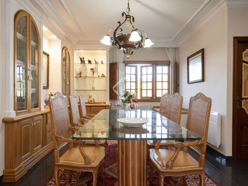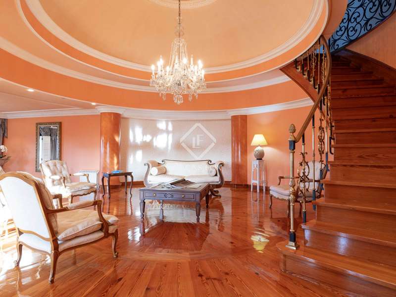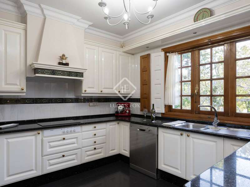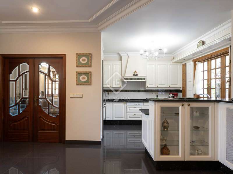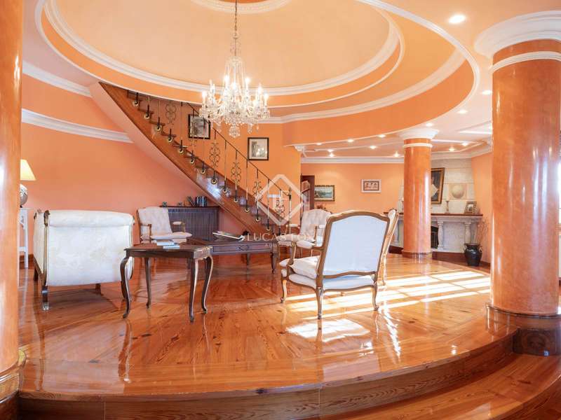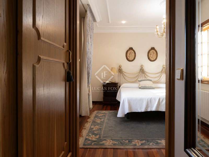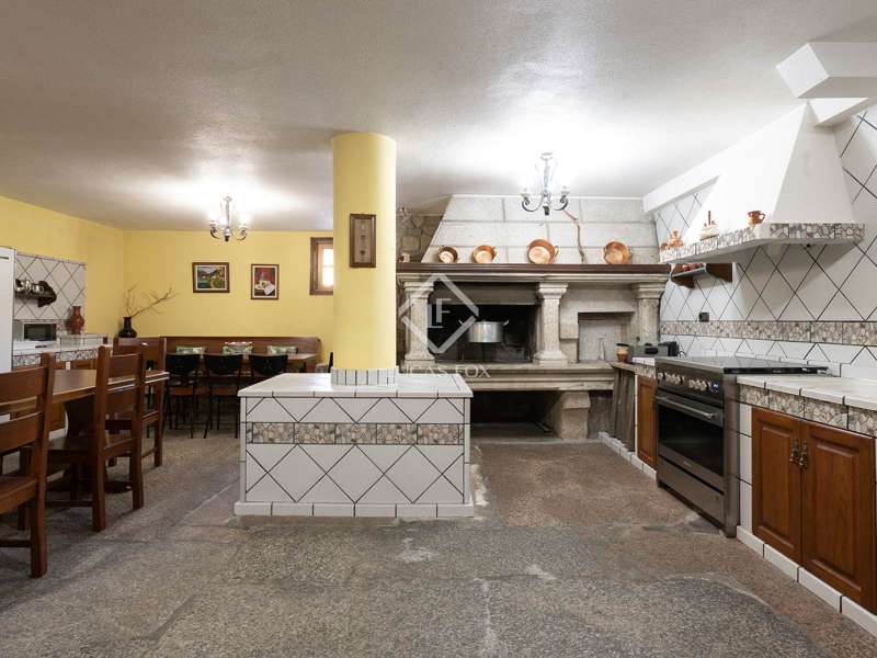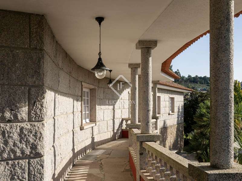 On the outskirts of Villagarcia and with views over the Arousa estuary, we find this unique detached family home, which includes a large plot and substantial Albariño vines. The solid-stone property, built in the 1980s, has been well cared-for and features a large landscaped garden with pond and barbecue area, a large swimming pool. Upon entering through a grand, gated driveway, there is a large parking area to the front of the house, which is to the left and features a central tower. Going up the steps and through the main entrance, we find an ample entrance hall and the fitted kitchen to the right. Straight ahead is the spacious living room which features a high circular ceiling thanks to the property's central tower, which has a sitting room and rooftop views over the whole area. The living room, hallway and bedrooms features a polished wood floor which is in excellent condition. At the end of the living area, double doors open out onto a large terrace with views over the swimming pool and to the estuary beyond. The hallway takes us from the lounge to the sleeping areas, all on the ground floor, and consists of five good-sized bedrooms, two with en-suite and the other three sharing a family bathroom. Most of the living accommodation is on the same floor, but going downstairs we also find a basement level, which is home to a large summer eating area, wood-fired oven and grill, as well as the machine room and cellar and a bathroom, convenient for use after the pool. From here there is access to the large pool and chill out area. Outside there is a great deal of space to relax, gardens with a pond, fruit trees and lawned areas amid vines which are currently harvested in an agreement with a local vineyard. There is also a tennis court, which requires resurfacing. This detached home would suit a growing family or a couple that likes entertaining, and looking for a relaxing way of life, at the same time being close to town and the beach. The property may suit investors looking for a place to rent-out in summer months. Please contact us for further information.