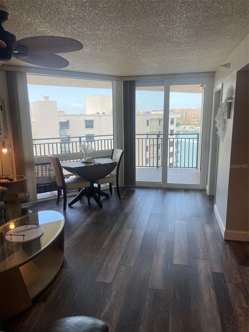 Island Walk on Island Estates offers this 11th floor penthouse 2 bedroom, 2 bath condo gem with fantastic views of both the intracoastal waterways and the Gulf open waters! This condo has been beautifully updated and comes furnished. The open kitchen to living/dining area gives a larger space feel and is great entertaining or just relaxing in your cozy, quaint home. A large balcony, accessible from bedroom and living room provides you with a enchanting views and a great place to watch a sunset and enjoy your beverage of choice. This condo also comes with a covered parking space (#132, along with a large indoor storage (S103). Island Walk is also a wonderful waterfront community and its amenities including a heated pool, hot tub, tennis/pickleball courts, grills, a boardwalk with boat slips that could possibly be rented or purchased. Island Walk is a well, meticulously maintained building. The milestone and structural integrity inspections have been successfully completed. Though the area was struck twice by hurricanes last year, NO water or wind damage was present. Building updates include exterior painting (2022), new roof, remodeled lobby entrance area, and balcony, railing, and patio coating. The local area offers wonderful restaurants, shops, grocery store, bank, and of course Clearwater's fabulous Aquarium and rehabilitation center for aquatic life. BTW, America's number 1 beach is just outside the community and less than one mile to that beautiful sandy stretch of beach, See You Soon!!!