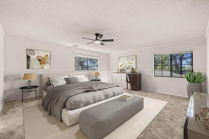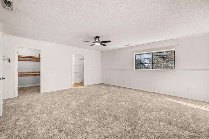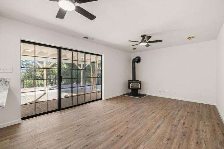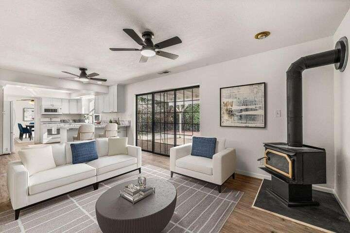 Welcome to your own private retreat ON THE GOLF COURSE! This spacious home features five bedrooms, three bathrooms and an oversized 3 car garage. Convenient main-level bedroom and bathroom provide easy access, while the expansive primary suite includes a walk-in closet and a private bath. Relax in the cozy family room, complete with a freestanding wood stove for the perfect winter ambiance. From the back of the home, take in breathtaking views of the golf course, with trees thoughtfully placed for privacy. Situated in a secure, gated community, this home offers exceptional amenities. Horse enthusiasts can board their horses at the well-equipped facility and explore miles of scenic riding trails. On warm days, cool off in the community pool or challenge friends to a game of tennis or pickleball. With its unbeatable location and resort-style living, this home is truly a rare find!