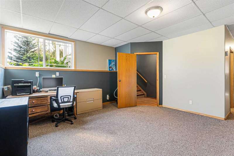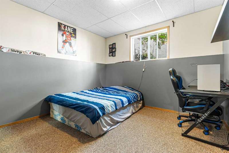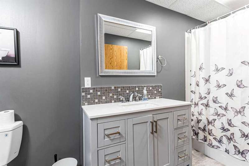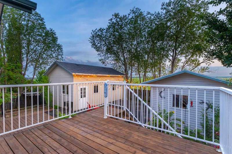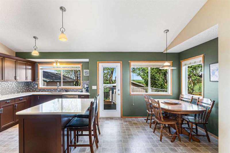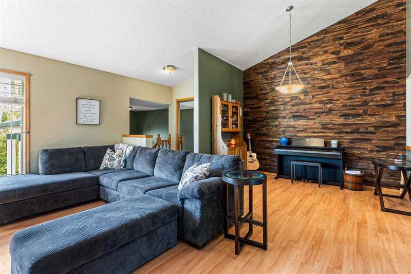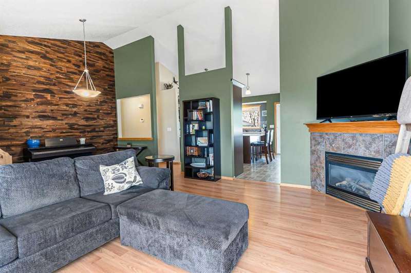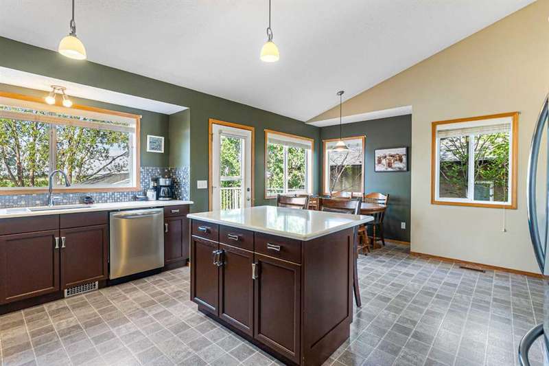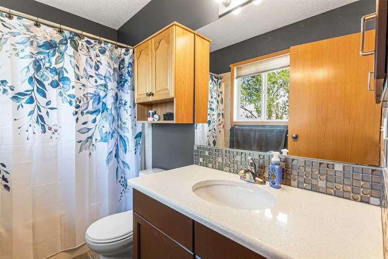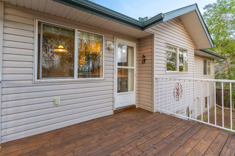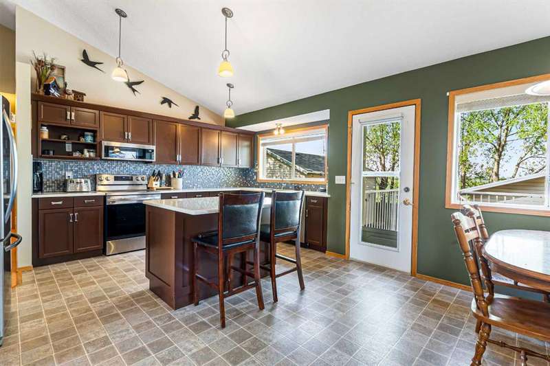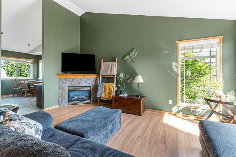 Enjoy Stunning Mountain Views and Quiet Living! If you’ve been dreaming of a peaceful home with no neighbors behind you—just an incredible mountain view—this fully developed property is the one for you! Step inside the bright, vaulted main level, featuring a spacious living and dining area with a cozy corner gas fireplace. The kitchen offers plenty of cupboard and counter space, a large island, and a sunny breakfast nook. The main floor includes two bedrooms, including the primary suite with a private 4-piece ensuite. A second bathroom currently houses the laundry, but it can easily be converted back to include a tub/shower combo if desired. Downstairs, the fully finished basement adds even more living space, including a large family room, two additional bedrooms, and a generous laundry area. Outside, enjoy the low-maintenance yard complete with some unexpected perks: a large workshop, a huge storage shed, and several peaceful spots to relax and soak in the quiet surroundings. Don’t miss this rare opportunity—homes with views like this at this price don’t come around often!