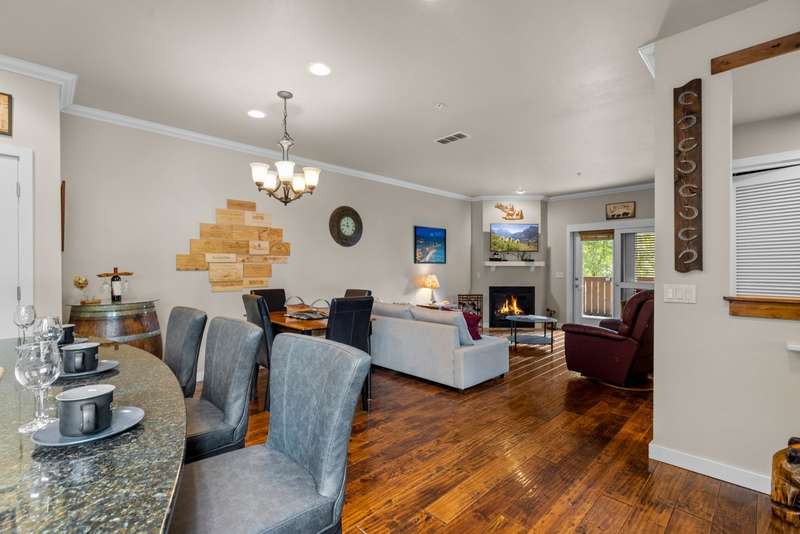 This stunning Monterra condo offers luxurious living with 2 bedrooms and 3 bathrooms in one of the largest units available in the development. Inside, you'll find a sophisticated design with a high-end finish package. Enjoy the elegance of granite counters, detailed crown molding, and beautiful hardwood floors. Monterra is a premier planned community known for its exceptional amenities, including a fantastic Clubhouse area with an outdoor pool, hot tub, sauna, gym, entertaining space, a billiards room, theater and a meeting room. Located a short drive from downtown Whitefish, Glacier National Park, Whitefish Mountain Resort and Glacier International Airport.