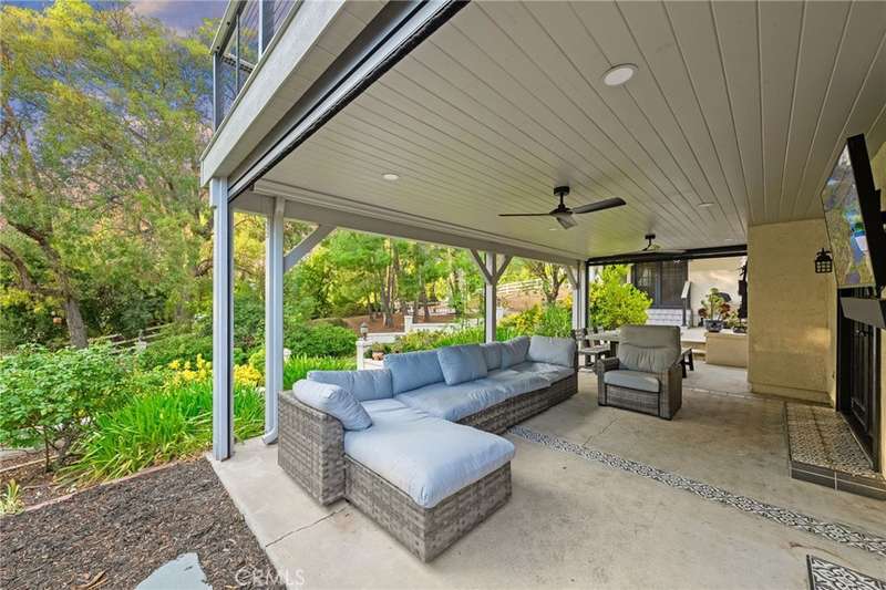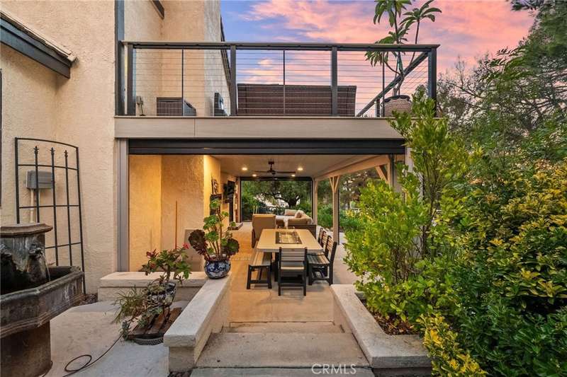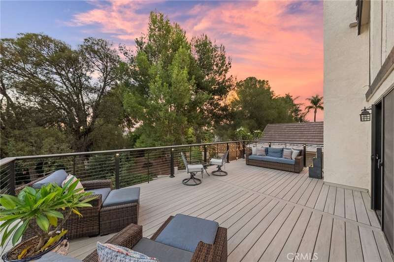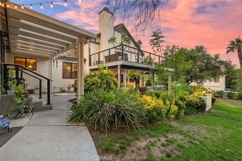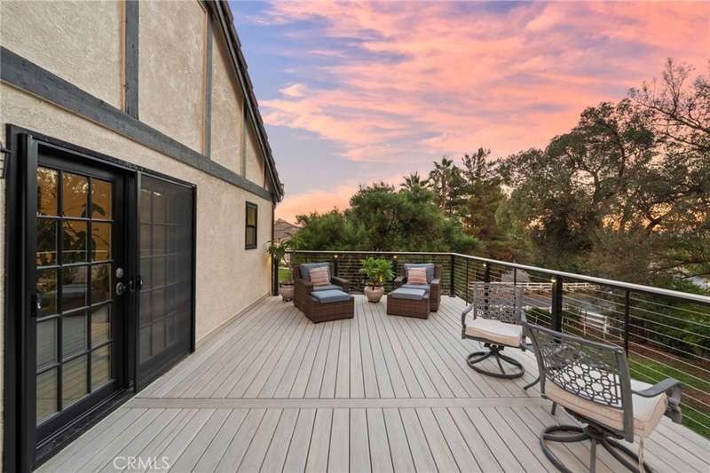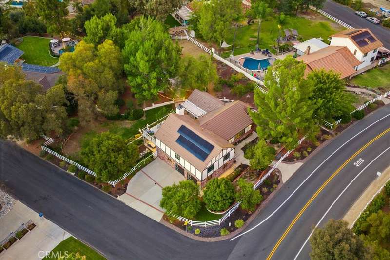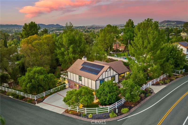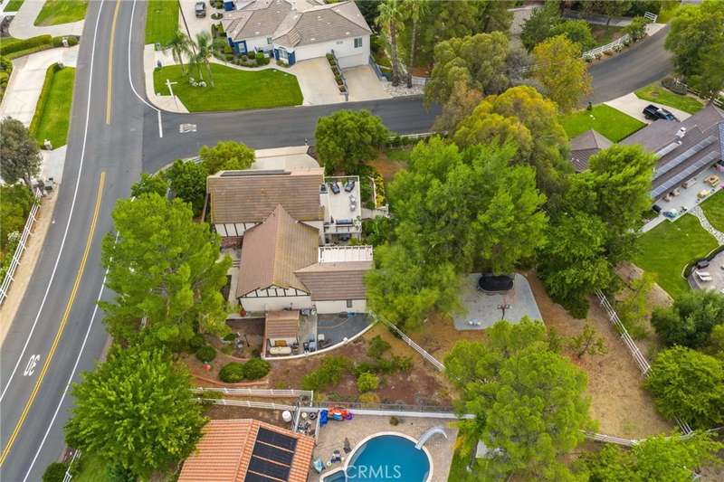Welcome to Meadowview, one of Temecula's most desirable neighborhoods! Ideally located in the heart of town--just minutes from top schools, the Promenade Mall, wineries, and restaurants--this home offers convenience while feeling like a world away. This beautifully updated home features 4 bedrooms, 3.5 baths, and 2,875 sq. ft. on a .53-acre usable corner lot. Upgrades include PAID solar, smart home features, a remodeled primary suite, a new upstairs HVAC system, and an incredible new outdoor living space. The upstairs waterproof deck--with sleek cable railing--expands your living area below, sitting above the covered patio equipped with fans, lights, an outdoor TV and soundbar and electric screens, making it perfect for year-round enjoyment. Inside, the gourmet kitchen opens to the living, dining, and family rooms and boasts a large granite island, abundant counter and cabinet space, pot filler, and stainless steel appliances including a 5-burner gas cooktop with hood, double ovens, microwave, dishwasher, and a new smart refrigerator. The large sunken family room is the heart of the home, complete with charming stone, wood burning fireplace and French doors that lead to the outdoor living area - perfect for relaxing or entertaining. Upstairs, the primary suite has been fully remodeled with a large tub, chandelier, separate shower and fitted walk-in closet. It is joined by two additional bedrooms, both with fitted closets and new glass doors. There is an additional full bath to complete the upstairs. Downstairs, a private bedroom suite with French doors to the backyard provides the perfect space for guests or multi-gen living. A convenient laundry room with an attached remodeled half bath and direct access to the backyard adds both function and flexibility. The expansive backyard offers endless potential--with room for a pool or ADU--and already includes a sport court for fun and recreation, plenty of mature trees which provide wonderful shade and gated access for RV parking potential. Meadowview residents enjoy resort-style amenities including pickleball and tennis courts, two pools, clubhouse, sport courts, and scenic trails. This is truly one of the best locations in Temecula!