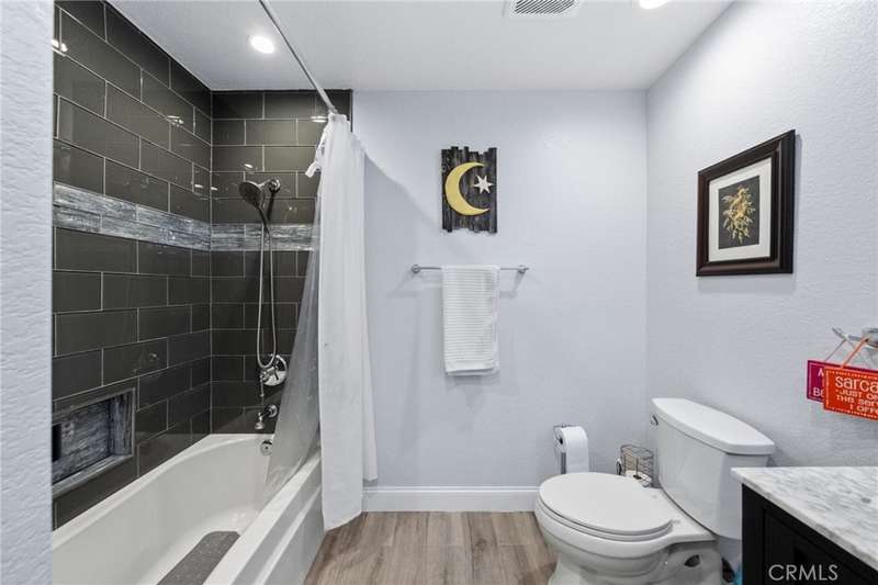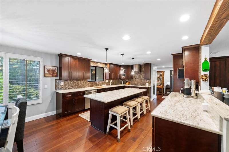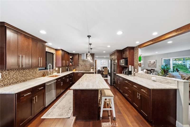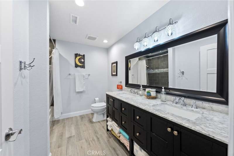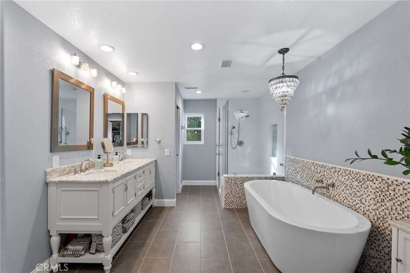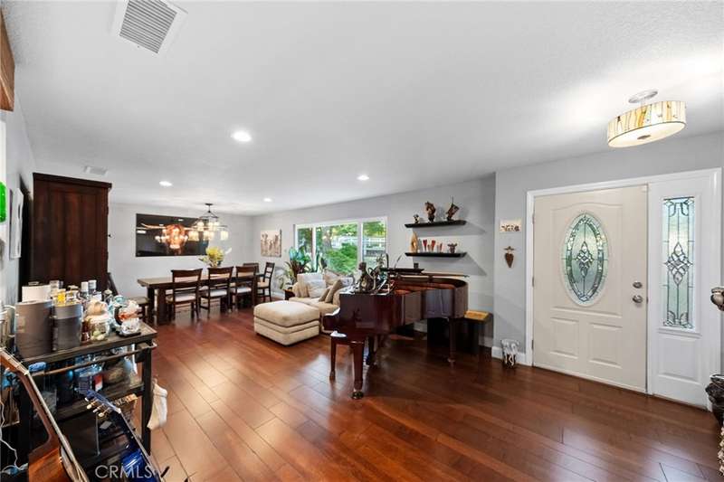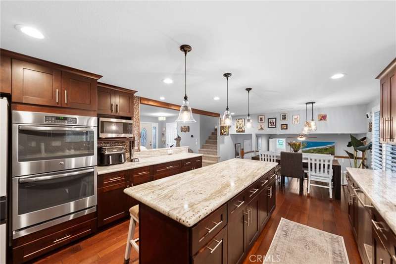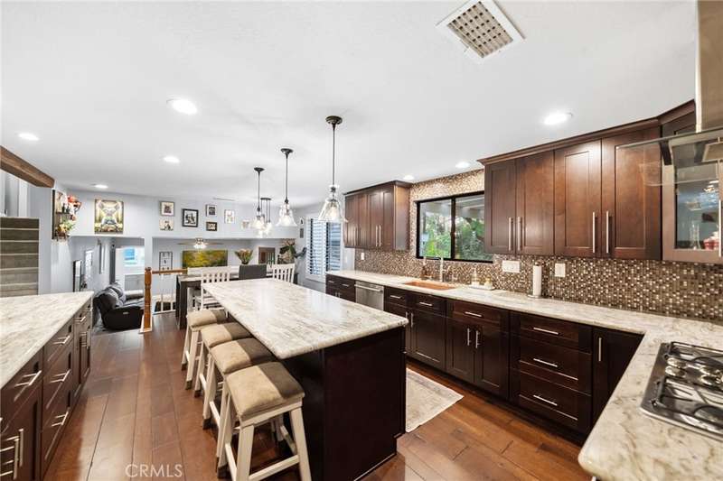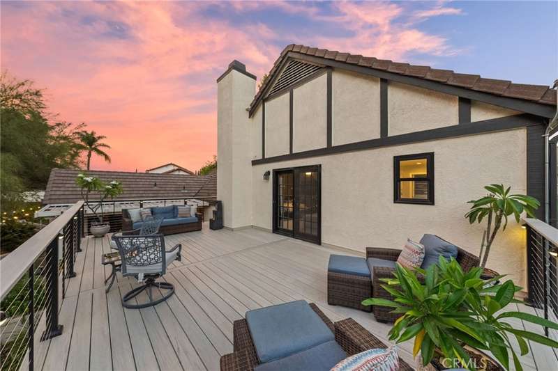 Welcome to Meadowview, one of Temecula's most desirable neighborhoods! Ideally located in the heart of town--just minutes from top schools, the Promenade Mall, wineries, and restaurants--this home offers convenience while feeling like a world away. This beautifully updated home features 4 bedrooms, 3.5 baths, and 2,875 sq. ft. on a .53-acre usable corner lot. Upgrades include PAID solar, smart home features, a remodeled primary suite, a new upstairs HVAC system, and an incredible new outdoor living space. The upstairs waterproof deck--with sleek cable railing--expands your living area below, sitting above the covered patio equipped with fans, lights, an outdoor TV and soundbar and electric screens, making it perfect for year-round enjoyment. Inside, the gourmet kitchen opens to the living, dining, and family rooms and boasts a large granite island, abundant counter and cabinet space, pot filler, and stainless steel appliances including a 5-burner gas cooktop with hood, double ovens, microwave, dishwasher, and a new smart refrigerator. The large sunken family room is the heart of the home, complete with charming stone, wood burning fireplace and French doors that lead to the outdoor living area - perfect for relaxing or entertaining. Upstairs, the primary suite has been fully remodeled with a large tub, chandelier, separate shower and fitted walk-in closet. It is joined by two additional bedrooms, both with fitted closets and new glass doors. There is an additional full bath to complete the upstairs. Downstairs, a private bedroom suite with French doors to the backyard provides the perfect space for guests or multi-gen living. A convenient laundry room with an attached remodeled half bath and direct access to the backyard adds both function and flexibility. The expansive backyard offers endless potential--with room for a pool or ADU--and already includes a sport court for fun and recreation, plenty of mature trees which provide wonderful shade and gated access for RV parking potential. Meadowview residents enjoy resort-style amenities including pickleball and tennis courts, two pools, clubhouse, sport courts, and scenic trails. This is truly one of the best locations in Temecula!