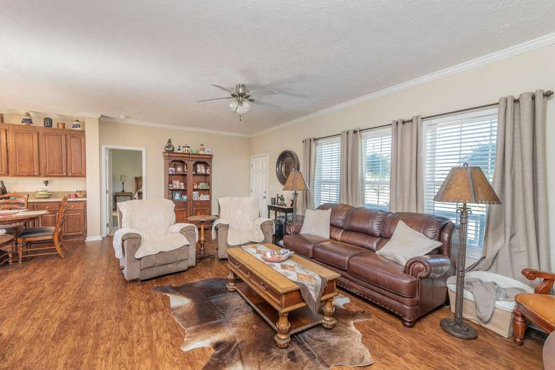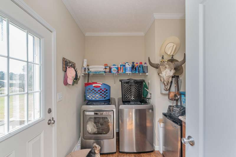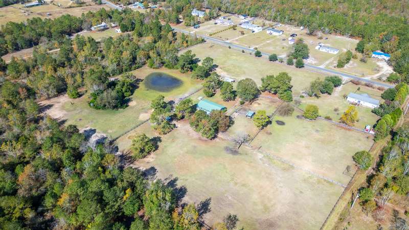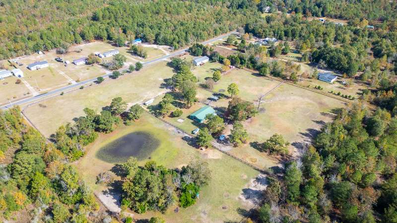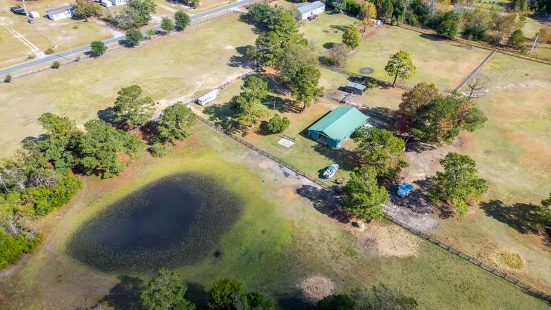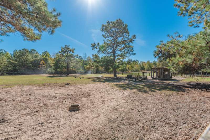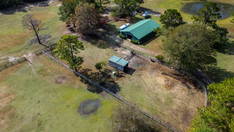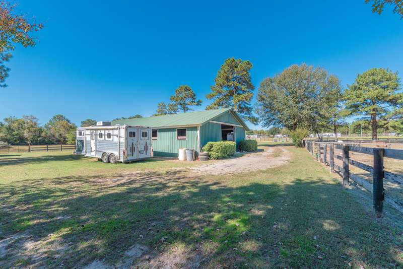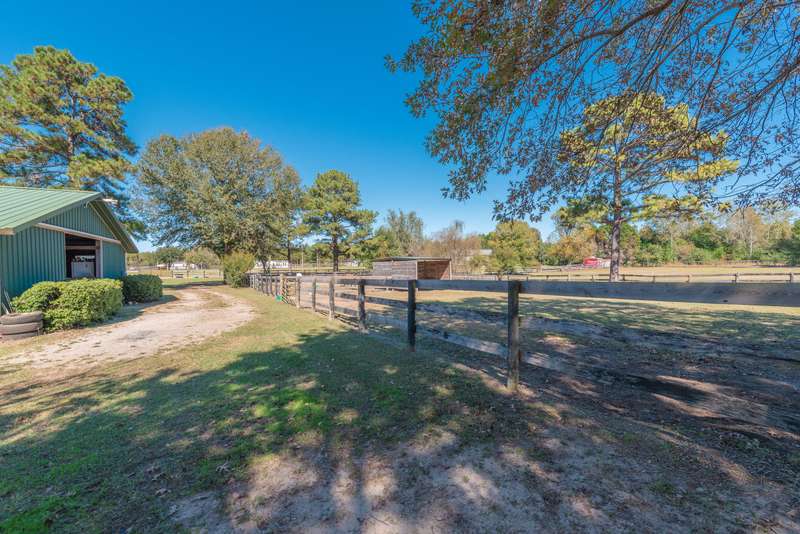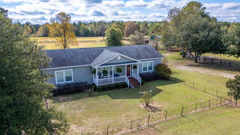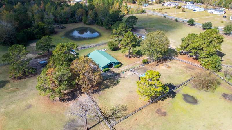 Discover peaceful country living at Windsong Farm, a beautiful 10.33-acre property featuring an artesian well so you'll never have to worry about a pump or water source! This exceptional acreage is all cleared pasture, showcasing 12-stall barn, Wash Rack, Hot Walker, three-board fencing, with non climb wire and large pastures along with two rear turnout paddocks for easy rotation. Ideal for horses or livestock, the setup is ready for your farm dreams. The welcoming three-bedroom, two-bath home offers an open floor plan with a split-bedroom design for added privacy. Enjoy LVP flooring throughout the living areas, a spacious great room, and a dining area perfect for gatherings. Nine Foot Ceilings. The kitchen shines with stainless steel appliances, a center island, and extra cabinet space for storage and functionality. Adding to its charm, this property also features a Carolina Bay, providing a scenic and serene natural backdrop. Whether you're seeking a working farm, equestrian retreat, or peaceful country escape, Windsong Farms offers it all.