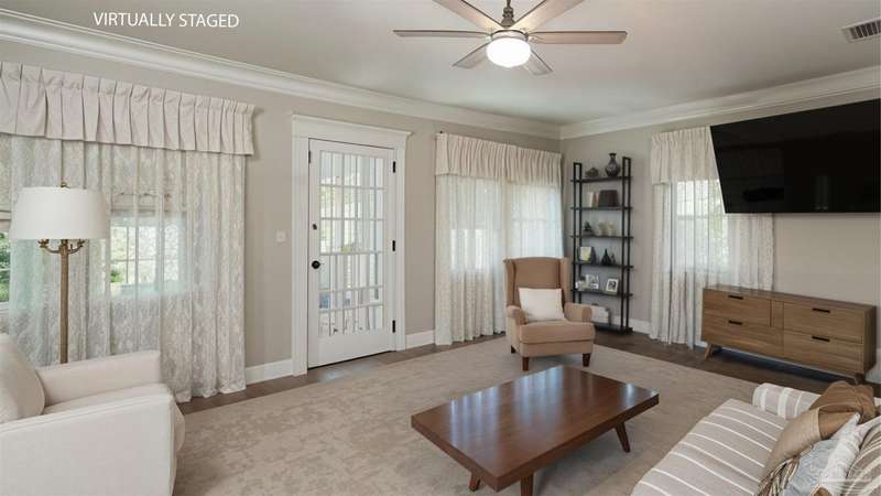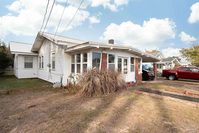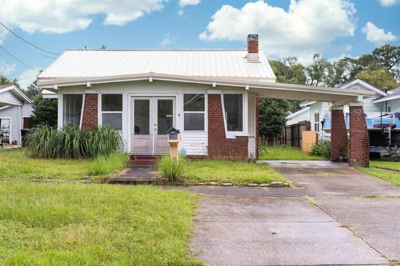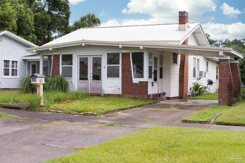 Located in the heart of East Hill! Located just 4 blocks away from Bayview Park in Pensacola, this craftsman cottage boasts 2 spacious bedrooms and 2 full baths. In the front of the home you will find a covered carport with additional parking for guests. The front enclosed porch serves as your entrance to the main door of the home. Upon entering the formal living room you will find a gas fireplace. The formal dining room has a built-in glass hutch. The galley kitchen has an additional breakfast nook. The kitchen appliances include a gas stove / cooktop with built-in microwave and a stainless refrigerator. The master bedroom has a spacious walk-in closet and convenient to the laundry area. In the back of the home you will find a large barn storage building with power. The steel roof was installed in 2020 and the new AC/Heat Pump was installed in 2023. This home is convenient to local shopping, downtown Pensacola and just a short 15 minute drive to Pensacola Beach.