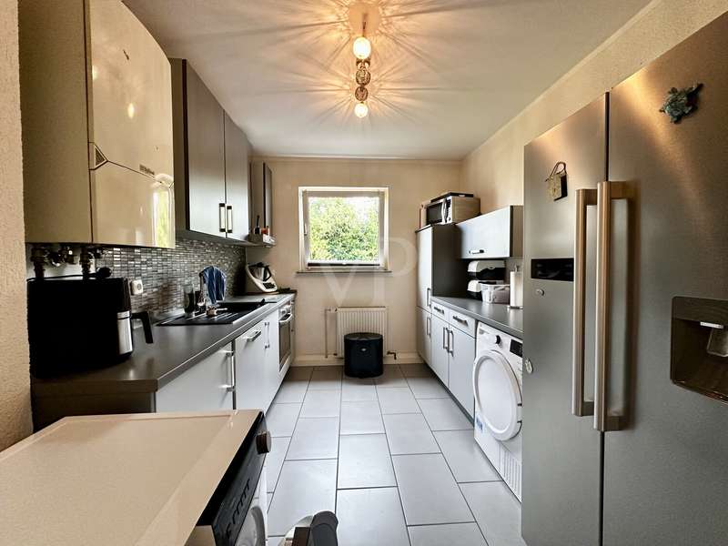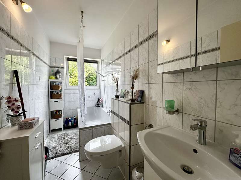 This light-flooded 2-room apartment is located on the first floor of a well-kept apartment building with 11 parties built in 1962 and, with around 57 m² of living space, offers an ideal home for singles or couples who appreciate comfortable, ground-floor living. The room layout is well thought-out and conveys an open, friendly feeling of living. The hallway harmoniously connects the individual areas and leads to the timelessly designed bathroom and kitchen before opening into the spacious living area. From here you have direct access to the adjoining bedroom, which, with its quiet location at the back of the apartment, offers a retreat to relax and has enough space for a double bed and wardrobe furniture. Particularly noteworthy are the modernizations carried out in recent years: In 2014, both the radiators and the electrics in the apartment were replaced and the tiles were newly laid. In 2017, small modernizations were carried out in the bathroom and the living room and bedroom were fitted with new laminate flooring, giving the rooms a modern and cosy feel. The ancillary rooms are also impressive: there is a separate cellar compartment in the basement, while a communal laundry room and drying room make everyday life easier. The well-kept garden invites all residents to linger and socialize and adds a green oasis to the living space. The monthly housekeeping costs amount to 160 euros plus individual gas and electricity costs. The apartment is currently rented to a reliable tenant who pays a warm rent of around 595 euros. Come and see this charming first floor apartment with its bright atmosphere, quiet location and pleasant neighborhood for yourself and arrange a viewing to get to know your new home.