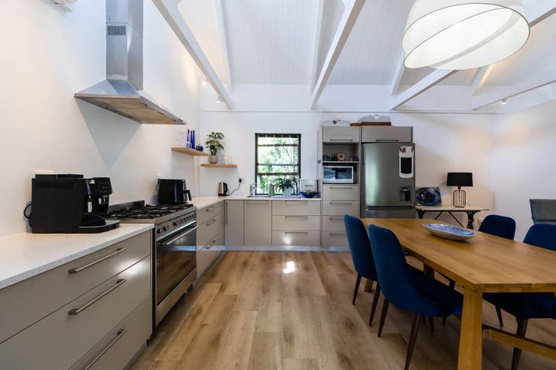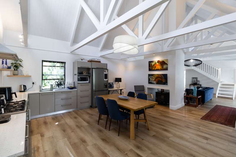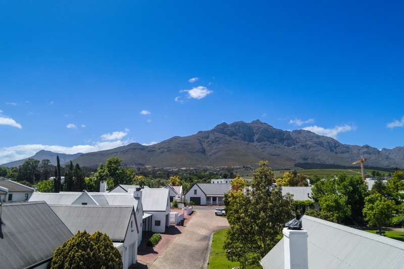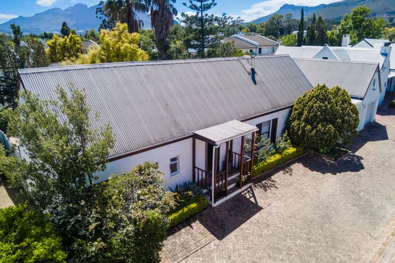 Dual Mandate. An opportunity to own a property like this one, is rare. The location is close to many top schools, hospitals and shopping centers. This home is newly renovated to the highest standards. It is light, bright and North facing. It is in a peaceful street with breathtaking views. Old World Stellenbosch charm, with the luxury of modern living. It has 3 bedrooms with en-suite bathrooms to all the bedrooms. Open plan living includes formal lounge and modern kitchen. A double sided fireplace between kitchen and lounge creates warmth in both areas. The TV lounge can be closed off with stylish french doors, if you wish to do so. TV lounge has a separate fireplace. Both lounges open up to under cover patio with built in braai. Kitchen has granite tops and modern finishes. Separate scullery and laundry room. This home has storage galore. All built-in cupboards are custom designed. Double garage with mezzanine for more storage. Garden is well designed with sparkling fenced pool. Safe and secure in a warm loving community. Do not miss out on this once in a lifetime opportunity.