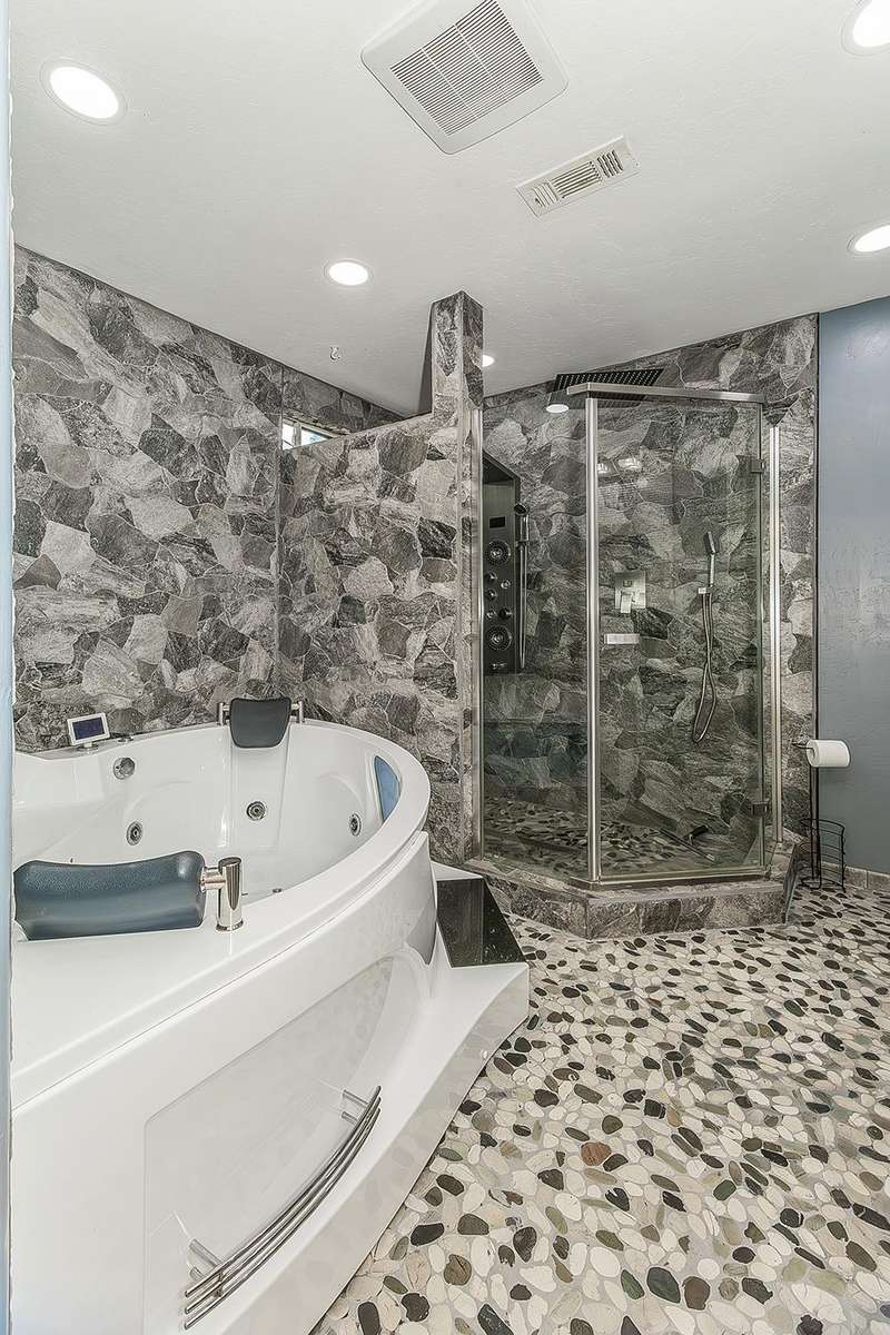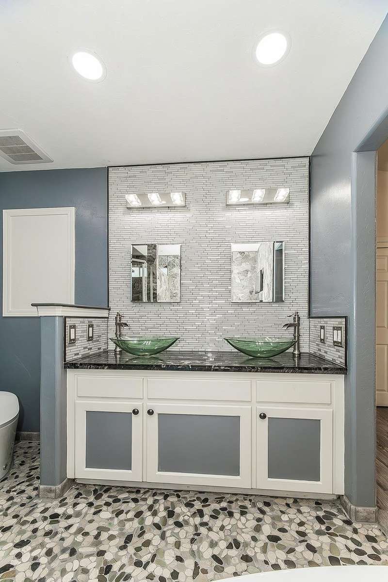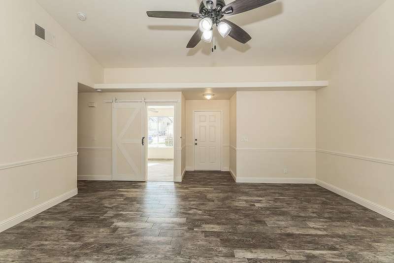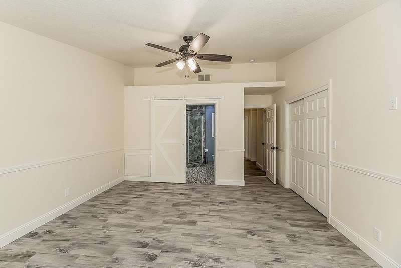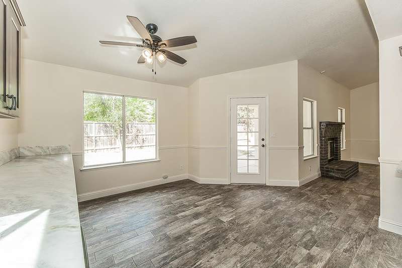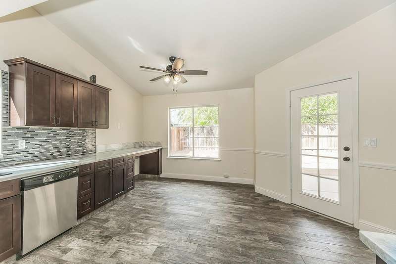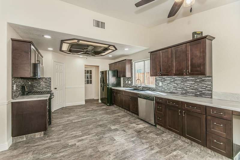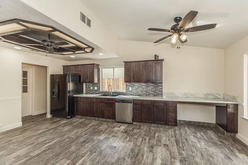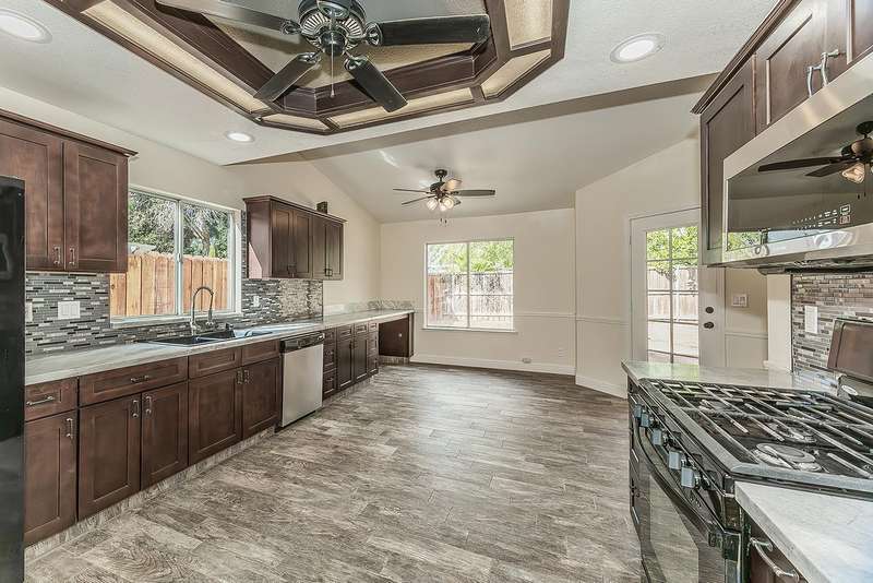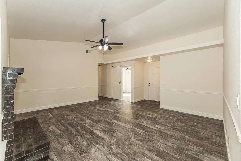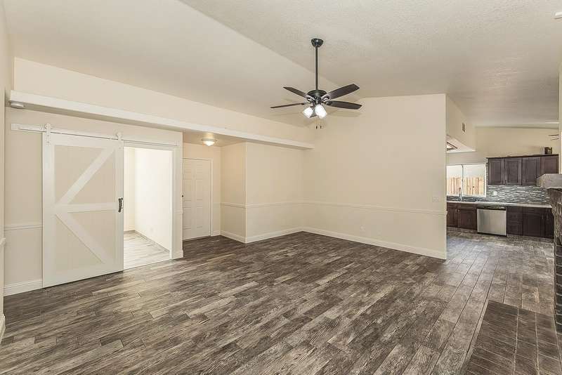 Completely renovated with high end luxury designer finishes! This phenomenal 3bedroom, 2 bath home is ready for new owner and it will not last long!! Impeccably remodeled kitchen and baths, wood like, tile flooring throughout, fresh paint inside and out; new baseboards throughout; barn doors in third bedroom and primary bathroom suite. Ceiling fans in every room, state of the art design and finishes in baths; canned lighting, beautiful brick wood burning fireplace in living room. All new kitchen cabinetry, extended buffet in dining area. Marble countertops in kitchen, gas stove, stacked glass tile backsplash in kitchen. Designer bath remodel in the primary suite complete with jetted tub. Large covered patio at back with extended concrete. Did I mention OWNED solar? The back yard is a clean slate, plenty of room for a pool or zen garden. So many improvements you really need to see this one for yourself! Schedule your showing today!