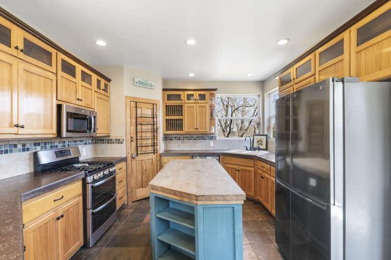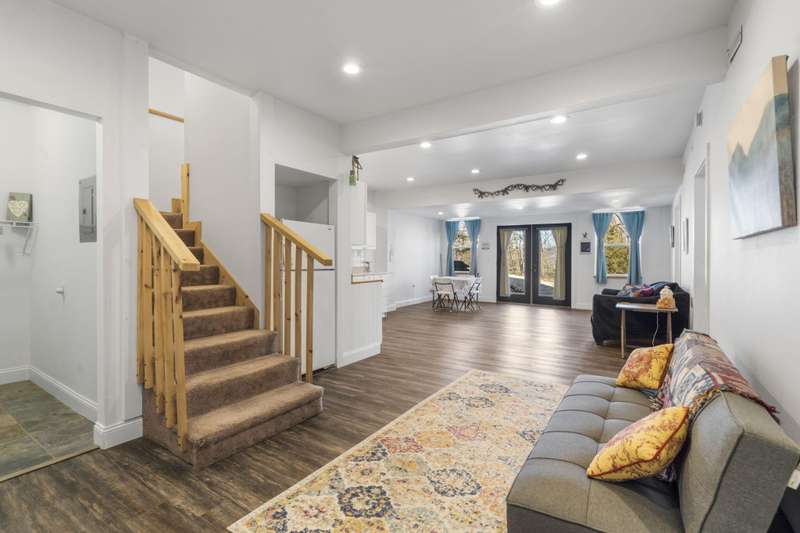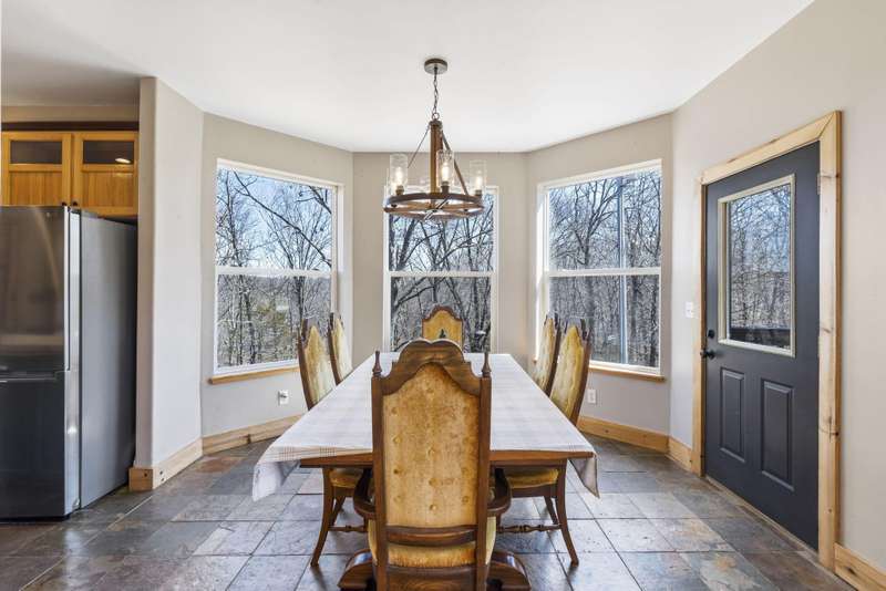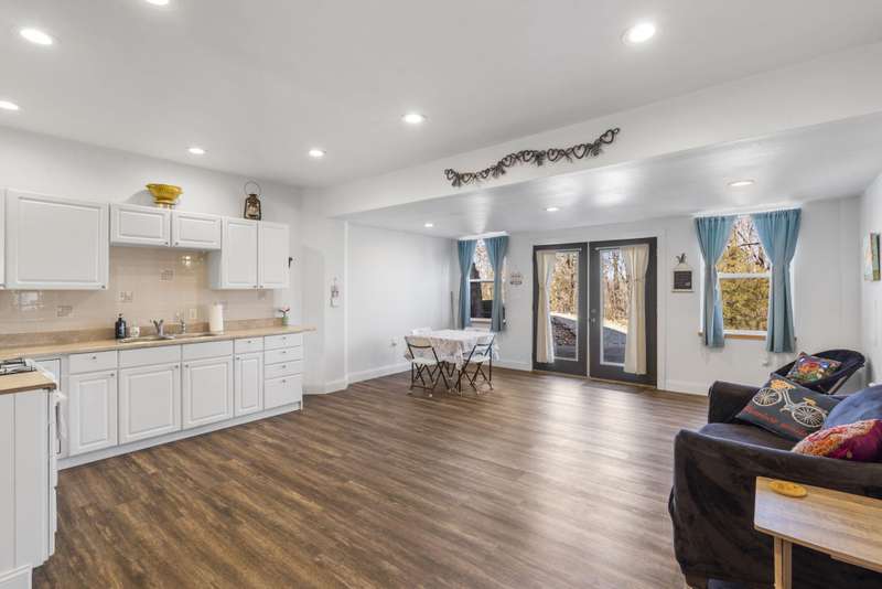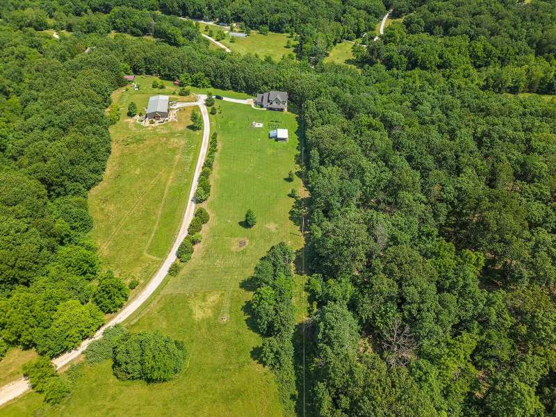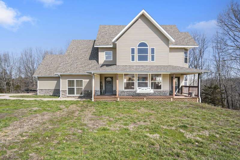 Welcome to this breathtaking countryside estate where space, opportunity, and rural charm collide. Nestled on a stunning 5.17-acre tract of functional land, this custom built home spans nearly 4,000 square feet that is bathed in natural light, where you are welcomed by soaring ceilings in the centralized open-concept living, dining, and kitchen areas. The kitchen features an abundance of custom cabinetry, sleek concrete countertops, and a gas range. The spacious main-level primary suite offers incredible views of the surrounding landscape and is complete with a well-appointed ensuite featuring a walk-in shower, jetted tub, and walk in closet. Convenience abounds with a dedicated home office, mudroom, laundry room, and guest bath all on the main floor. On the second level, two generously sized bedrooms and a full bath are complemented by an elegant balcony overlooking the great room, offering panoramic views of the property. The third-story bonus room and bath provide increased functionality--whether utilized as additional living quarters, a media room, game room, or home classroom. A fully equipped walk-out basement, currently operating as a successful Airbnb, adds incredible versatility. This space includes two bedrooms, a full bath, kitchen, and its own laundry--ideal for rental income, a guest suite, or multigenerational living. The acreage here makes this property a dream for hobby farmers and homesteaders alike. A spacious garden, chicken coop, and room for additional features in the outbuilding provide endless possibilities. The majority of the land is open and currently used for hay production--ideal for livestock--while the wooded areas provide stunning foliage and privacy. You'll also find an inviting outdoor fire pit area, a poured concrete back patio, a large front porch complete with a charming swing. Tucked away at the end of a private drive, this home offers the best of both worlds--peaceful seclusion yet just minutes from local amenities!