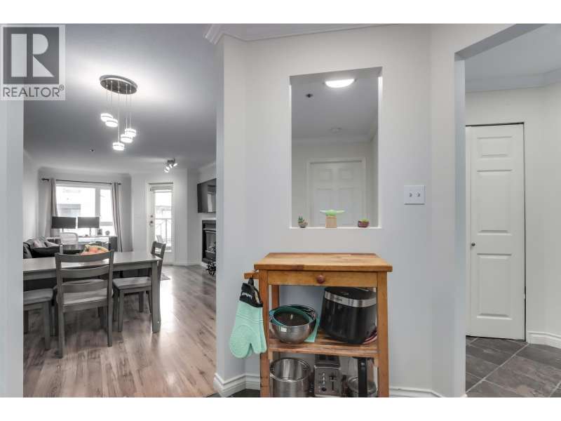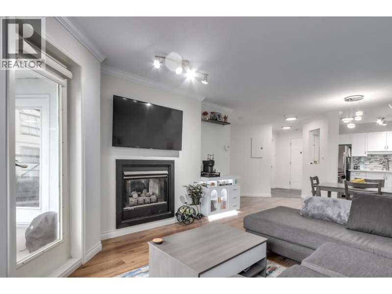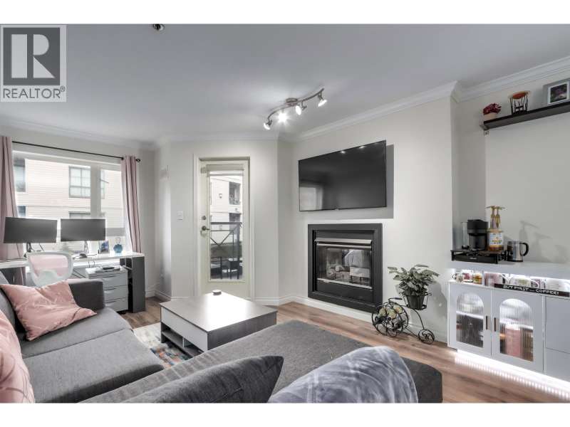 King size bed? No problem! This spacious, quiet & updated 1 bed, 1 bath condo conveniently located in the heart of downtown PoCo features an open layout with a unique double sided fireplace which can be enjoyed from both the living room and bedroom! Freshly painted, crown mouldings, laminate & slate tile floors, kitchen with s/s appliances & quartz countertops, large covered balcony which is accessible from the living room & bedroom. Huge walk-in closet & in-suite laundry. Fantastic location just steps to the Coquitlam River, walking & biking trails, parks, Rec. Centre, craft brewery, coffee shops, groceries, restaurants, transit and more! Additional parking stalls available for rent. Open House Sat. Oct. 25th from 2 - 3:30. (id:58403)