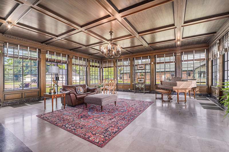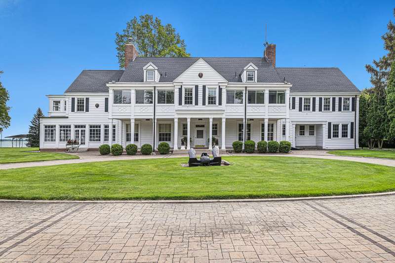 From the moment that you pass between the stone pillars of this landmark Grosse Ile property, you know that you have arrived somewhere special. The curved brick paver driveway leads you across the picturesque 3 acre lot to this majestic, historic home. This one of a kind home estate stands proud far from the road providing exceptional privacy and tranquility. Upon entering the nearly 10,000 square architectural gem, you are greeted with luxurious Italian marble flooring, breathtaking millwork, and a grand foyer beckoning you to the spectacular sun porch on the east side of the home for amazing views of the Detroit River, Canada, the Detroit City Skyline, and the Grosse Ile lighthouse. Originally designed and custom built for Charles Fisher of the Fisher Body Company of Detroit by the notable architecture firm Smith, Hinchman, and Grylls, you will appreciate the grandeur and fine architectural moments throughout this home. Soaring 12 foot ceilings feature various types of ornamentation including plaster medallions and astounding crown moulding. Meticulous design elements like cherubs, flora and fauna are coupled with robust materials providing a truly special living and entertaining experience. The large kitchen features a center island, wall oven, cooktop, a breakfast nook with built-ins, and full butler's pantry with a wet bar. Two formal powder rooms, a third half bathroom on the main floor is well suited for hosting guests. A paneled library with Jack and Jill entry offers privacy, storage with built-in bookcases, and functions well as an office. The formal dining room with a hand carved, wood fireplace is an expansive space with grand views of the Detroit River as you dine and entertain guests. The majestic formal living room also has views of the river, an exceptional carved carrara marble fireplace surround with egg and dart details and abundant room for furnishings and a Steinway baby grand piano. Moody paneled walls and coffered ceilings in the Florida room add warmth to the space surrounded by windows that flood the space with natural light. This room functions well as a family room with ample seating space, a fireplace, and a bronze chandelier that is simply a work of art. Journey upstairs to find 7 bedrooms, 6 full baths, and 3 additional half baths. Several bedrooms have their own, private, sunporch for enjoying the gorgeous natural scenery. The primary bedroom is massive with an adjoining dressing room, 2 separate full tiled bathrooms, and custom walk-in closets with beautiful built-in wardrobes. An enormous attic allows for plenty of storage space. The basement is equally impressive with terrazzo flooring, workshop space, a huge laundry room that doubles as a workout room, a full sized, walk-in vault that doubles as wine storage, and a Bilco door entry providing easy access for transporting large items. Outside, marvel at over 200 feet of river frontage for docking, enjoying water sports, fishing, and witnessing glorious sunrises, perfect for entertaining and hosting events. An illuminated brick paver path leads to a paver patio for outdoor enjoyment. A 6 car garage with carriage doors, attic for storage space, electric service, and a half bathroom round out this opulent property. This home is a time capsule of precision and craftsmanship that you must experience to appreciate. Don't miss out on the opportunity to make it yours. All of this and it is situated just over one mile to the toll bridge a half an hour to downtown Detroit. Agent is related to the seller. Pre-Approval required prior to showing.