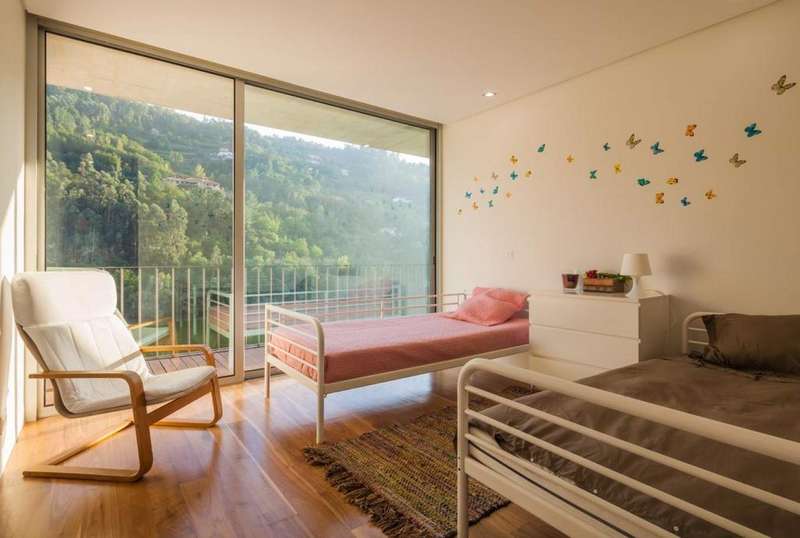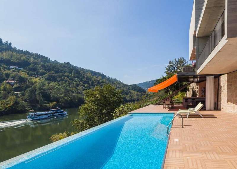 Magnificent property located in the heart of the Douro wine region with direct access to the Douro River, a World Heritage Site since 2001. The house consists of four en-suite bedrooms, a living room, a dining room and an outdoor area with a swimming pool and a dining area with a barbecue. All the rooms have wide views of the river. The large living room extends out onto a balcony overlooking the River Douro. In addition, the property offers a guest house with a living room and kitchen in opel space: this is a house of modern architecture, thought out in detail, from the views to the location and solar orientation, including the principles of Feng Shui. It has an infinity pool with stunning views of the river and a spa with jacuzzi, sauna and Turkish bath. With private access to the pier and parking inside the property. This property for sale benefits from excellent access, 1h15 from the city of Porto. CHARACTERISTICS: Plot Area: 15 452 m2 | 166 322 sq ft Deployment Area: 259 m2 | 2 786 sq ft Building Area: 355 m2 | 3 824 sq ft Bedrooms: 7 Bathrooms: 7 Energy efficiency: G FEATURES: Water holes; Private pier.