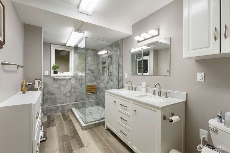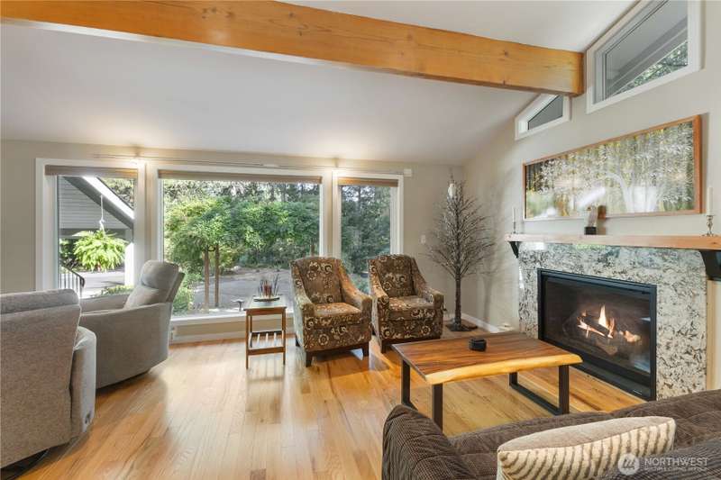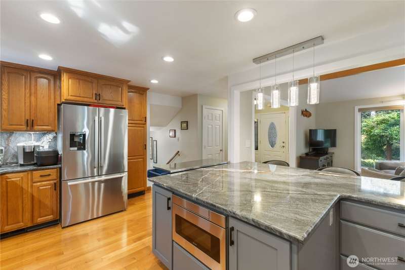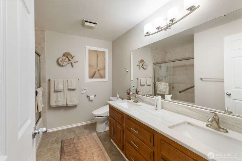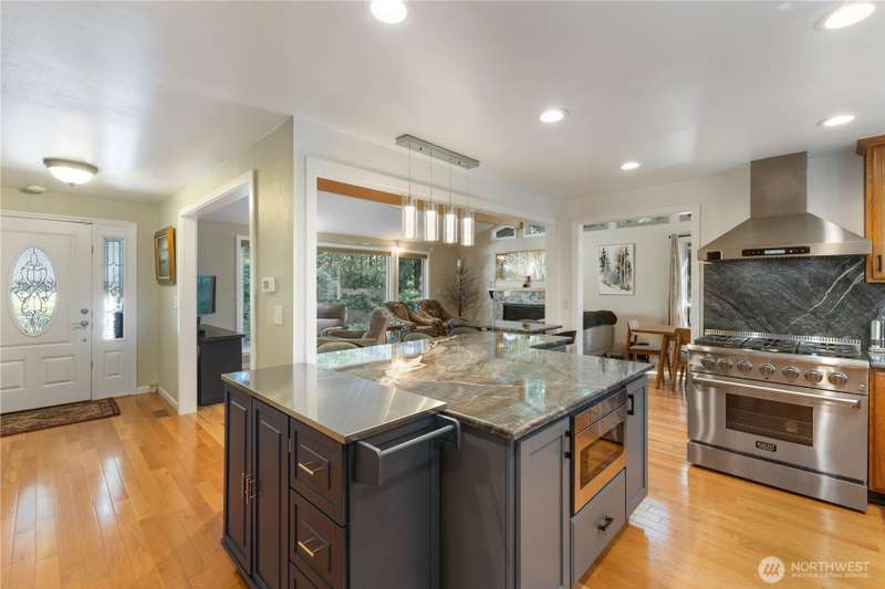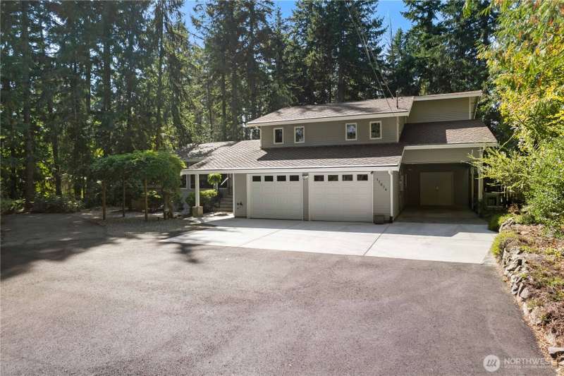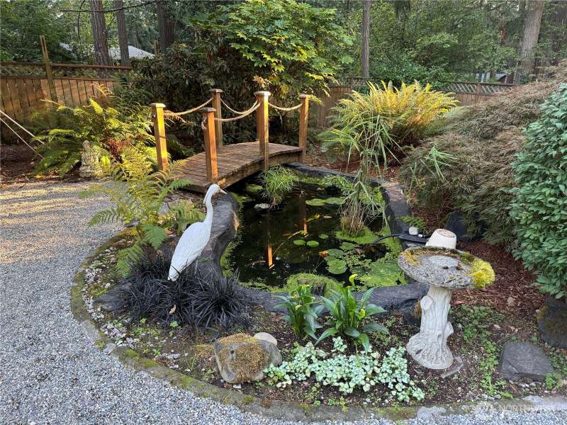 A peaceful 1.4-acre retreat awaits new owners at the end of a quiet cul-de-sac in the desirable Hidden View Community near Lake Tapps. This property offers privacy, security, and natural beauty. Surrounded by woods teeming with wildlife, this home features a spacious deck overlooking a koi pond, fruit trees, a garden, and a greenhouse. The main floor boasts natural red oak hardwood flooring and an open-concept kitchen, living, and dining area with abundant natural light. The chef’s kitchen includes quartzite countertops, tall quartzite backsplashes, high-end appliances, and custom cabinets. The primary bathroom creates a spa-like atmosphere with a long dual-sink vanity, a walk-in tiled shower, a private bidet water closet, and a jetted tub.