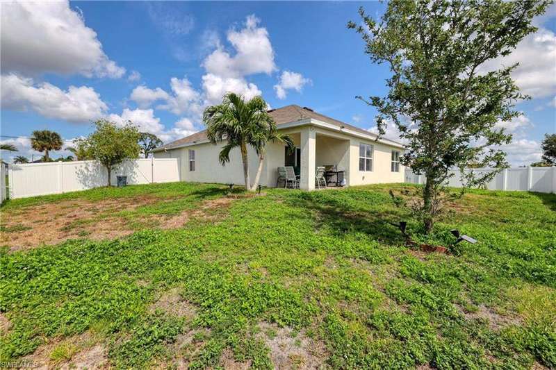 Welcome to 2505 NW 20th Pl, a well-cared-for 4-bedroom, 2-bathroom home offering 1,828 sq. ft. of living space and a total of 2,258 sq. ft. Nestled in a quiet, desirable neighborhood of Cape Coral, this one-owner home is move-in ready and filled with thoughtful upgrades. The heart of the home is a stylish kitchen with sleek quartz countertops, perfect for both everyday cooking and entertaining. An open floor plan connects the kitchen, dining, and living areas, creating a seamless flow for family life and gatherings. Step outside to your large backyard, enclosed by a new vinyl privacy fence with ample room for pets, play, or even a future pool. Unwind in the private hot tub, and enjoy year-round peace of mind with a home security system with cameras. A full irrigation system keeps the lawn lush and green. This home's location offers the best of Cape Coral living-just minutes from Coral Oaks Golf Course and Seahawk Park, home to a unique remote-control airplane field and runway. Lovingly maintained by its original owner, this home combines comfort, convenience, and charm-ready for you to move right in.