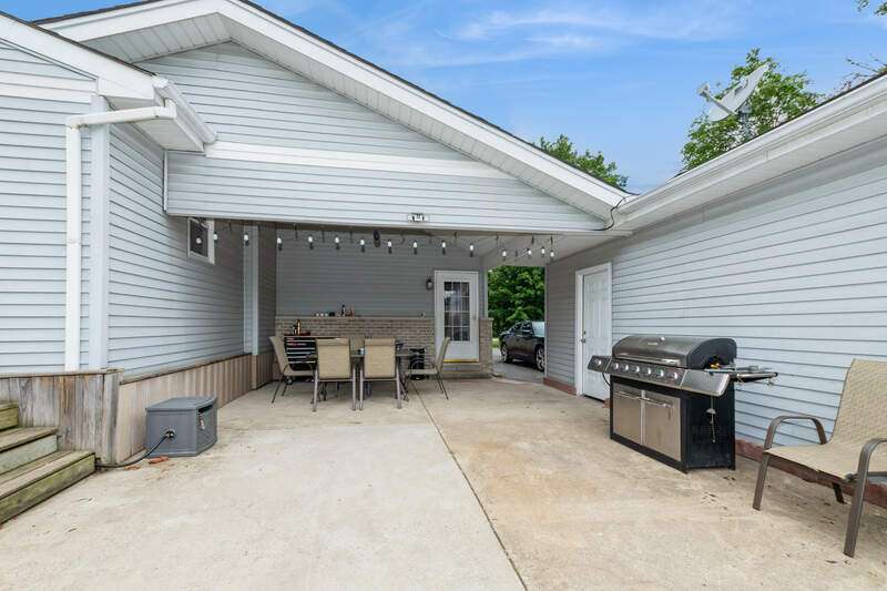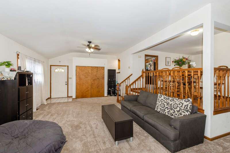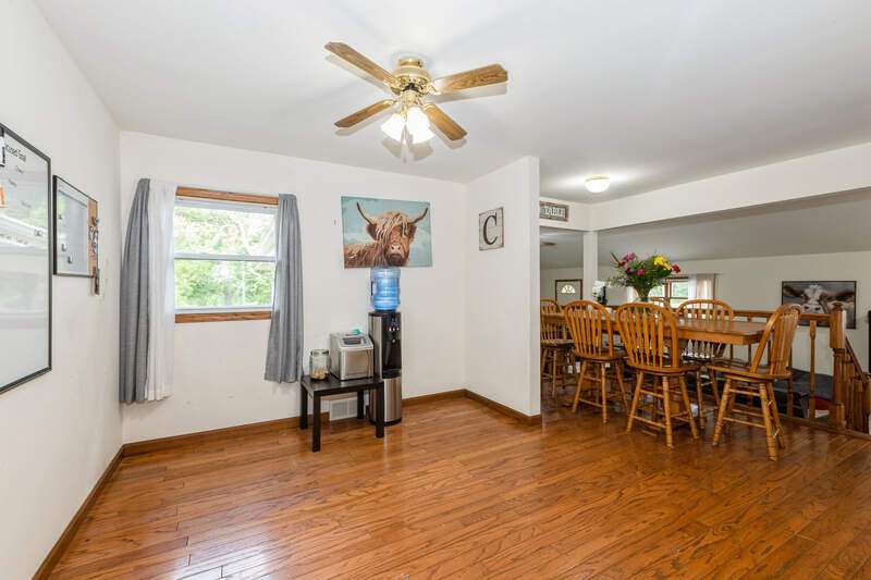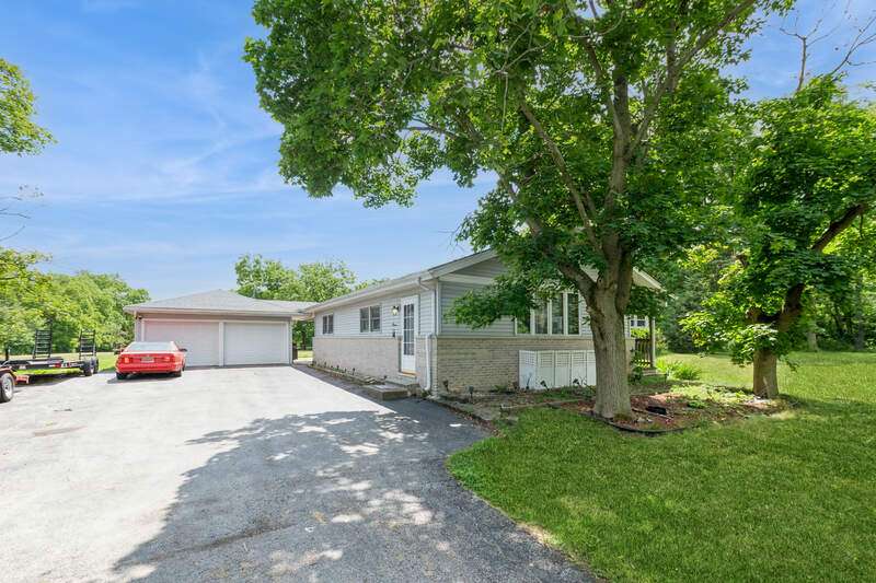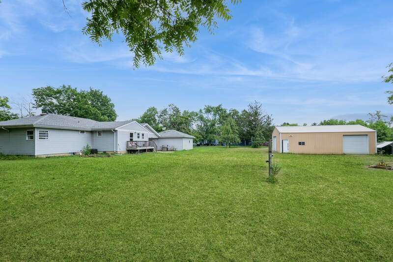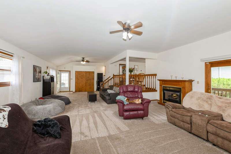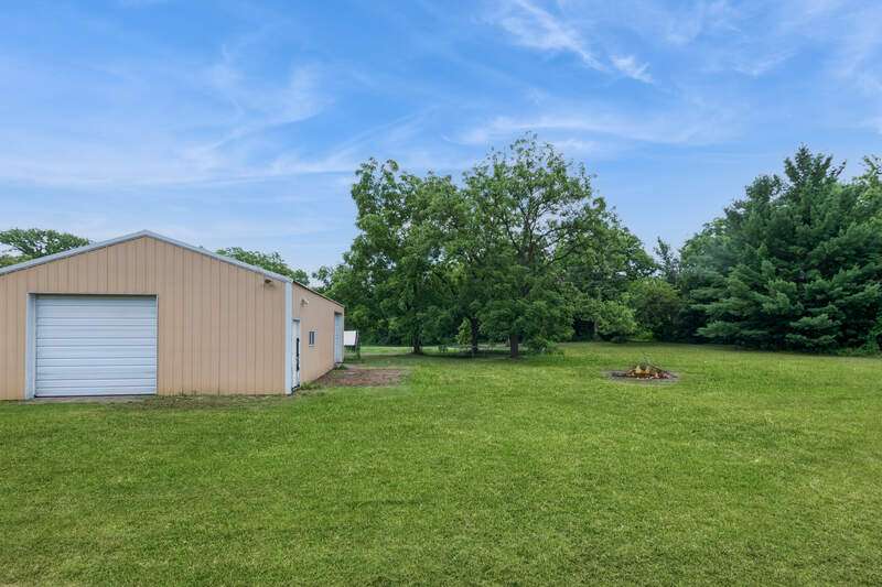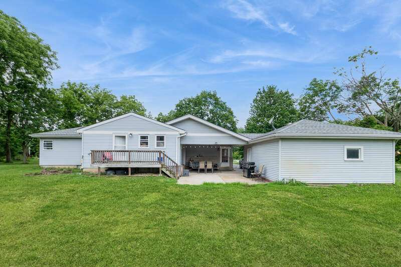 Welcome to this beautifully maintained step ranch home nestled on a sprawling 4.5-acre lot, offering privacy, open space, and incredible versatility. This property is ideal for those seeking room to grow, a place for hobbies or business, or simply peaceful country-style living with modern amenities. Step inside and be greeted by the expansive family room featuring soaring ceilings, an abundance of natural light, and direct access to the deck through a sliding glass door-perfect for relaxing. The open-concept kitchen offers stainless steel appliances, a pantry, and a generous eating area ideal for everyday meals or gatherings. The primary bedroom is a true retreat with a spacious walk-in closet and a private en-suite bath. Three additional nicely sized bedrooms provide ample space for family, guests, or home office needs, and are serviced by a full hall bathroom. The partially finished basement offers great potential for additional living space, a rec room, or extra storage. Outside, a long private driveway leads to a detached two-car garage. A covered patio provides a comfortable space to enjoy the outdoors year-round. The massive pole barn offers endless possibilities-perfect for storage, a workshop, or hobby use. With wide-open acreage, the property also provides plenty of room for outdoor recreation. Whether you're looking for land, space for your tools and toys, or a peaceful place to call home, this one checks all the boxes!