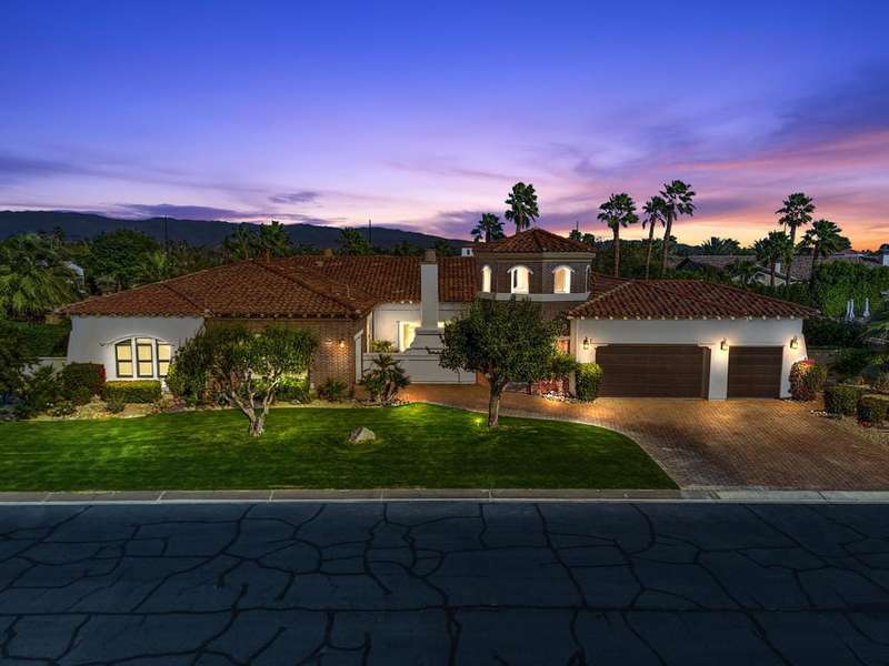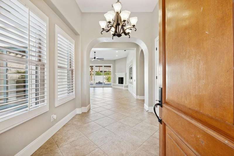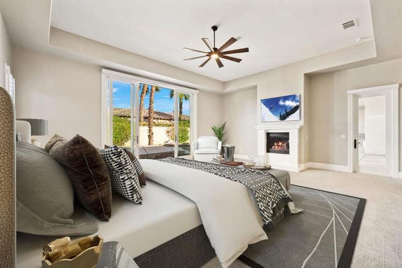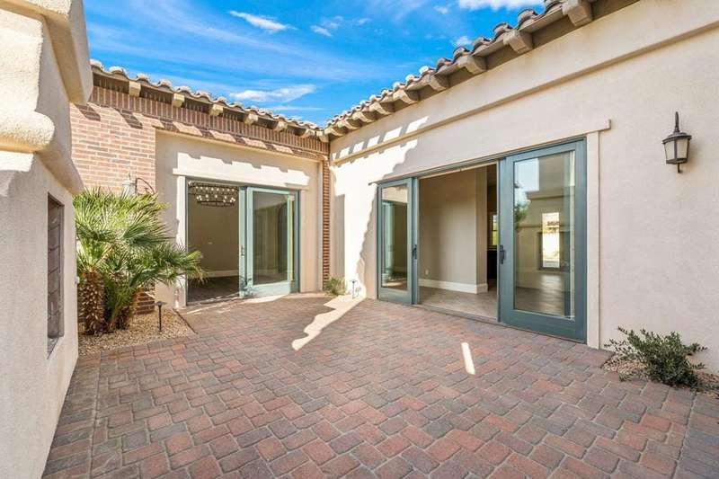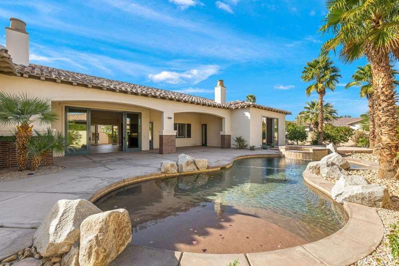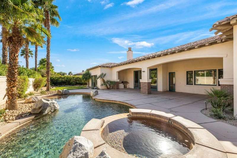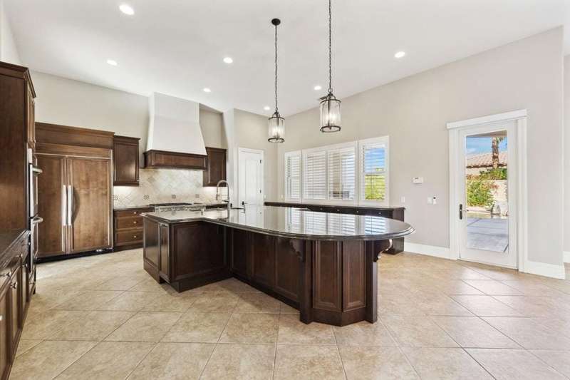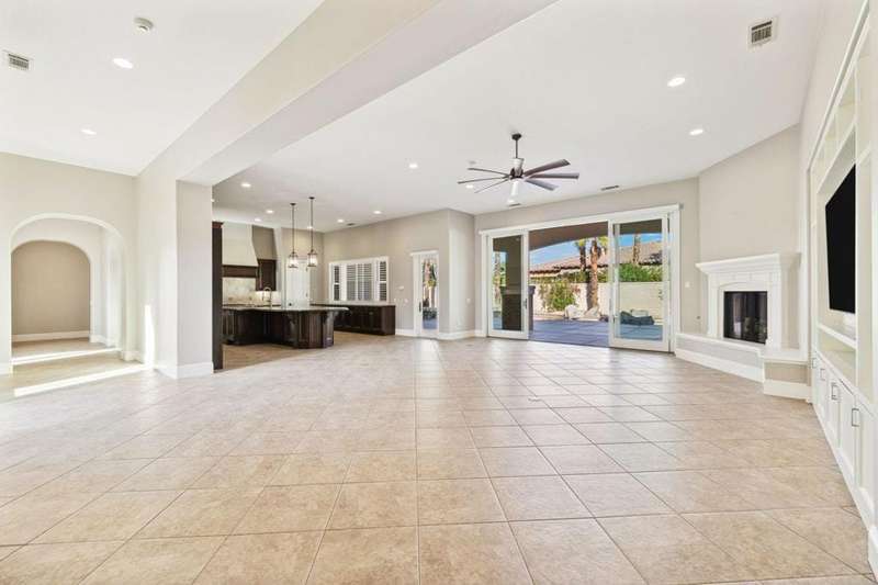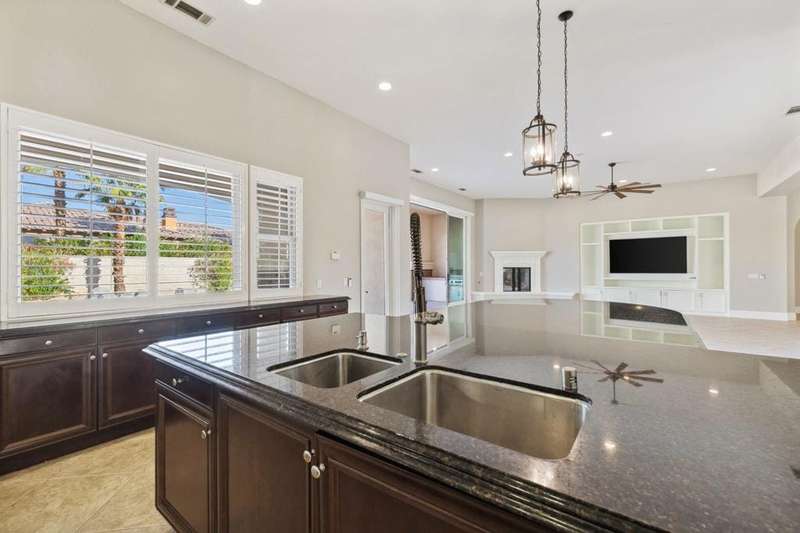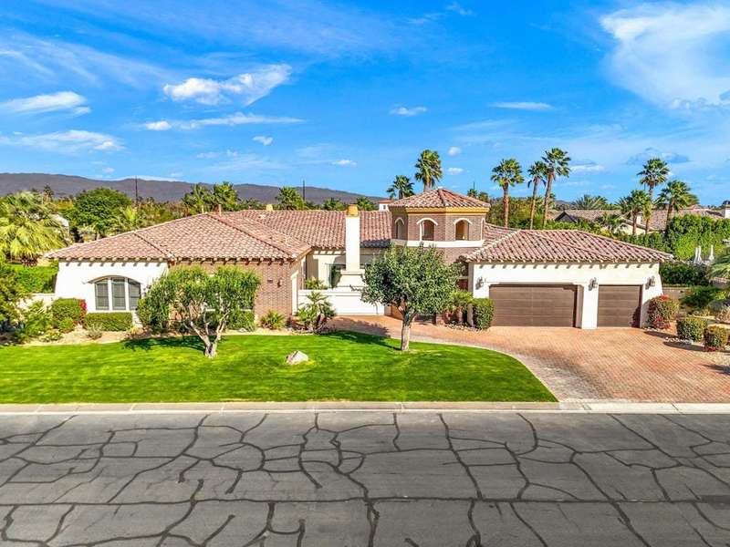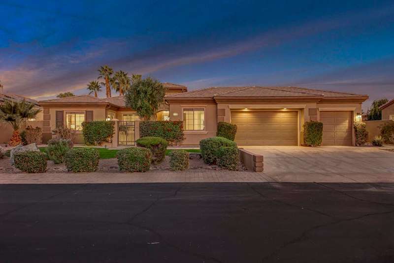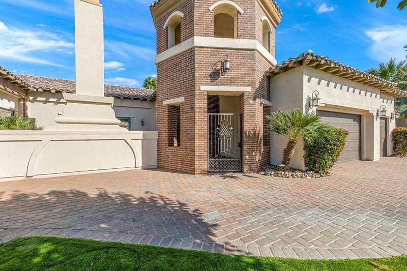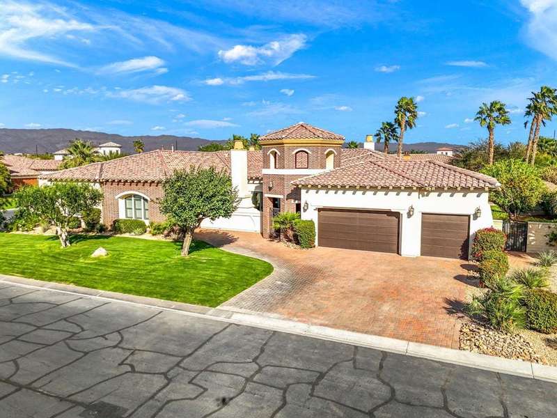 Experience the perfect blend of elegance and comfort in this stunning 4-bedroom, 5-bathroom estate behind the gates of Madison Estates in South Indio's sought-after Festival Corridor. Boasting nearly 5,000 square feet of sophisticated living space, this home is designed for those who appreciate quality craftsmanship, spacious interiors, and seamless indoor-outdoor living. The gourmet kitchen is a chef's dream, featuring a built-in double-door refrigerator, double ovens,7 burner Wolf range, granite countertops, a walk-in pantry, and an oversized kitchen island with dual sinks and seating for 6+--perfect for casual dining or entertaining. The home offers two master suites, each with stunning private en suites, while the primary suite showcases dual vanities, travertine countertops, a massive walk-in closet, and a cozy in-room fireplace for ultimate relaxation. At the heart of the home, the centrally located great room provides a seamless flow between the private front courtyard--complete with a custom entertainment center, freestanding fireplace--and the expansive rear yard, which features a large covered patio, pool, raised spa, built-in BBQ and mature landscaping. Each guest bedroom offers a private en suite, ensuring privacy and convenience for all. Additionally, a formal dining space opens to the courtyard, creating a picturesque setting for entertaining. Rounding out this incredible home is a spacious 4-car garage, providing ample storage for vehicles and recreational gear. Freshly painted interior. Ideally located on a spacious acre corner lot near world-class golf courses, shopping, dining, and festival venues, this home is a true desert retreat.