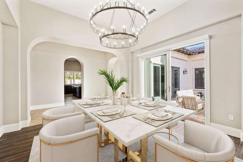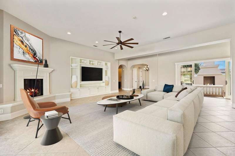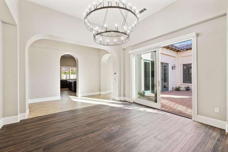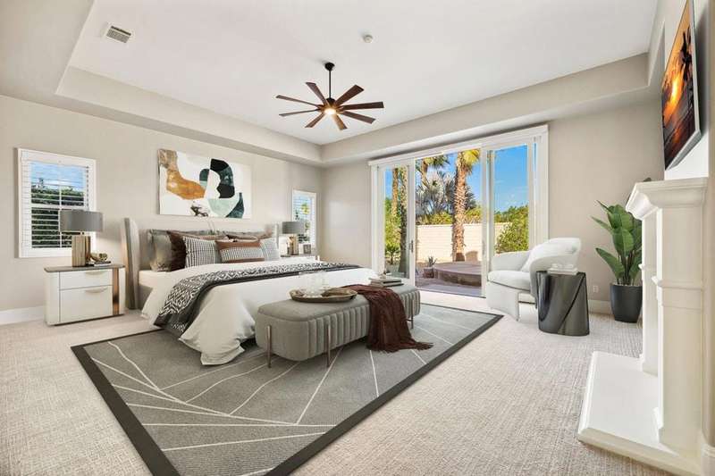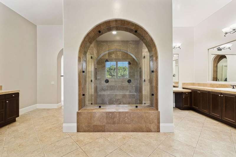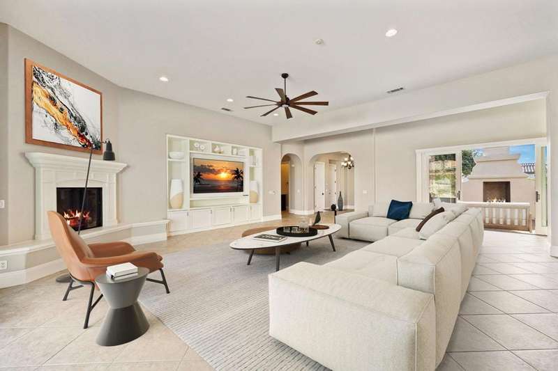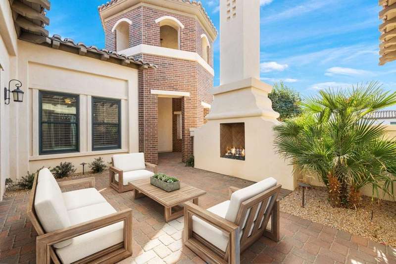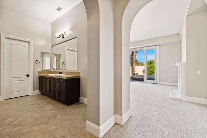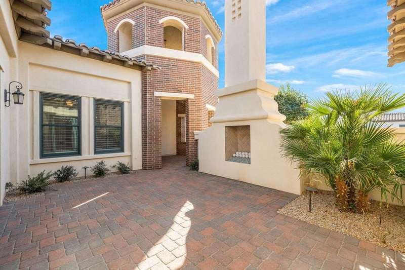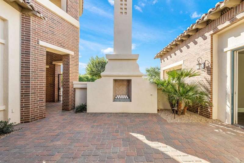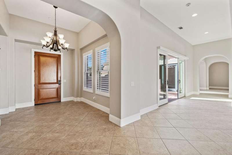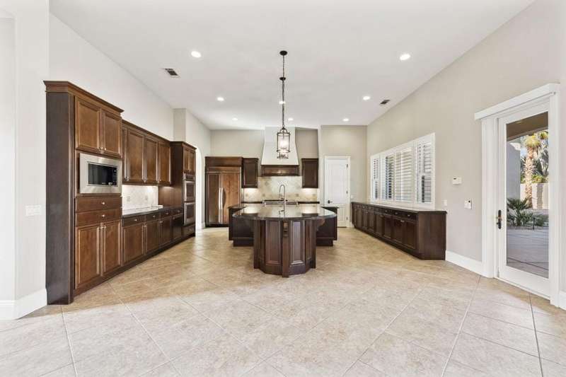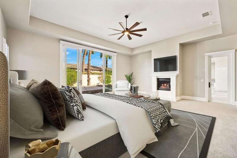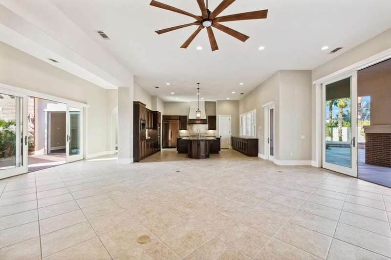 Experience the perfect blend of elegance and comfort in this stunning 4-bedroom, 5-bathroom estate behind the gates of Madison Estates in South Indio's sought-after Festival Corridor. Boasting nearly 5,000 square feet of sophisticated living space, this home is designed for those who appreciate quality craftsmanship, spacious interiors, and seamless indoor-outdoor living. The gourmet kitchen is a chef's dream, featuring a built-in double-door refrigerator, double ovens,7 burner Wolf range, granite countertops, a walk-in pantry, and an oversized kitchen island with dual sinks and seating for 6+--perfect for casual dining or entertaining. The home offers two master suites, each with stunning private en suites, while the primary suite showcases dual vanities, travertine countertops, a massive walk-in closet, and a cozy in-room fireplace for ultimate relaxation. At the heart of the home, the centrally located great room provides a seamless flow between the private front courtyard--complete with a custom entertainment center, freestanding fireplace--and the expansive rear yard, which features a large covered patio, pool, raised spa, built-in BBQ and mature landscaping. Each guest bedroom offers a private en suite, ensuring privacy and convenience for all. Additionally, a formal dining space opens to the courtyard, creating a picturesque setting for entertaining. Rounding out this incredible home is a spacious 4-car garage, providing ample storage for vehicles and recreational gear. Freshly painted interior. Ideally located on a spacious acre corner lot near world-class golf courses, shopping, dining, and festival venues, this home is a true desert retreat.