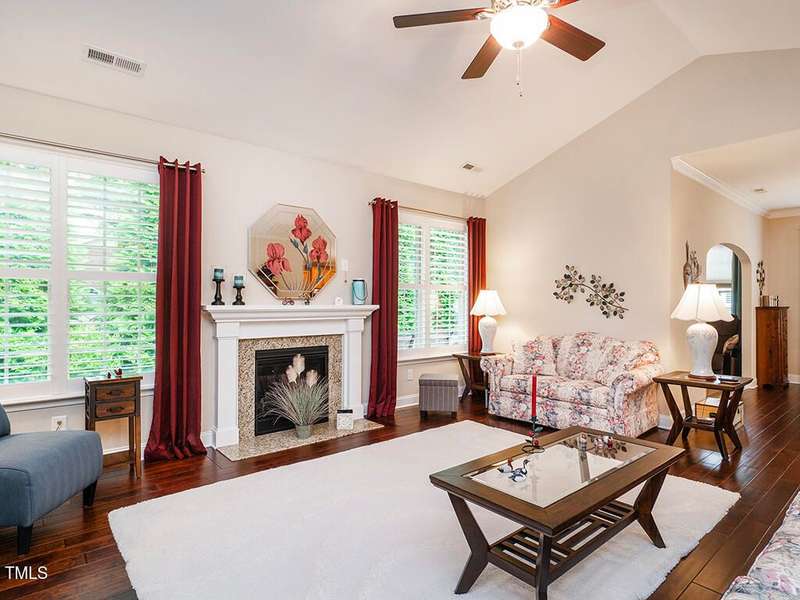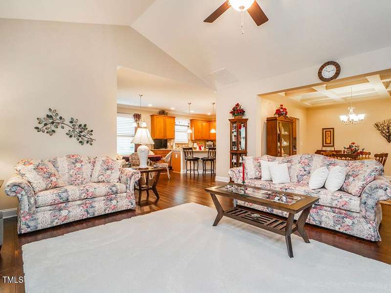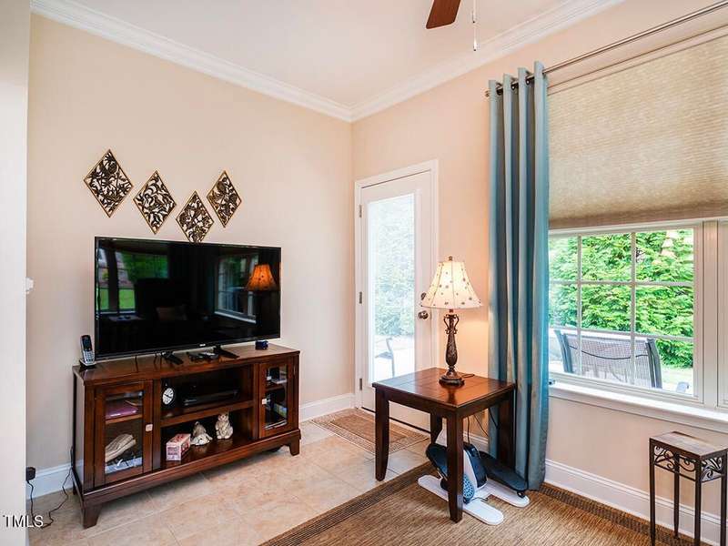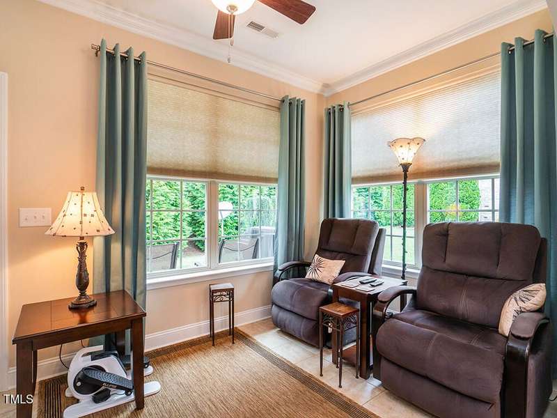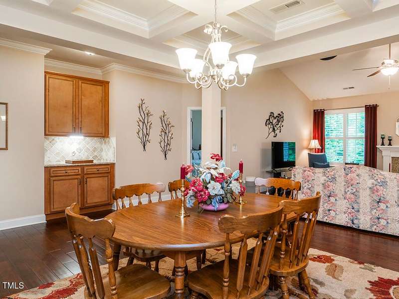 Located in the desirable Cable Square Subdivision, this 4-bedroom all brick patio home offers a perfect blend of elegance and low maintenance living. A charming rocking chair front porch welcomes you, and a cozy sunroom at the back of the home leads to a private patio?ideal for relaxing or entertaining. Inside, the open floor plan features a stunning coffered ceiling in the formal dining room and vaulted ceilings in the living room, centered around a warm gas log fireplace. The spacious kitchen is a standout, with a large island, granite countertops, tile backsplash, generous cabinet space, pantry, and all appliances conveying. A bright breakfast area and functional laundry room with granite counters and space for a freezer add to the home's convenience. The primary bedroom offers a tray ceiling, a large accessible closet, and a luxurious en-suite bath with a beautifully tiled shower, soaking tub, and double sinks. The fourth bedroom is located upstairs and, while it has a closet, it is currently used as an office / den. The garage has a spacious storage or work area. The HOA provides exterior maintenance, landscaping & water to inground sprinkler system, making this home a perfect blend of style, comfort, and ease.