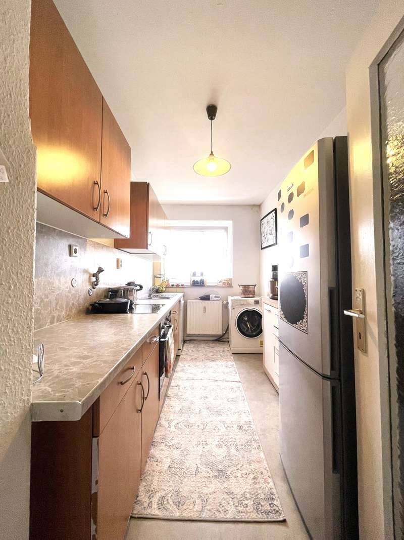A well-kept apartment from 1963, which was last modernized in 2017, is for sale. The apartment offers a living space of around 71.15 m², spread over three rooms. The room layout is well thought out: In addition to a spacious living room with balcony, there are two bedrooms, which can be used flexibly. Upon entering the apartment, you enter an inviting entrance area that offers enough space for a checkroom. From here, you can directly access the heart of the apartment - the bright living room. This spacious room offers a variety of design options and can be set up as both a cozy living area and a dining area. The adjoining kitchen is equipped with a functional fitted kitchen, which is already included in the purchase price. The kitchen is equipped with electrical appliances and offers plenty of storage space for your kitchen utensils. A window provides natural ventilation and a pleasant amount of light. The daylight bathroom is equipped with a bathtub, a WC and a wash hand basin and offers everything you need for your daily hygiene, but could do with renovation. The apartment is located in an area with a good infrastructure. Shopping facilities for daily needs, schools and public transport are available in the immediate vicinity and are easy to reach. The location offers good connections to the surrounding cities and is ideal for commuters. Overall, this apartment is an attractive option for couples or small families who value good connections and a functional room layout. The current house fees total 327 euros, of which 232 euros are apportionable. Arrange a viewing today and see for yourself the possibilities that this apartment offers. Inquiries can only be processed with a fully completed contact form (name, address, telephone number and e-mail). You will receive the floor plan with the exposé.