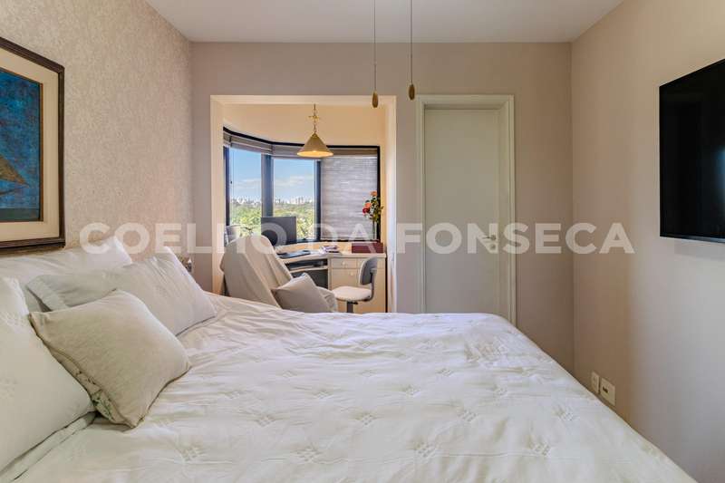 Apartamento com vista para Parque Ibirapuera, luz natural ótima, living ampliado com um dos dormitórios , atualmente com duas boas suites, cozinha ampla, área de serviço com boa ventilação e dependencia de funcionaria completa,