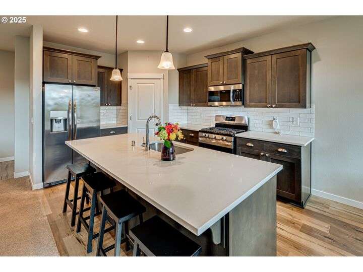 Amazing one level home with 3 car garage in desirable Greely Farms community! Situated on an oversized lot with pristine landscaping, this home is dialed in and ready for its next owners. Inside is home to an open floor plan, 3 bedrooms, primary suite has soaking tub, walk in shower and large walk in closet. Kitchen is well appointed with eat at island, dining area, pantry and lots of cabinet space! 3 car garage has 3rd extra deep bay with plenty of storage! Enjoy evenings on your back patio or stunning side patio with stamped concrete and plenty of room to make your own backyard oasis! Greely Farms is a beautiful community with walking trails, playgrounds in an amazing location!
