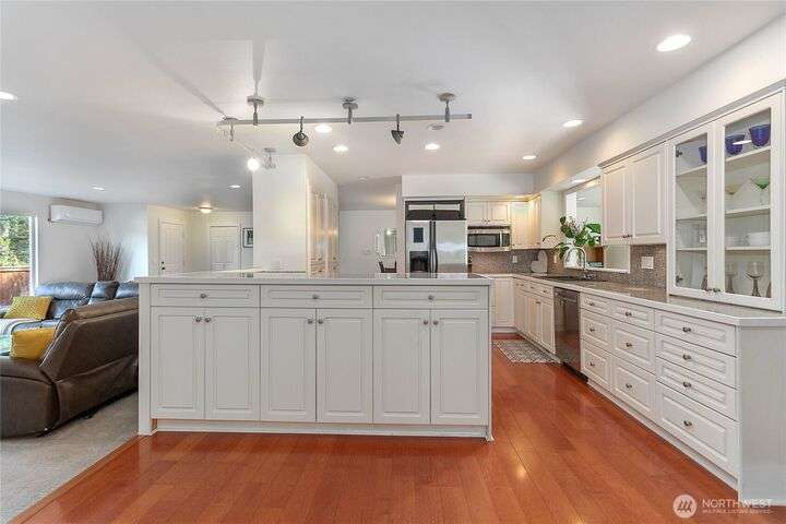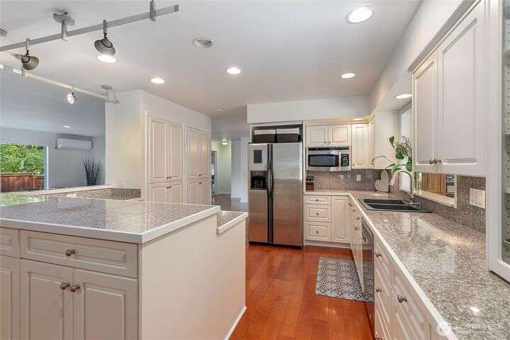 Charming single-level home on a flat lot just minutes to Lake Whatcom and Barkley Village. Tucked away on a quiet cul-de-sac, this residence offers 3 bedrooms plus an office, blending comfort and functionality. The spacious primary suite boasts a beautifully updated bathroom with heated flooring and a walk-in closet. An open-concept kitchen seamlessly flows into the family and dining area, making for effortless entertaining. Be impressed with the large pantry, mini-split air conditioning, bonus space, and an oversized 2-car garage. Freshly painted inside and out, this home features a welcoming front porch, a nice back deck, and a partially fenced yard with a dog run. This is the property that checks off all the boxes!