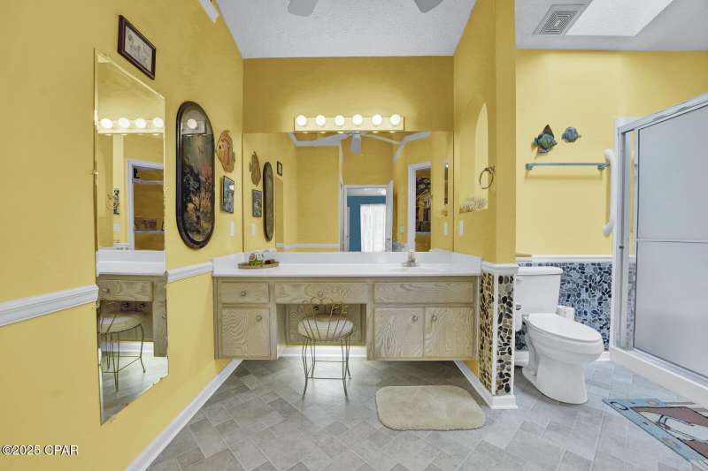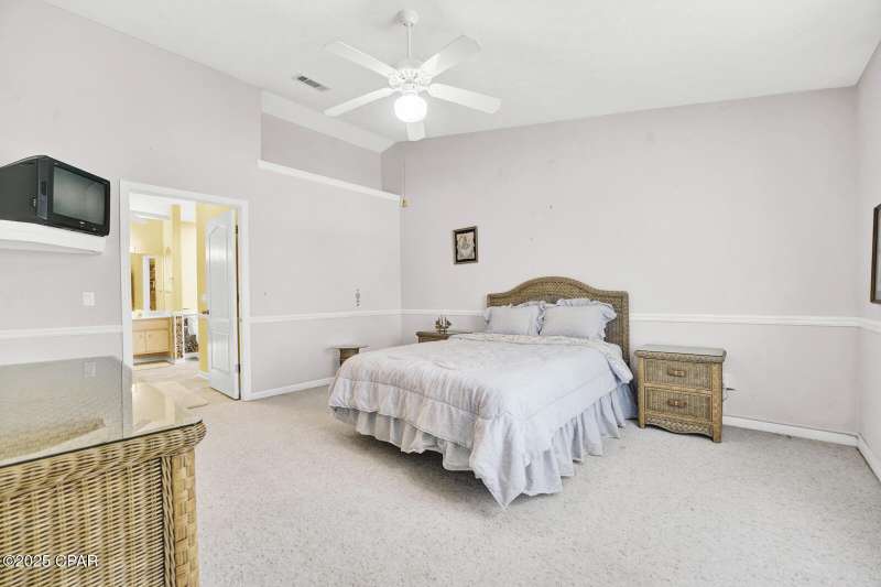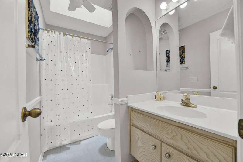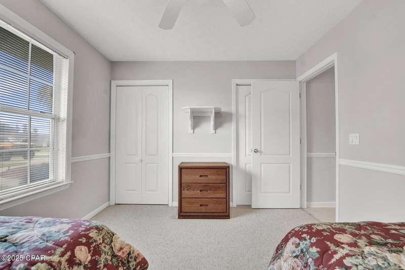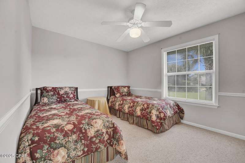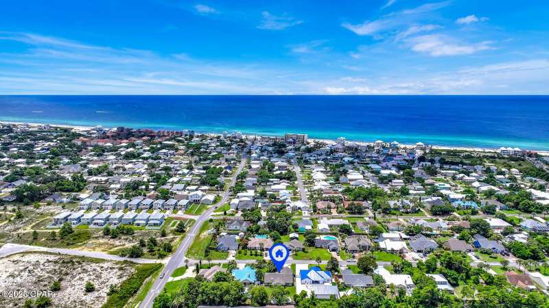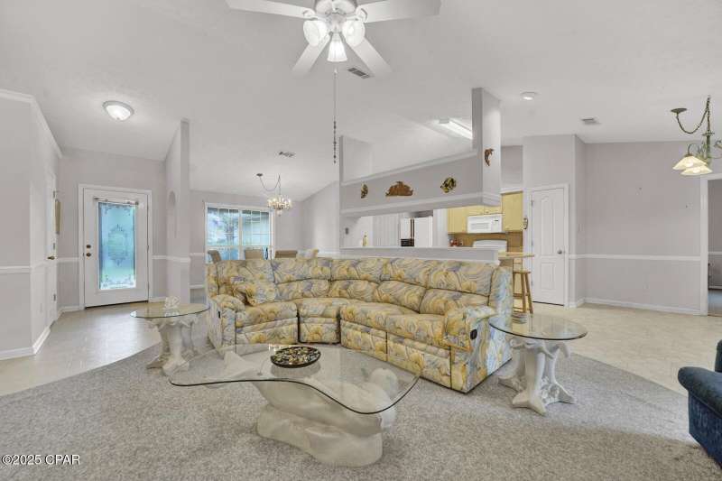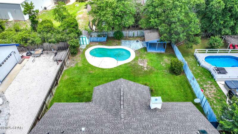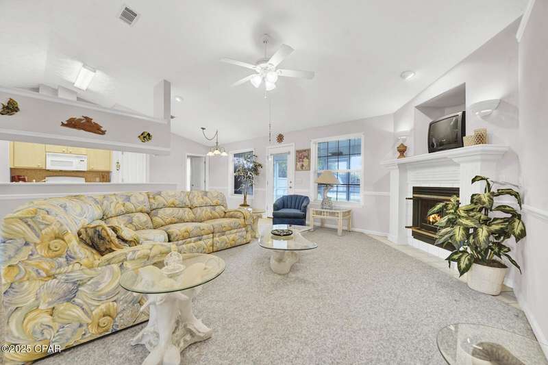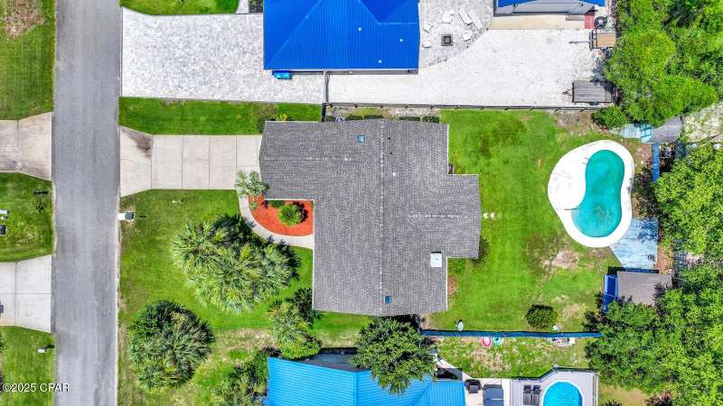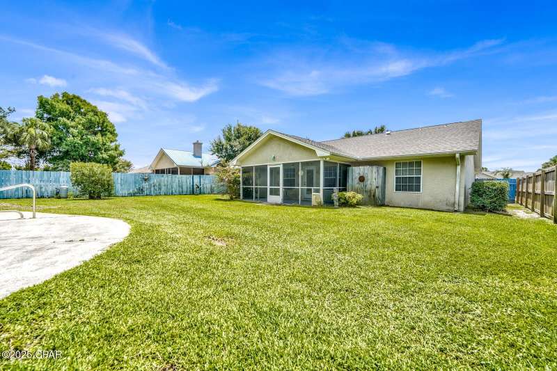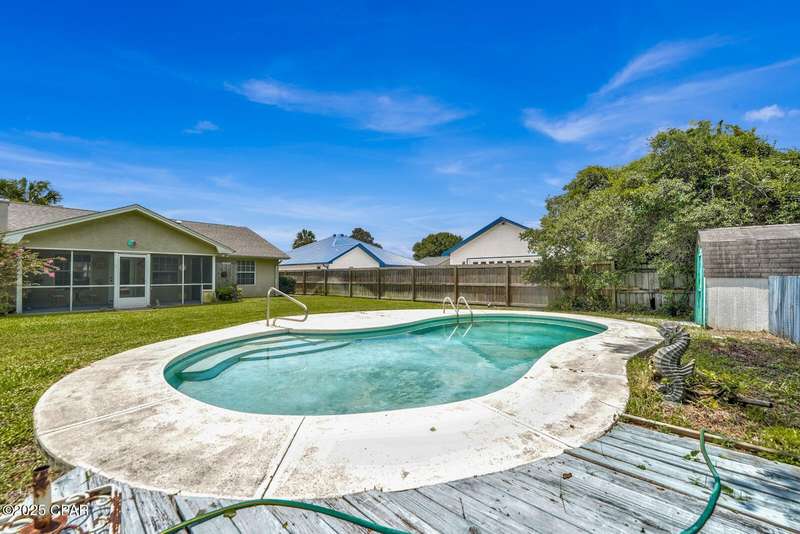 CURRENTLY UNDER CONTRACT, SELLER WILL CONSIDER BACKUP OFFERS Opportunity awaits on the west end of Panama City Beach! This 3-bedroom, 2-bath home with private pool and 2-car garage is tucked away south of Hwy 98 on a rare 1/4-acre lot, just a short stroll to one of Bay County's quietest beach accesses. The home offers a desirable split floor plan, vaulted ceilings in the master and main living area, abundant closet space, and a screened-in back porch overlooking the pool. Original interior with excellent potential for updates and personal touches. Brand new roof (2025), no HOA, and short-term rental approved - ideal as a primary residence, second home, or investment property.All measurements are approximate. Buyer to verify all dimensions, information, and details deemed important.