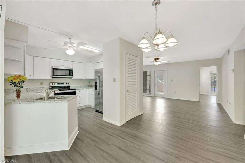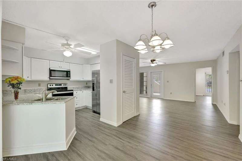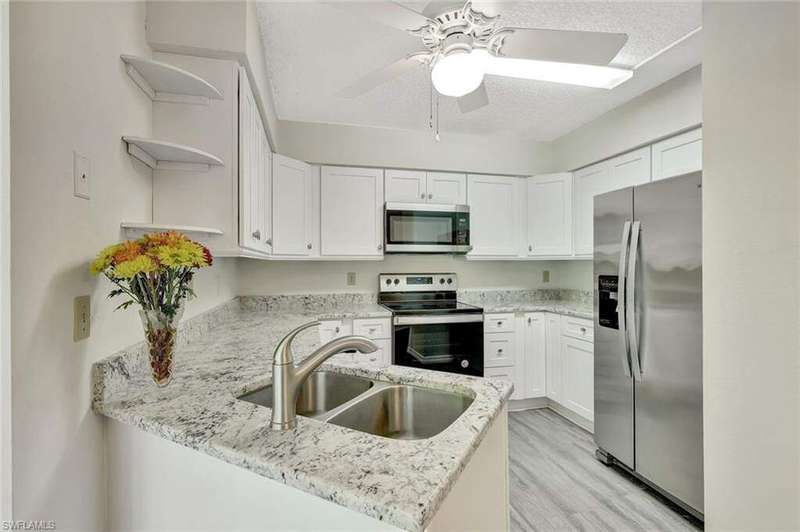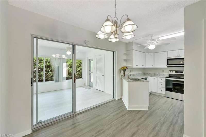 Beautifully renovated, 1st floor, 2 bedroom, 2 bathroom condo! Located in the lovely Hidden Gardens 55+ community. There is a private patio located just outside of the entry, then enter into the open concept living area and on to the kitchen, with newer white cabinets and granite countertops and newer appliances. The kitchen is open to the dining area. The primary bedroom is spacious with an ensuite bathroom and small outside patio. The ensuite bathroom has a walk-in shower and nice vanity with granite countertop. In a separate private hallway your guests will enjoy the guest bedroom with a view of the landscaped back area and also updated guest bathroom. The rear of the property features a sun room enclosed with impact windows. There is also a nice utility room which houses a washer and dryer. Enjoy the community pool, shuffleboard, community room with activities, car wash area and so much more. Hidden Gardens is located just off of College Pkwy with access to shopping, dining, churches and not to far to the local beaches. The community is financially sound and has no outstanding assessments.