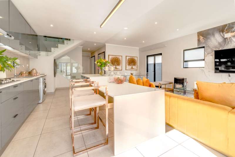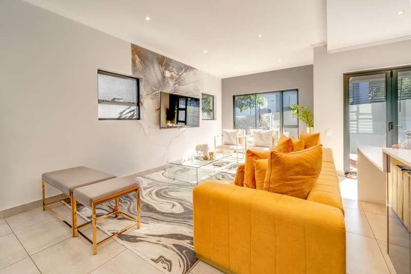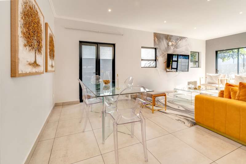 Your Ideal Home Awaits and Price Negotiable! Located in the heart of Sandton, this beautifully designed double-storey cluster offers the perfect blend of modern elegance and secure, convenient living. Ideal for professionals, executives, or a young family seeking stylish comfort in a prime location. Ground Floor Features: • Welcoming Entrance Hall: Step into a spacious and elegant foyer that sets the tone for this contemporary home. • Designer Kitchen: Featuring a large center island, this sleek kitchen is both functional and stylish. It opens to a charming lounge, dining patio—perfect for entertaining or relaxing. • Open-Plan Living Spaces: The seamless flow between the lounge and dining area is enhanced by stacker doors, inviting natural light and effortless indoor-outdoor living. • Guest Cloakroom: Thoughtfully positioned for visitors, ensuring privacy in your main living areas. • Direct Garage Access: Automated double garage with convenient internal access. Upstairs Features: • Pyjama Lounge with Built-in Study: An ideal space for family downtime, remote work, or study. • Two Well-Sized Bedrooms: Both en-suite with full bathrooms, offering privacy and comfort. • Luxurious Main Suite: Includes a walk-through dressing area, opulent en-suite bathroom, and access to a large balcony with lovely views. Additional Features: • Private Garden: A well-maintained outdoor space perfect for unwinding or hosting guests. • Modern Finishes Throughout: Clean lines, contemporary fittings, and high-end materials complete the aesthetic. • Staff Quarters: Includes a bedroom with its own kitchenette and en-suite bathroom. • Top-Tier Security: 24/7 access control, electric fencing, and a guarded entrance provide peace of mind. • Prepaid Electricity: Offering cost-effective utility management • Unbeatable Location: Just minutes from Sandton CBD and the Gautrain station connectivity and convenience at your doorstep. This home isn’t just a residence it’s a lifestyle investment in one of Sandton’s most desirable enclaves. Contact us today to arrange your private viewing!