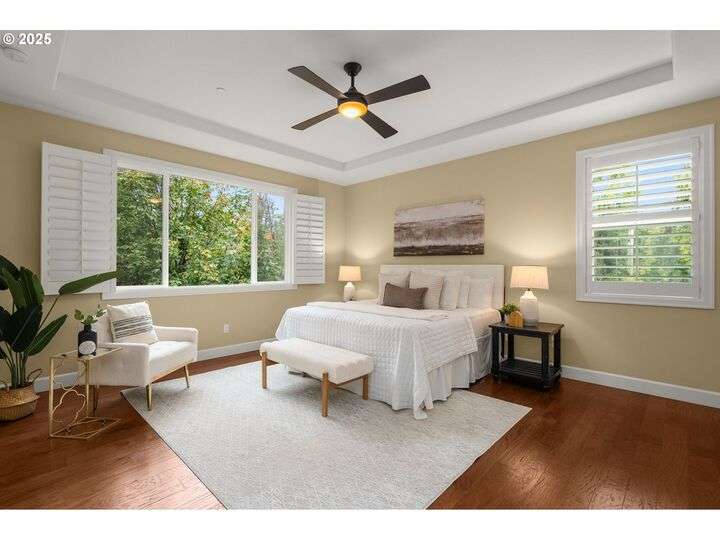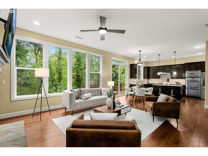 Your childhood dreams of living in a tree house are now a reality! This impeccably kept, one owner Bonny Slope home lies at the end of a private lane & has all the amenities you could ever want or need. The best that NW Portland has to offer in one of the most desirable areas. Beaverton Schools, Washington Co. tax dist. & less than 20 minutes to downtown Portland. This Energy Certified Home backs to Green Space maintained by the HOA, Paid off Solar Panels, Fire Sprinkler System, Engineered Hardwood Floors throughout the home, 10’ Ceilings on main floor with 9’ on 2nd level & Basement. Custom Plantation shutters throughout. A finished walk-out basement has multi-generational or income potential, with living area including gas fireplace, bedroom with walk-in closet & a 3/4 Bath. 3 mins to Bonny Slope Elem. 4 minutes to Tumwater MS. 5 minutes to Cedar Mills Shopping area & 10 mins to Cedar Hills Crossing. A spacious primary retreat is nestled behind French Doors & feels like you're living in the tree canopy. Watch birds & leaves turn for the fall & emerge again for Spring with a beautiful variety of flowering & evergreen trees. The en-suite has a deep soaking tub, walk-in shower, double sink, private commode room & a jaw dropping 14x10’ closet with chandelier for your wardrobe. 3 additional spacious rooms, a full bathroom & Laundry complete the 2nd floor. The main floor has an office/den, 3/4 Bathroom with walk-in shower, a Formal Dining Room & large living room with Gas Fireplace and a full wall of picture windows for gazing at the gorgeous Green Space.