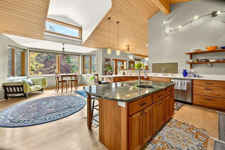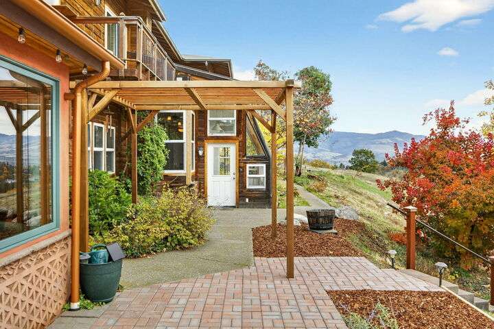 Welcome to your own oasis: a truly unique property offering 3 living spaces on nearly 5 peaceful acres w/ beautiful mtn & valley views 5 minutes from downtown Ashland. Whether you're seeking a multi-generational home, income-producing rentals, or a private retreat, this property provides incredible flexibility. The main home (built in 2011), blends creativity & comfort w/ American clay walls, radiant heat floors, & an open-concept layout filled w/ light. The spacious kitchen is ideal for entertaining, flowing seamlessly into a large living area w/ tranquil mtn views. It features a large primary suite on the main level, an additional bedroom/office, and a great room — perfect for family gatherings or guests. Connected yet distinct, the original home offers 3 bedrooms, 2.5 baths, & a large multipurpose room w/ a passive solar sunroom. A separate studio apt w/ a private entrance adds even more versatility. Outside, enjoy the rolling pasture, vineyard, garden space & breathtaking views.