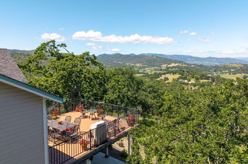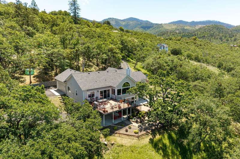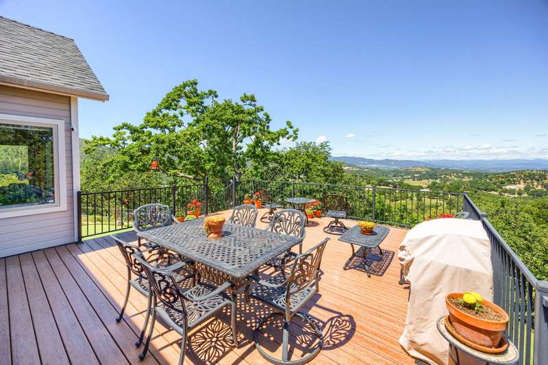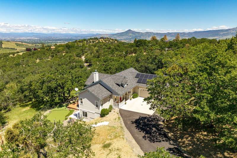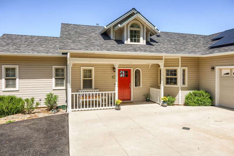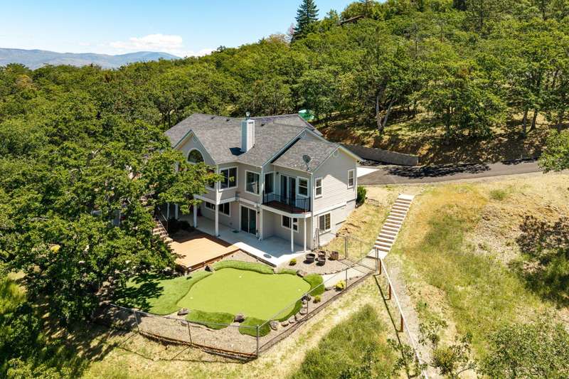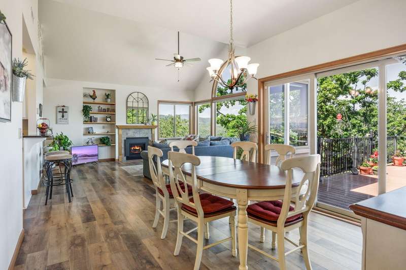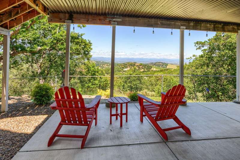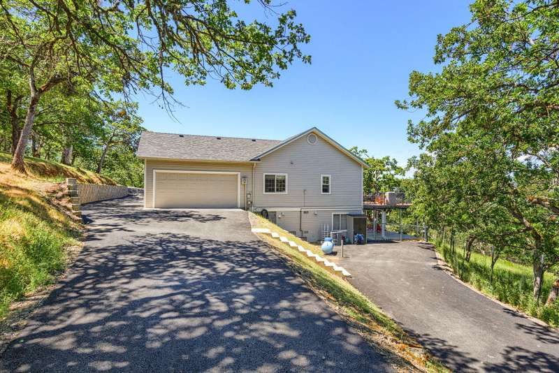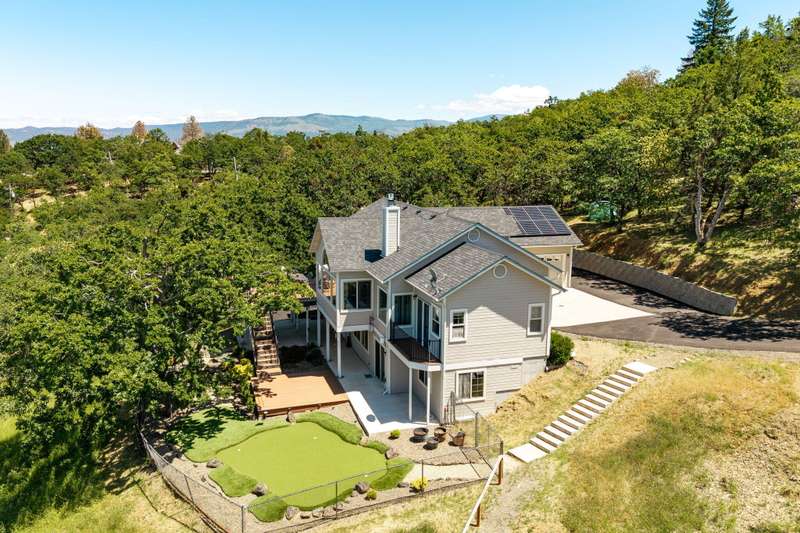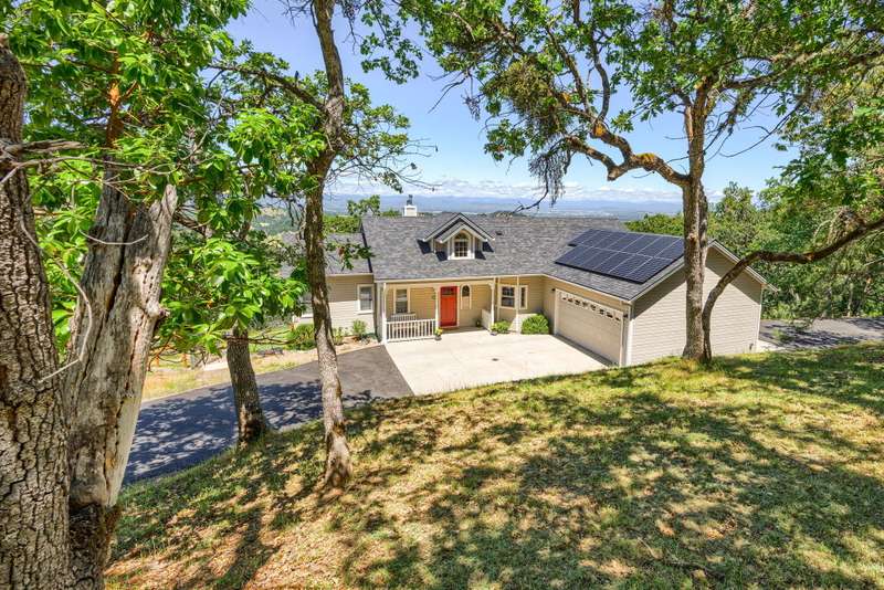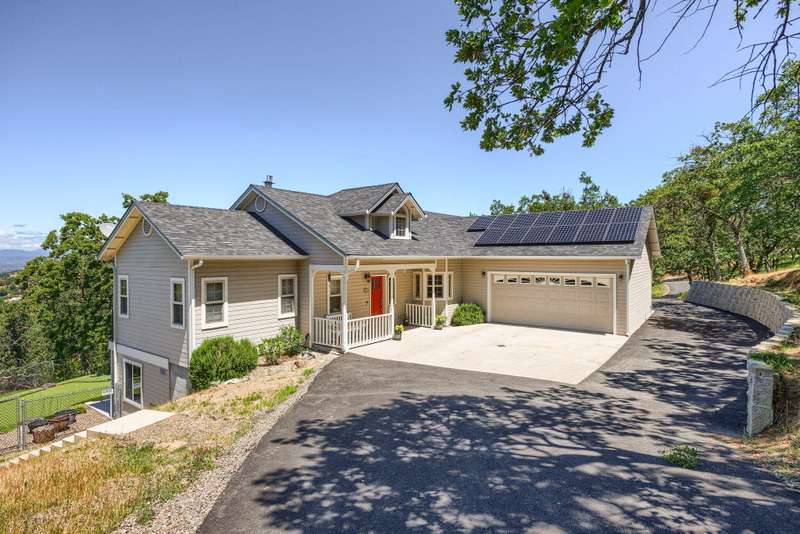 Updated home w/over $135,000 in improvements! Pioneer Hills subdivision offers paved road w/tennis court & views of the Valley, Table Rocks, Vineyards & City Lights. 4 bdrms, 3 baths all updated w/tile walk in showers, granite & quartz counters, new laminate floors, door trim, baseboards, new asphalt driveways. Vaulted ceilings, lg windows to take in the forever views. Open kitchen w/eating bar, white cabinets w/pull outs, dbl ovens and 5 burner gas cook top & door to 440 SQ FT deck perfect for entertaining overlooking the views. Great rm w/built in bookshelf and gas log fireplace. Main level living w/3 bdrms including the primary suite & 2 full baths. Upstairs is an open loft area. Lower-level 4th bdrm, full bath, family rm, office & private door to patio with water feature, putting green and chicken coop. Energy efficient home w/solar. Dual garage doors for easy pull through