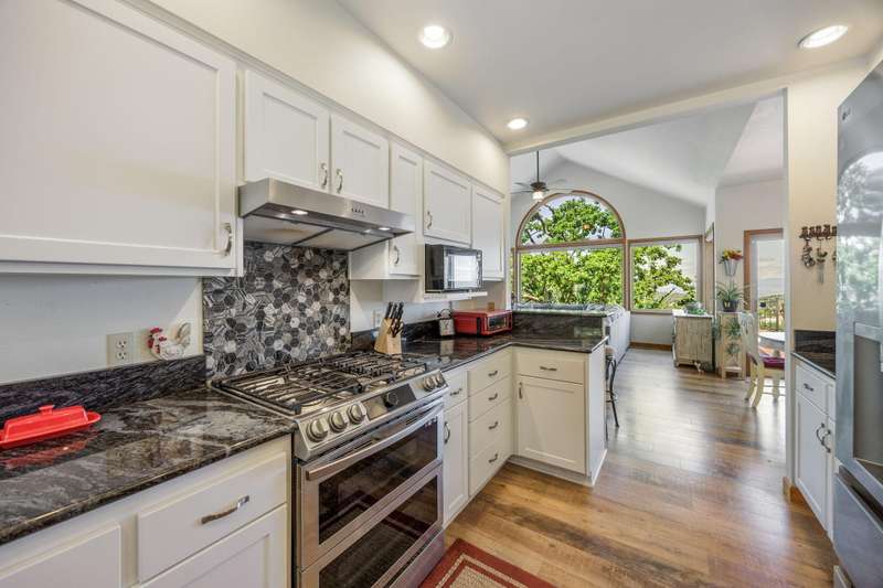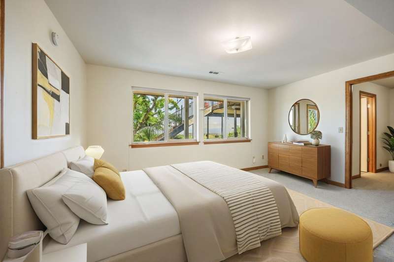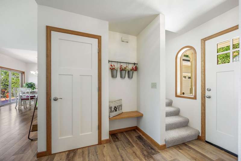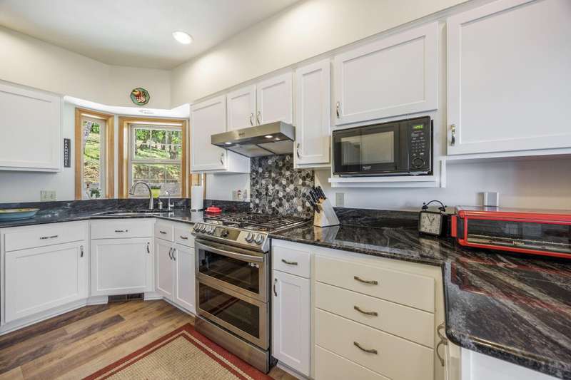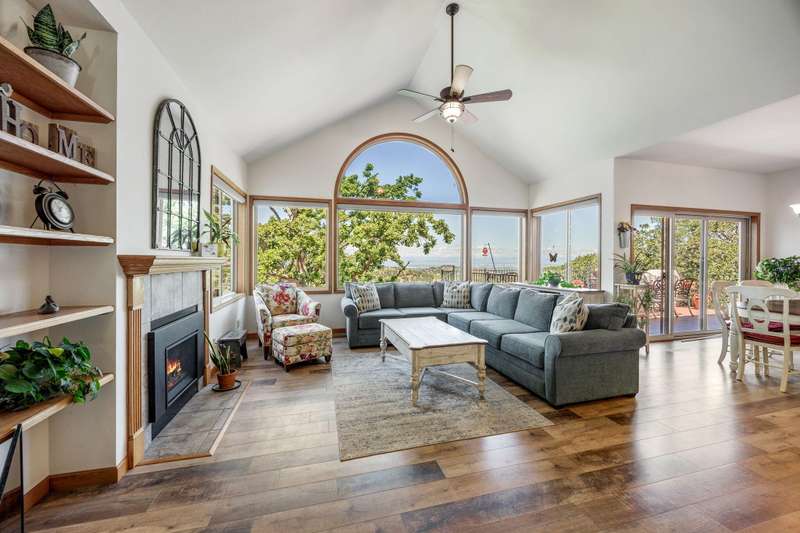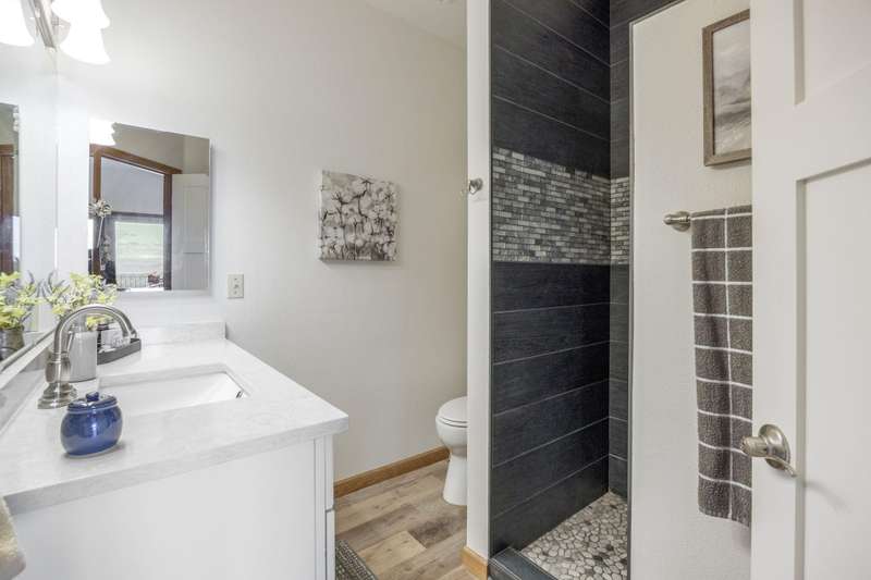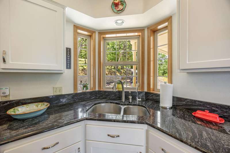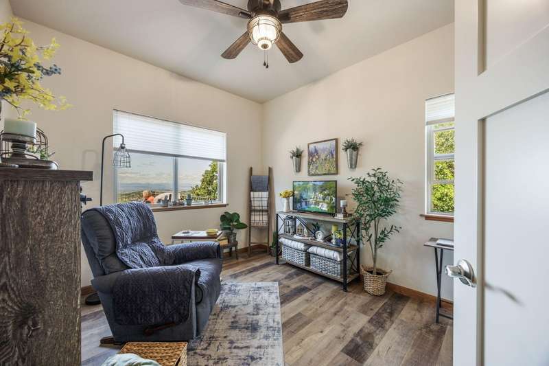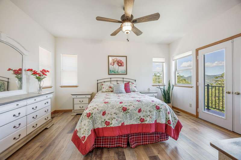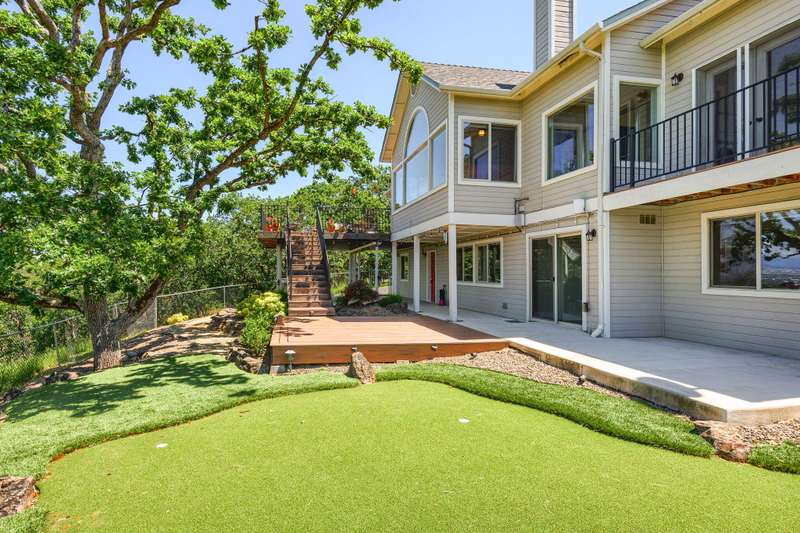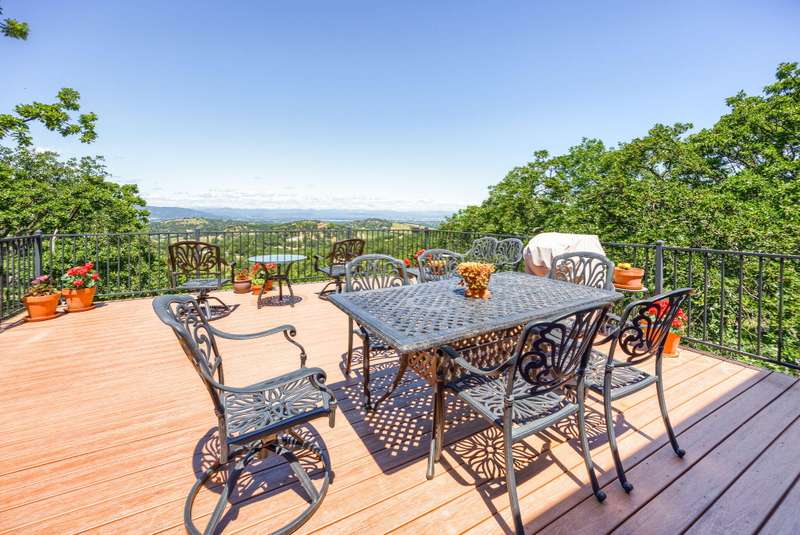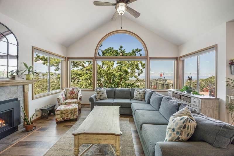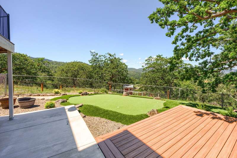 Updated home w/over $135,000 in improvements! Pioneer Hills subdivision offers paved road w/tennis court & views of the Valley, Table Rocks, Vineyards & City Lights. 4 bdrms, 3 baths all updated w/tile walk in showers, granite & quartz counters, new laminate floors, door trim, baseboards, new asphalt driveways. Vaulted ceilings, lg windows to take in the forever views. Open kitchen w/eating bar, white cabinets w/pull outs, dbl ovens and 5 burner gas cook top & door to 440 SQ FT deck perfect for entertaining overlooking the views. Great rm w/built in bookshelf and gas log fireplace. Main level living w/3 bdrms including the primary suite & 2 full baths. Upstairs is an open loft area. Lower-level 4th bdrm, full bath, family rm, office & private door to patio with water feature, putting green and chicken coop. Energy efficient home w/solar. Dual garage doors for easy pull through