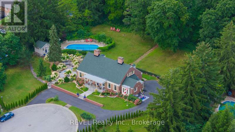 LOCATION LOCATION LOCATION!!! Here is a rare opportunity to own this stunning grand estate built as a replica of a double red brick Georgian Manor. This property exudes timeless elegance and has been owned and lovingly maintained by the same owner for the past 15 years. Perched on the top of the hill, this home allows you to enjoy the spectacular sunrise views of the Niagara Falls skyline. New pool liner June 2025. 2023 updates include custom sliding doors and shutters, custom wrought iron handrails, all hardwood flooring refinished including custom oak staircase, original custom oak parquet and plank Douglas fir, pool filter. 2021 updates include porch rebuilt, shingles and eavestroughs, kitchen breezeway, all windows including basement and outbuildings. Top notch security system. Soaring 10' ceilings, solid brass door knobs and custom millwork throughout plus three marble wood burning fireplaces creating an atmosphere of grandeur. Artistic plaster ceiling, with Italian alabaster marble 24K gold dipped chandelier. Huge 24.5'X30.5' detached triple car garage with steel beam construction complete with full loft. Updated plumbing and electrical. A short stroll to Pelham town square for summer bandshell concerts, supper and farmers market, Summerfest, Meridian Center, Steve Bauer trail, gourmet restaurants, grocery stores and charming shops. Minutes to golf courses, wineries, orchards and bakeries. Imagine wandering through a sea of hydrangeas, past a serene armour stone waterfall, and along a stone path leading to a private, wrought iron gated oasis. Here, you will find an inviting heated 20'X40' inground pool plus a 14'X14' change house. Invisible fencing around the perimeter of the property. Complete package: privacy, stunning sunrises, stargazing, gorgeous views and mature trees creating a bird watcher's paradise. This rare blend of luxury, location, and lifestyle is ready for you to enjoy! (id:7434)