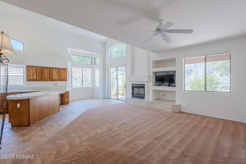 Seller shall accept or counter offers between $600K-$625K. Discover this fabulous home featuring soaring ceilings and bay windows, in the dining room and front window view out to a natural desert setting! Light and open island kitchen with cherry cabinets & breakfast nook, leading to a comfortable family room with a fireplace. Lavish master suite with retreat and walking balcony! Dual vanity master bath featuring separate soaking tub and shower, as well as a generous walk-in master closet. Spacious additional bedroom that can be easily converted back to two separate bedrooms, making this a truly special 4-bedroom home w/3 car garage! Private rear yard backs to a beautiful natural area! Enjoy the community pool/spa, club house and gated community! Sale subject to court approval.