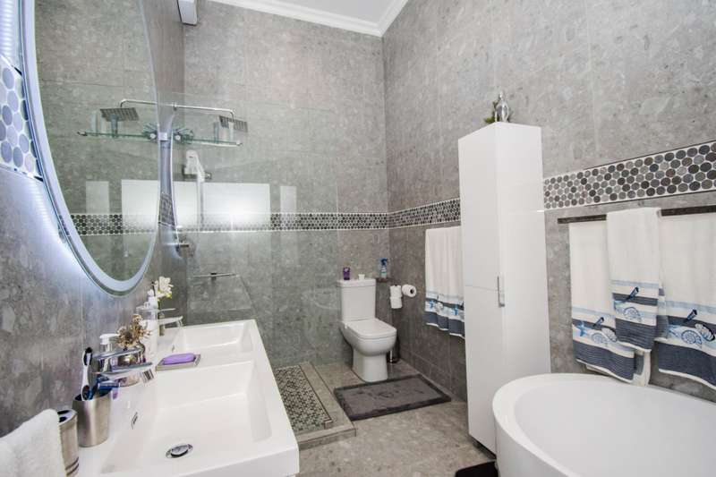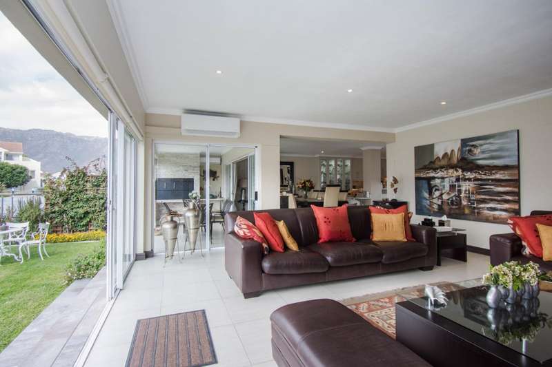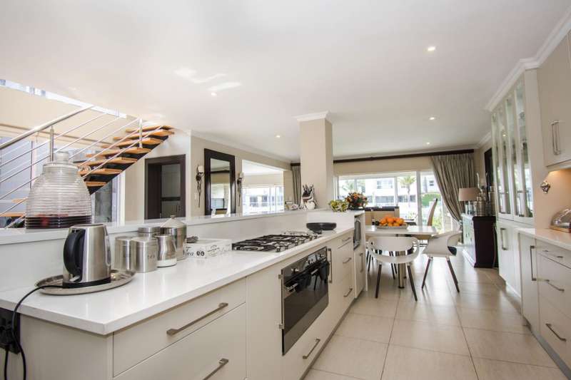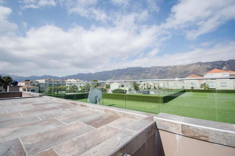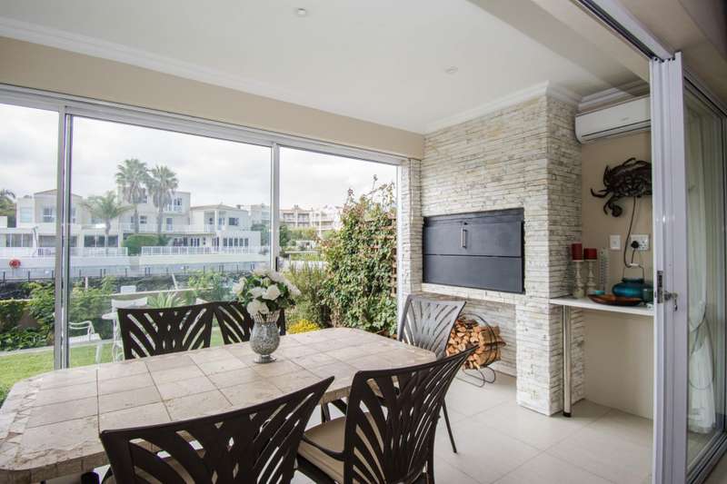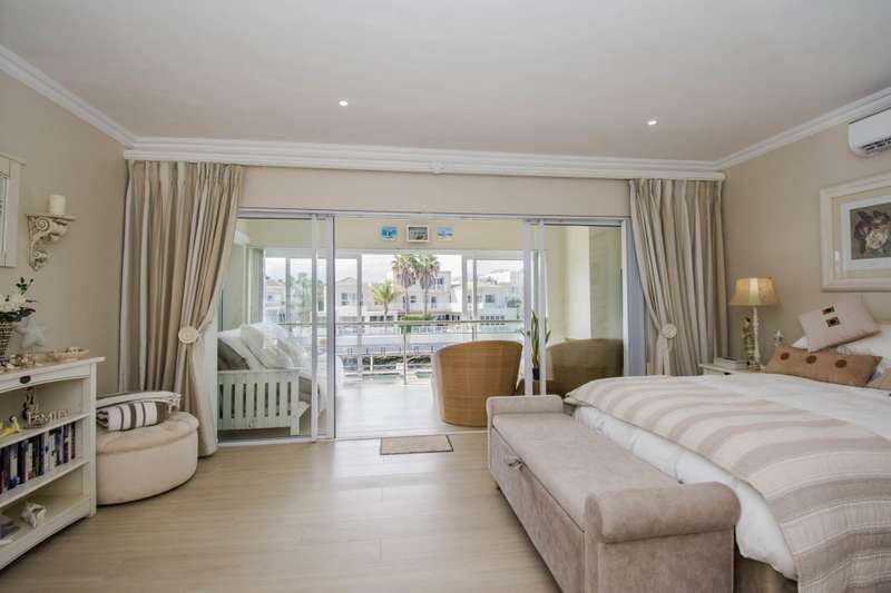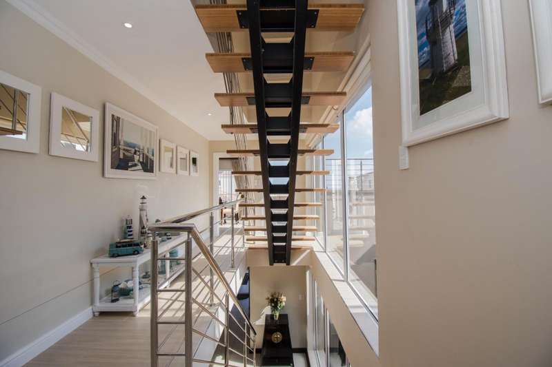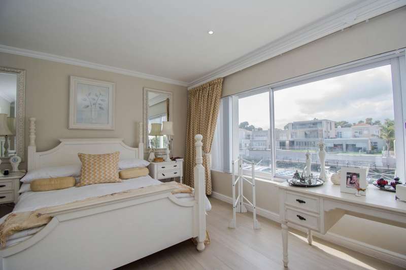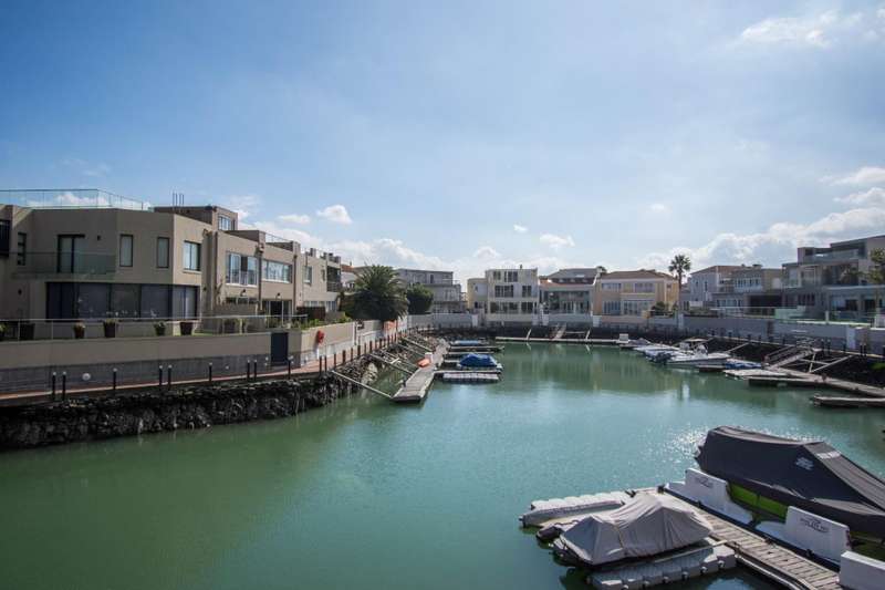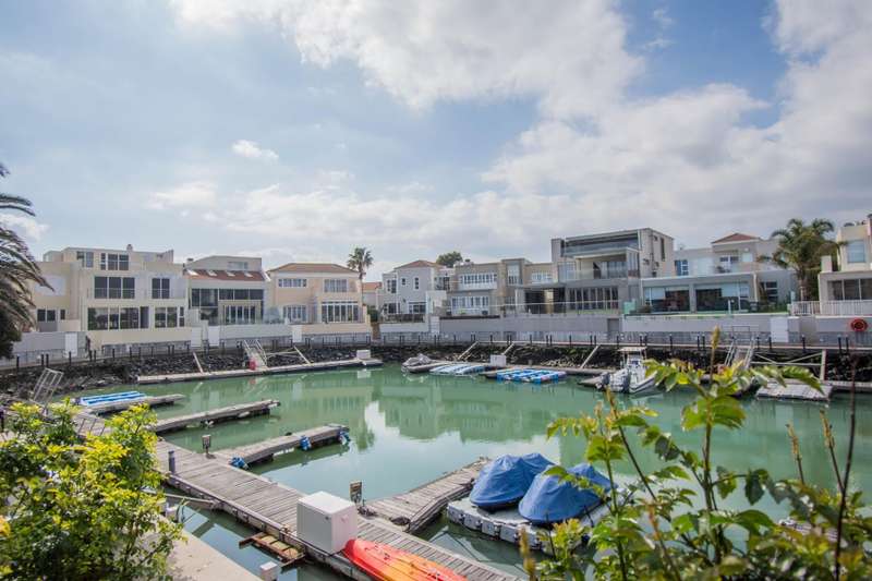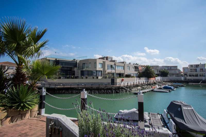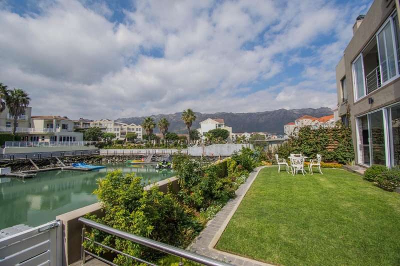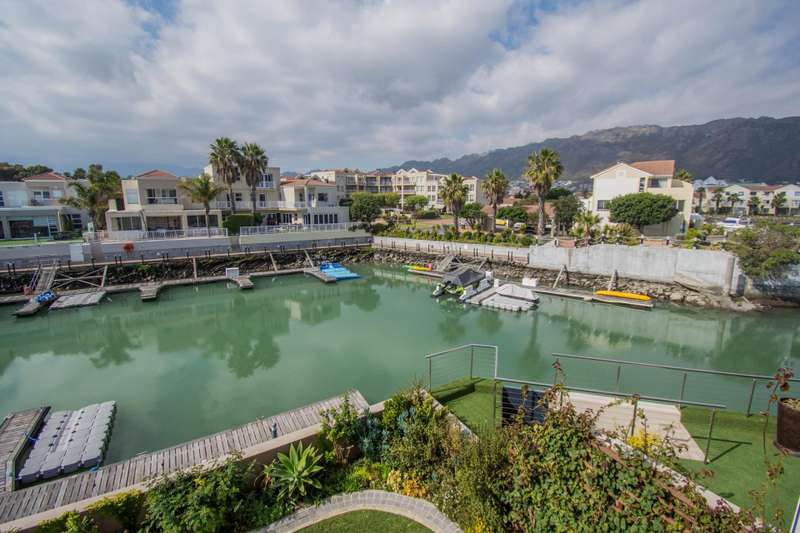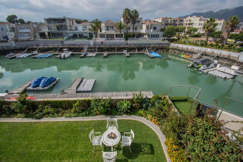 Harbour Island, a fully functioning marina carved into the coastline of Gordons Bay over two decades ago, offers the ultimate waterside living experience. It features canals and waterways, nestled under the Hottentots Holland Mountain range and hugging the False Bay coastline. This gated lifestyle estate boasts an impeccable security record and provides residents with access to private stretches of beaches. This immaculate three-story home overlooks the canals and includes its own mooring, situated just one row away from the ocean. Every luxury and convenience was considered in its recent renovation. The ground floor features a vast open-plan lounge, dining, and kitchen area with large sliding doors that open to the waterwise and manageable garden, and provide waterway access. There is a enclosed patio with a built in braai as well as a wind sheltered courtyard with a firepit and stylish wood storage which is accessed through the well-appointed bar area. This level also includes a double garage, domestic quarters, and a guest cloakroom. Parking for 3 additional vehicles on the driveway and one of the estates many isitor parking areas is close by. The second floor comprises three large bedroom suites, each with its own luxurious bathroom and enjoying views of either the ocean or the waterways. Floor to ceiling glass panes ensure maximum light throughout the first and second floor landings and are an impressive feature. The top floor consists primarily of various useable roof spaces that offer expansive mountain and sea views, along with a dedicated study.