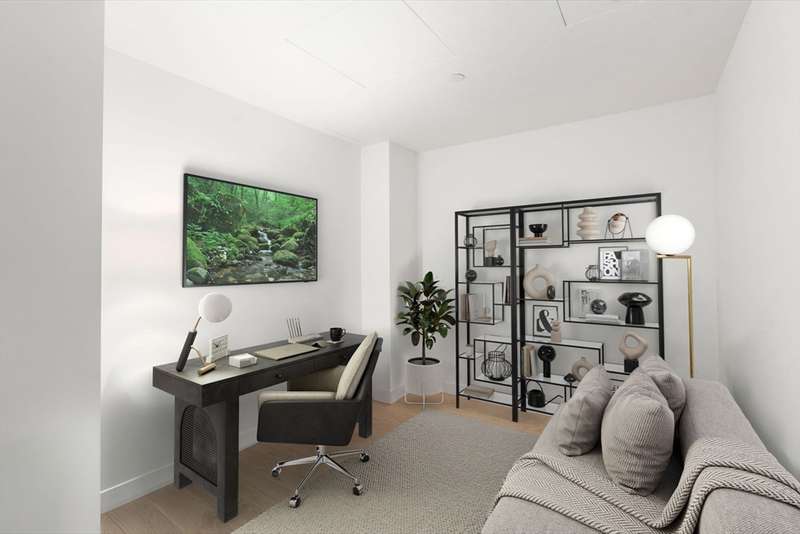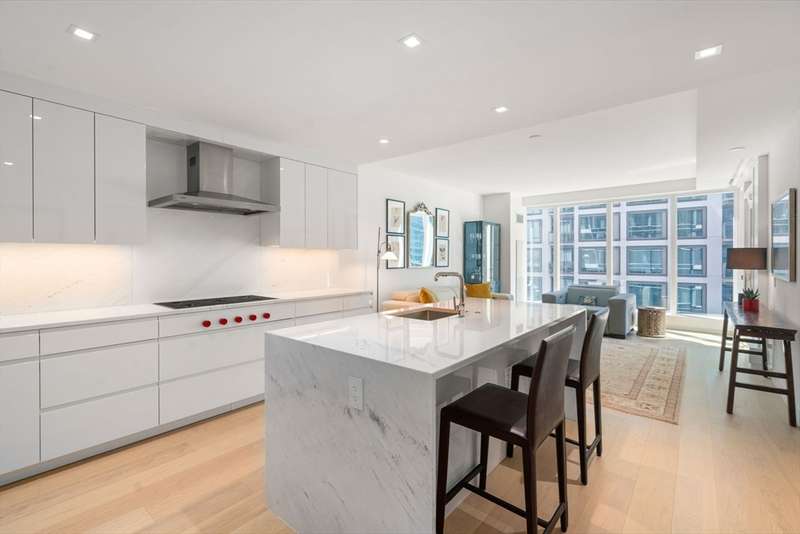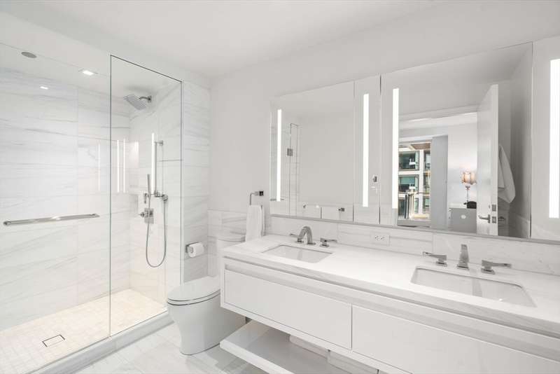 Perfect condition, oversized 1 bed+ den / office / guest room. This light & bright south facing unit features a private terrace with western exposure to capture sunset views, with custom motorized, Lutron shades. 1 Valet garage spot, storage unit, and the FULL SERVICE of the St. Regis brand offered at the most affordable price point in the building. Clients LOVE the building and staff, and are staying in the building. This unit features a large kitchen and huge island with waterfall marble counter tops and is approximately 1,128 square feet and truly pristine.The St. Regis is a residential complex with NO hotel component or shared amenity spaces and offers doorman, concierge, security, and valet. A large owner's lounge, gym, sauna and indoor pool facing the water round out amenity spaces for owners to enjoy. Steps to everything in the heart of Boston's fastest growing neighborhood. This is the perfect pied-a-terre for suburban clients eager to engage with the energy of the Seaport.