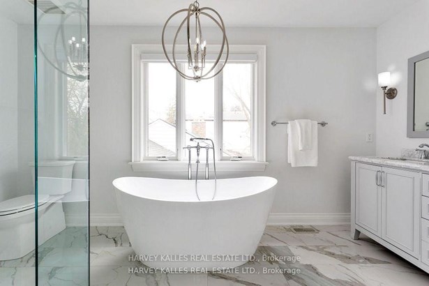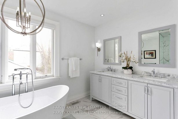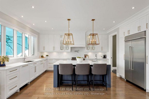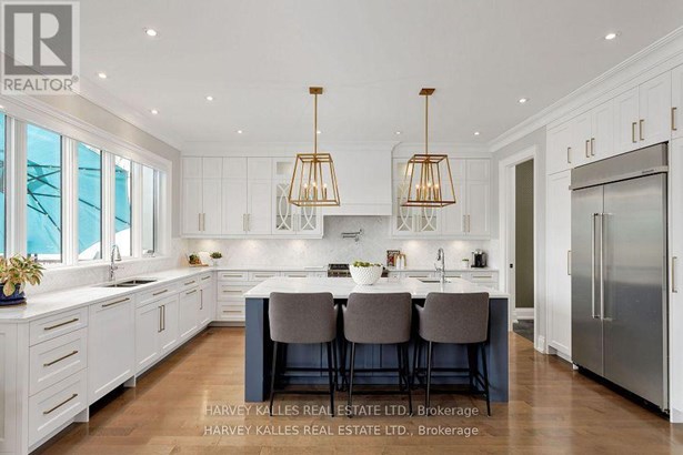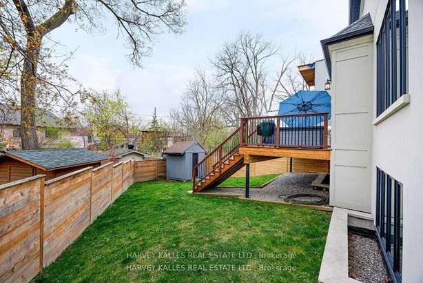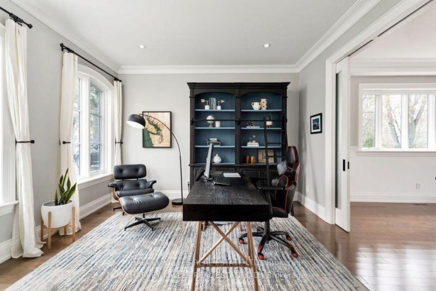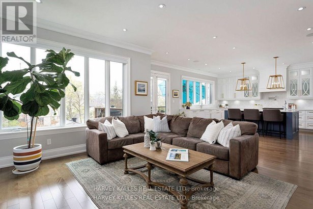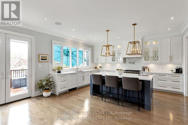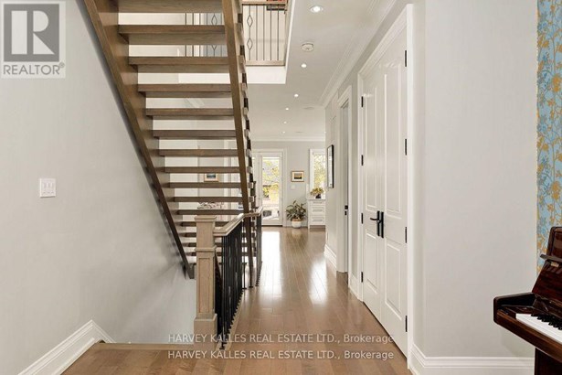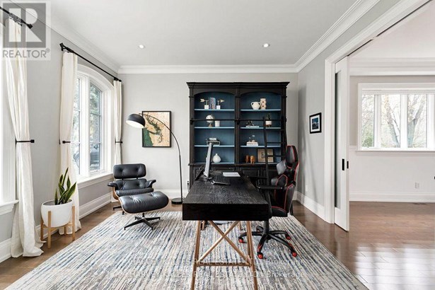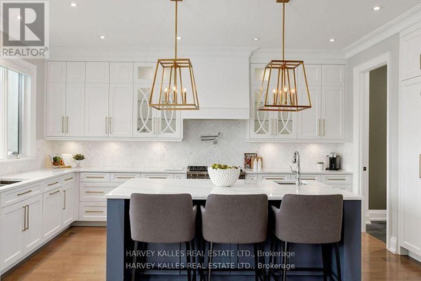 From the moment you step inside, you will be captivated by the bright and airy ambiance and architectural mastery of PhD Designs. Floating stairs draw you in and offer an uninterrupted view of the mature tree canopy seamlessly connecting the interior with the natural beauty outside. Beautifully constructed with the highest quality finishes throughout, this property will wow you over and over again. Professionally designed from top to bottom with large bedrooms and bathrooms and a Primary Suite you won't want to leave. Gleaming maple floors throughout and a showstopper chef's kitchen with expansive windows, double door walkout to the deck and an open layout that flows into the family room and dining room. A lovely executive office, lower-level rec room with a second office or gym, wet bar and ample storage complete the picture. Plus, a separate one-bedroom apartment with its own entrance, double drywall/sound barrier, high end finishes, laundry and bath provides a fantastic income opportunity bringing $1,800 to $2,000/month. Ideal for an in-law/nanny suite or extra rental income. This home was tastefully designed with a perfect floor plan, all the bells and whistles and comfortably parks 6 cars. Steps to Chestnut Hills Park, KCS, OLS, TTC, Kingsway, shops, restaurants, airports and highways. It's an opportunity not to be missed. (id:6370)