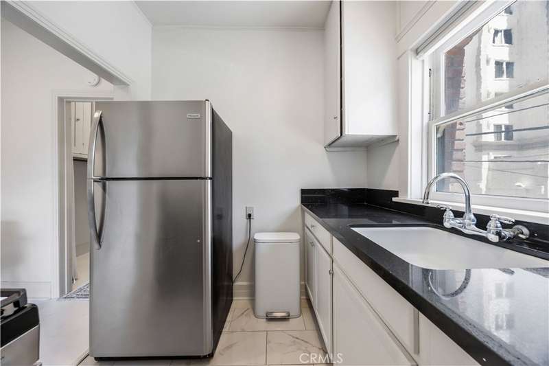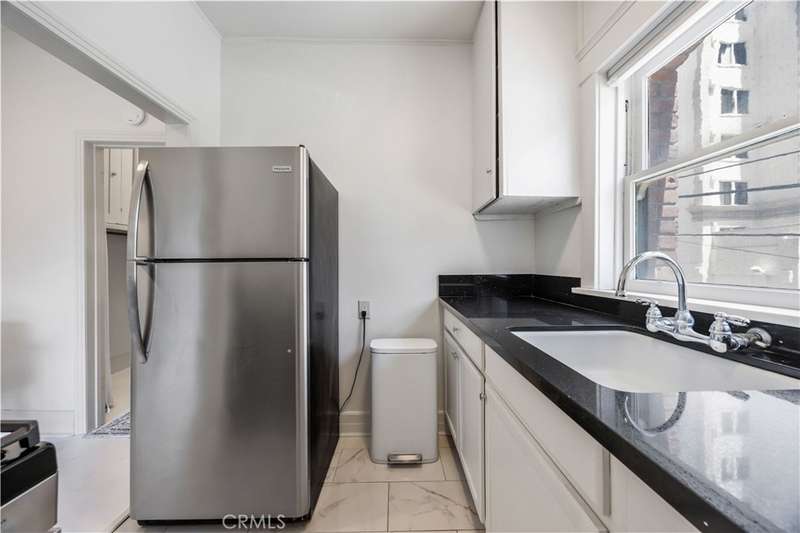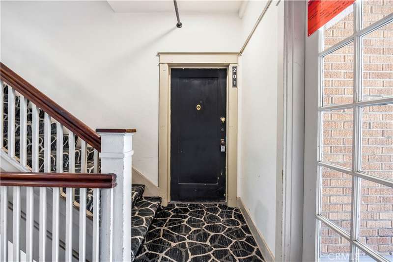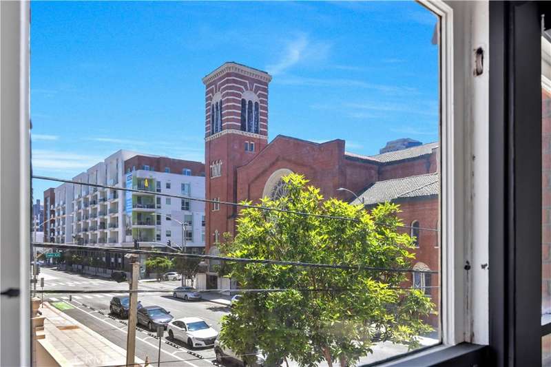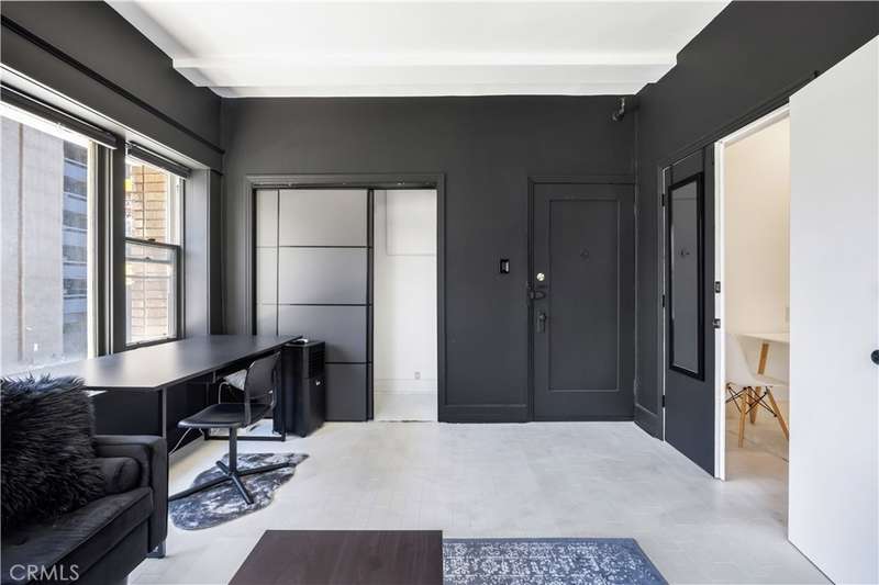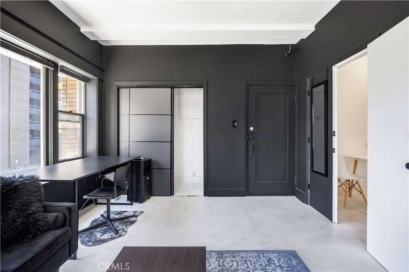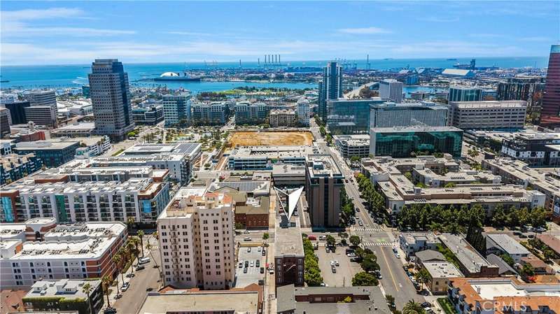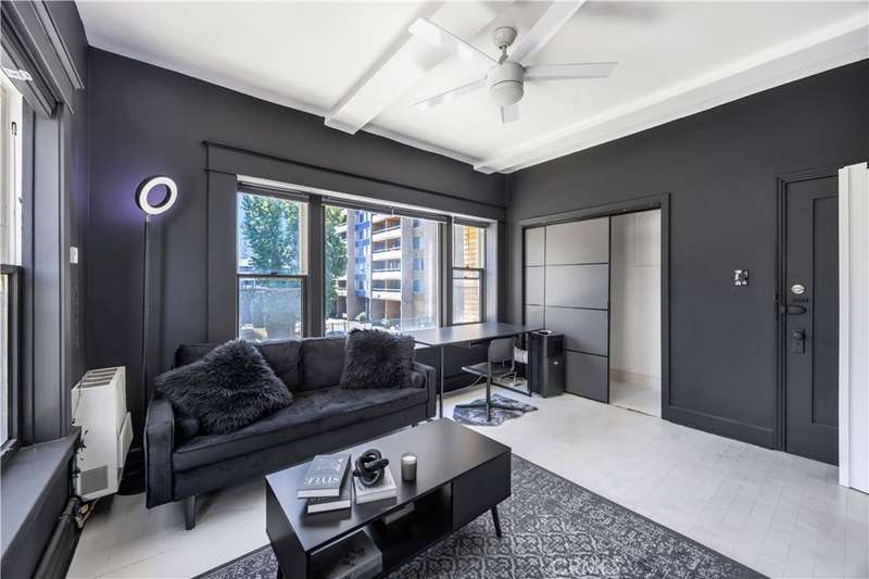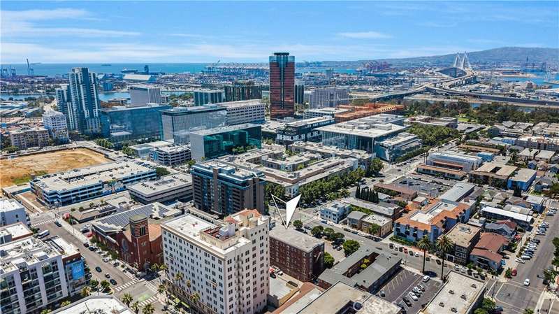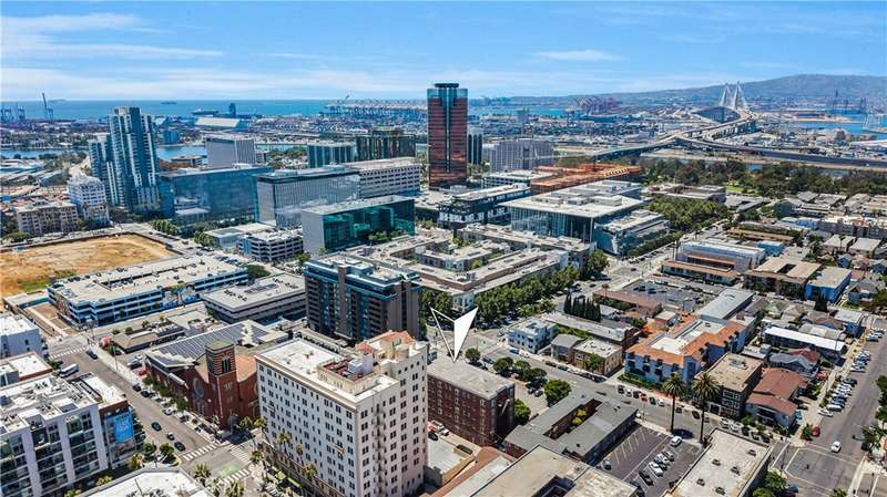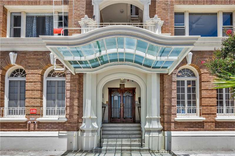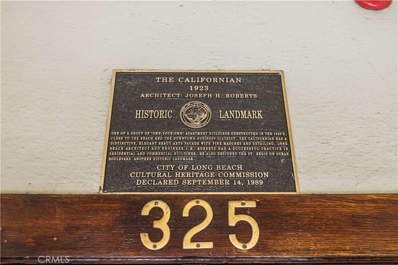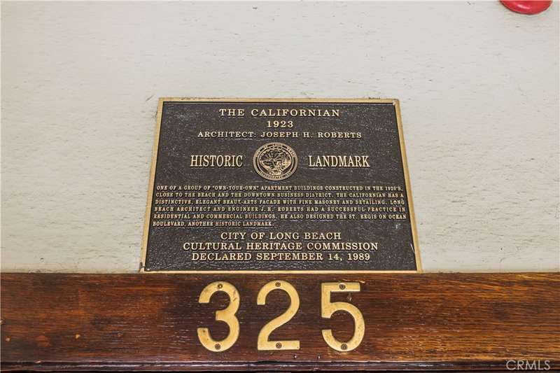 All set up and ready to be a short term rental! Step into the charming Beaux-Arts design of the iconic Californian built by Joseph Roberts in 1923. With a stunning top-floor solarium and grand lobby, it has all the feels of The Great Gatsby and all the conveniences of modern living. The HOA has taken great care to modernize amenities while preserving the history, including recently updated electrical grid, refurbished elevator, FOB-operated security doors and smartphone technology washers and dryers in the laundry room. You will enjoy the best of Downtown Long Beach, with all its vibrant nightlife and fast-paced walkability. Just steps to the theatre, the aquarium, the metro, The Pike, Pine Ave and the beach. There are 2 entrances to this unit, so you could easily have a roommate you never see! The first door leads to a cozy living room with sleek black walls and white floors, extra-high ceilings and wall-to-wall windows letting in tons of daylight. This corner unit allows a 360 view overlooking the majestic First Congregational Church with its striking Italian Romanesque Revival architecture. Both AC units are included. Double doors were installed for privacy, or leave them open to the small dining room and renovated kitchen, complete with stainless steel appliances, including a BRAND NEW STOVE! Enjoy the sunlight with a window over the sink, granite countertops and original wood cabinetry. Down the hall, you'll find the beautiful bathroom with classic original soapstone penny tiles and exposed brick wall above the updated shower and freshly painted walls. Finally, the hall opens to a large closet space and then the even larger bedroom, with its own windows and AC unit that stays! This corner, Southwest-facing unit provides the most natural light, and extra square footage you won't find in other units. Icing on the cake, the seller is including 6 months of FREE PARKING! The parking lot is right next door to the building and is included with the sale.Or you can choose any other parking lot in the area. ALL FURNITURE CAN BE INCLUDED! It's all yours, even the TV! Or it can be delivered empty if that's preferred. Well-run HOA includes gas, water and trash. Will be a perfect STR!