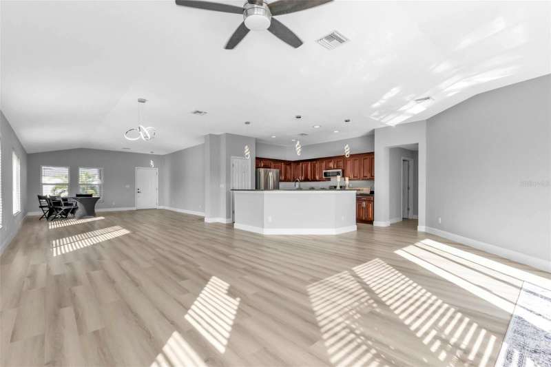 LIKE-NEW CONSTRUCTION IN A GOLF CART-FRIENDLY COMMUNITY! EVERYTHING IS NEGOTIABLE— EXCEPT FOR the annual rental price paid on a monthly basis. This beautifully renovated 3-bedroom + den, 2-bath home in Burnt Store Lakes offers modern luxury, an open-concept layout, and nearly $200,000 in upgrades. From the moment you arrive, the stone-accented columns and updated landscaping create impressive curb appeal. Inside, soaring ceilings, abundant natural light, and new luxury vinyl flooring enhance the spacious living area. The chef’s kitchen features sleek stainless steel appliances, solid wood cabinetry, and stunning stone countertops. A spa-like primary suite provides the perfect retreat, while two additional bedrooms and a versatile den offer flexibility for guests or a home office. Key upgrades include impact windows and a new front door, a fresh exterior paint job, an upgraded irrigation system, and epoxy-coated garage, driveway, and sidewalks for durability and style. Located in Burnt Store Lakes, residents enjoy scenic lakes, a community park with pavilions and a playground, and a kayak/canoe launch. Plus, Safe Harbor Burnt Store Marina is just a short golf cart ride away, offering waterfront dining, boat storage, and access to Florida’s second-largest saltwater estuary. Nearby, new shopping, dining, and grocery options continue to add to the area’s appeal. Don’t miss this opportunity to enjoy Florida living at its finest!