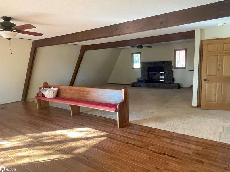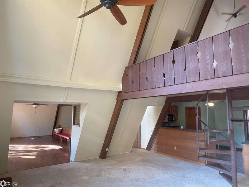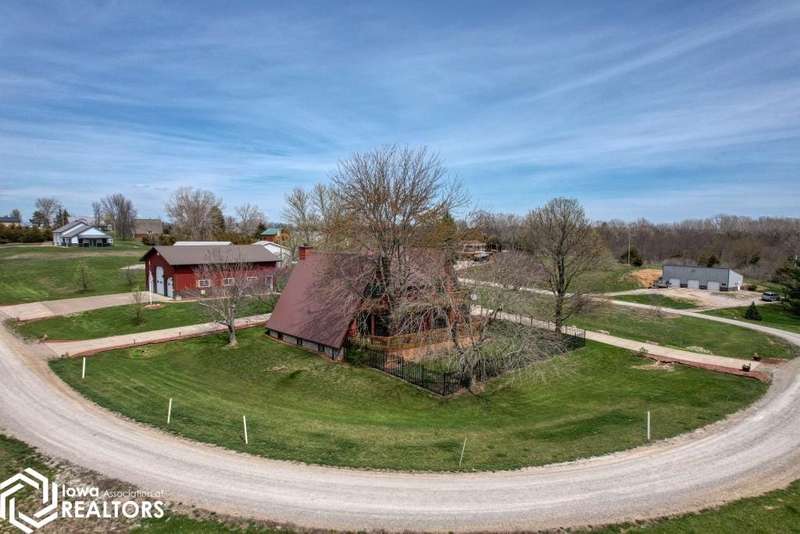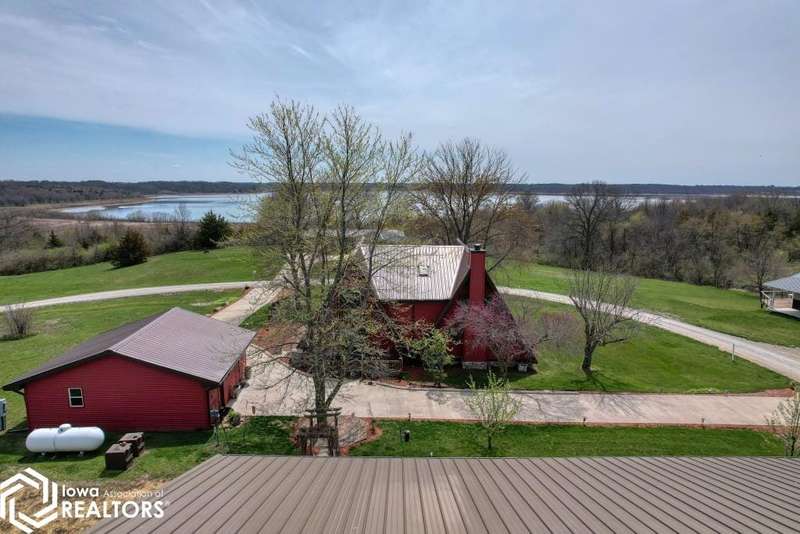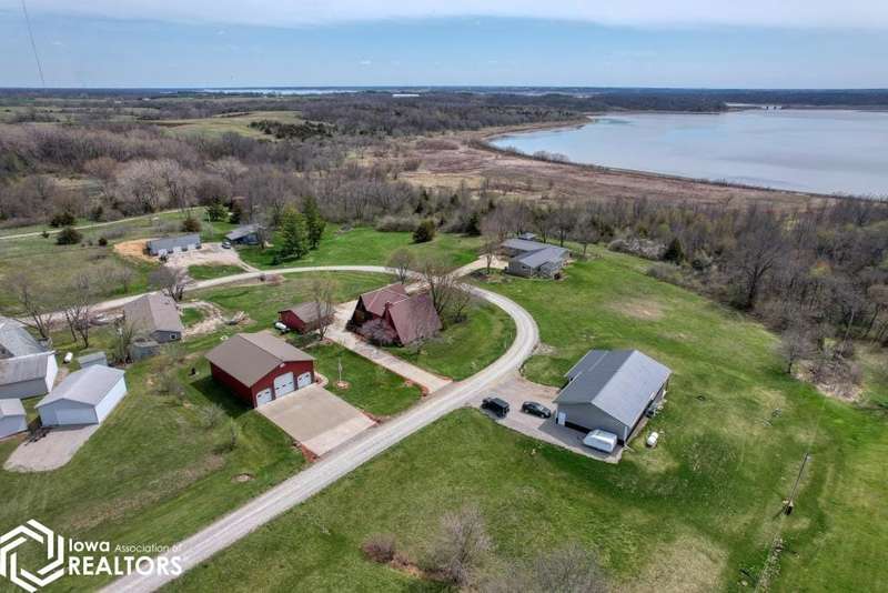PRICE REDUCED $15,000!!! Here it is! The ultimate lake home with wide open spaces overlooking Rathbun Lake at the Wind-n-Waves Subdivision. This 3 bedroom, 3 bath property sits on over 1/2 acre. 2-car detached garage as well as an amazing 36' x 45' fully insulated garage with a 12 foot door and ample storage for all of your toys. The double A-frame home has been meticulously maintained over the years with a 2nd A-frame with full basement added in 1987, the garage was also enlarged at this time. In 2010, the decks were replaced/added along with a 6-car garage with storage loft. in 2020, additional concrete was added. Beautiful views from the lower and upper decks alike. Finished basement has a sauna, full bath, laundry and a huge spare bedroom. There are large closets with ample storage throughout, a walk-in pantry and small utility room right off the kitchen. The sump pump handles tiling around the perimeter of the foundation. Partially fenced yard for your 2 or 4 legged babies. 5 fruit trees, including peach, apple, pear, plum and cherry trees, as well as 3 concord grape vines on the arbor. This property is backed up with a new whole house 20KW generator with automatic transfer switch covering the home and 2 garages. Large garage has running water. Appliance package with sale includes a brand new dishwasher (May, 2024), along with a large dehumidifier and upright freezer.