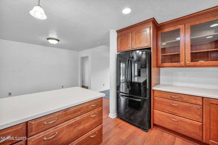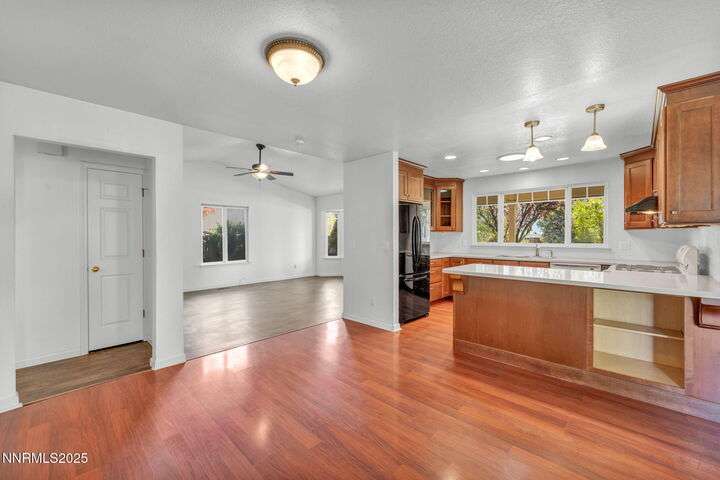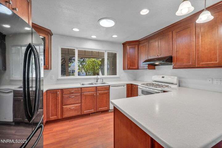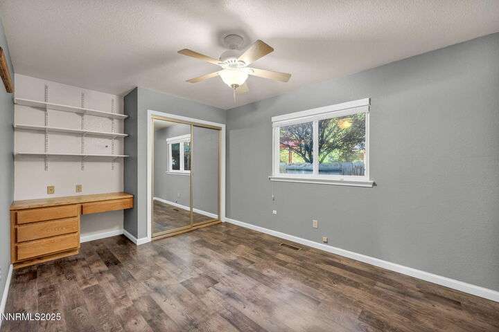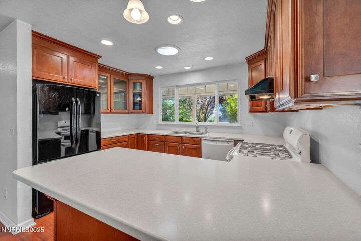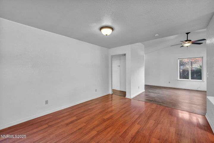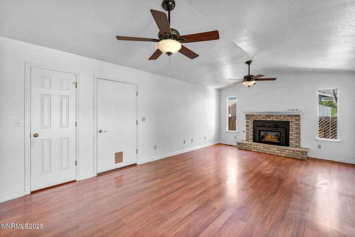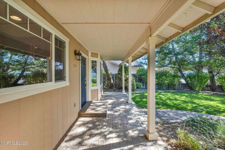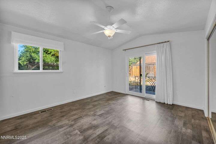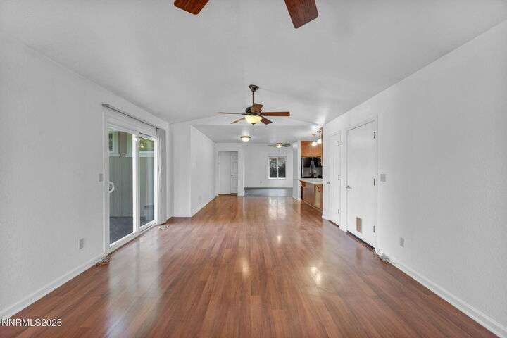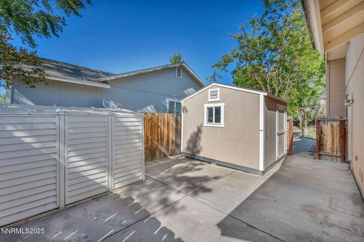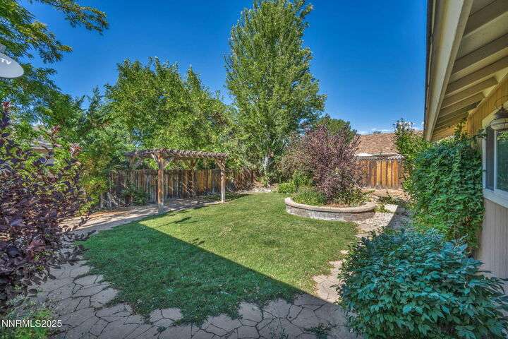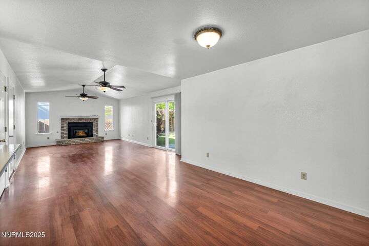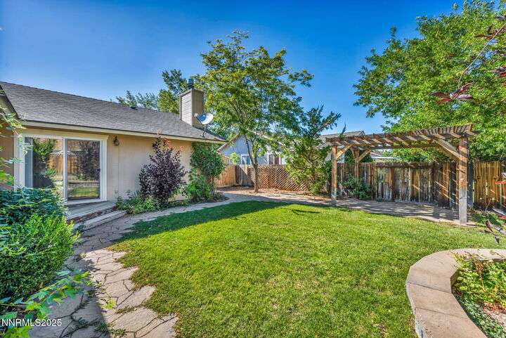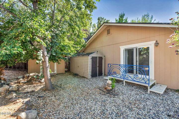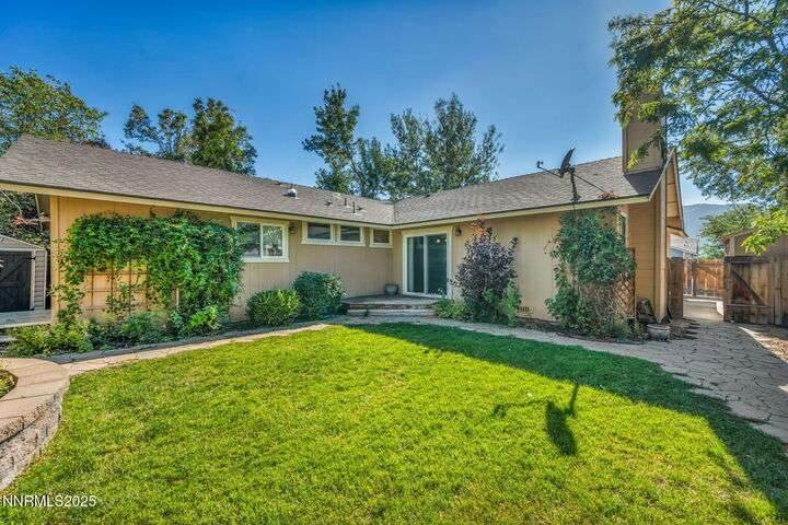 Welcome to this charming 3-bedroom, 2-bath home offering 1,695 sq. ft. of comfortable living space on a spacious 0.21-acre lot in the Gardnerville Ranchos. This property features beautifully landscaped front and back yards with stunning mountain views, perfect for enjoying Nevada's four seasons. Inside, you'll love the inviting living room with a cozy fireplace, a bright and open kitchen with a large pantry, breakfast bar, and appliances. The updated primary bath adds a touch of luxury, while ceiling fans throughout the home provide year-round comfort. The backyard includes storage sheds, providing ample space for all your tools, equipment, and seasonal items. Refrigerator, dishwasher, stove, drapes and ceiling fans all included with the sale making this home move-in ready. Don't miss the opportunity to own this beautifully maintained property. Schedule your showing today, you won't be disappointed!