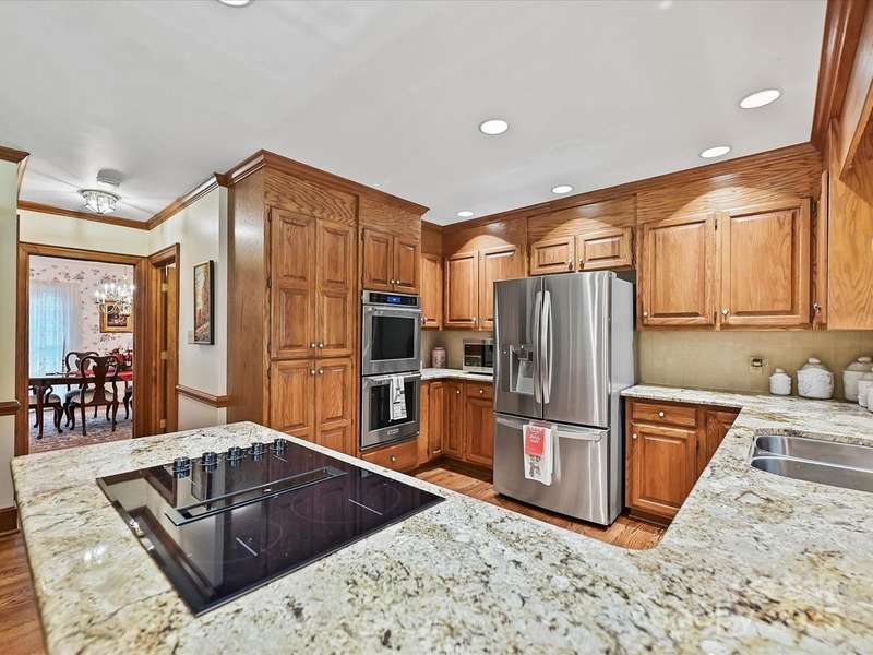 Truly a rare find! Brick home w mostly finished basement on an acre plus lot in a prime location! Custom Clark Hall double front doors, HW floors main level, formal rooms plus large GR w FP and built-ins, spacious kitchen w granite tops, double ovens, wet bar and bay BK room, large sunroom w vault ceiling, primary BR w double walk-ins and BA w granite tops, tile floor, whirlpool tub and shower, all secondary BRs are oversized, BR 5 could be a bonus room, basement w large bonus room/media room area plus amazing workshop and semifinished storage, wet bar, attached storage room. City water and sewer available, seller to pay tap fees. Basement finished area not permitted.