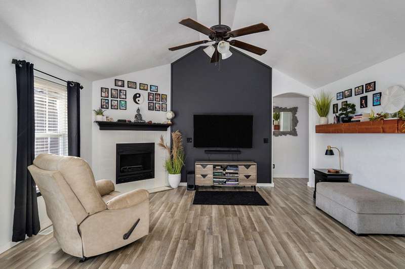 Move-in ready 3 bed, 2 bath home in desirable Ashcroft Estates! This clean, well-maintained property features an open living, dining, and kitchen layout with vaulted ceilings and a cozy gas fireplace. Enjoy vinyl plank flooring throughout, no carpet! The spacious master suite offers dual sinks and his & her walk-in closets. Outside, relax on the deck overlooking the privacy-fenced backyard with a maintenance-free exterior. Several custom feature walls and floating shelves add a touch of style throughout. All appliances stay, including refrigerator, microwave, washer, and dryer! Located on a .27-acre lot and conveniently close to Truman Elementary, Pleasant View Middle, and Hillcrest High. Stylish, practical, and truly move-in ready!