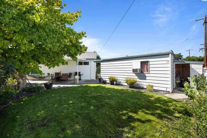 MLS# 286593 Welcome to this well-maintained 3-bedroom, 2-bathroom, 1,061 sq ft home located in the historical charm of Richland. This inviting residence features a spacious layout, perfect for comfortable living and laminate flooring throughout. Enjoy the practical convenience of a large detached garage with workshop space, ideal for hobbies or additional storage.Enjoy the peaceful backyard with a covered patio, perfect for entertaining.The fully fenced yard offers privacy and security, complemented by well-established landscaping that enhances curb appeal. This property combines modern functionality with classic character, making it a perfect choice for families or anyone seeking a cozy retreat in a desirable neighborhood near the Middle School, High School and across the street from Marcus Whitman Elementary. Don't miss the opportunity to make this lovely house your new home!