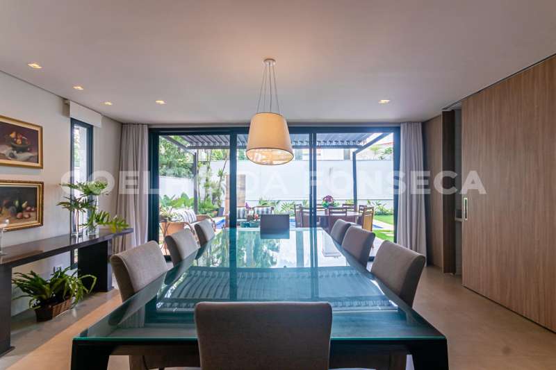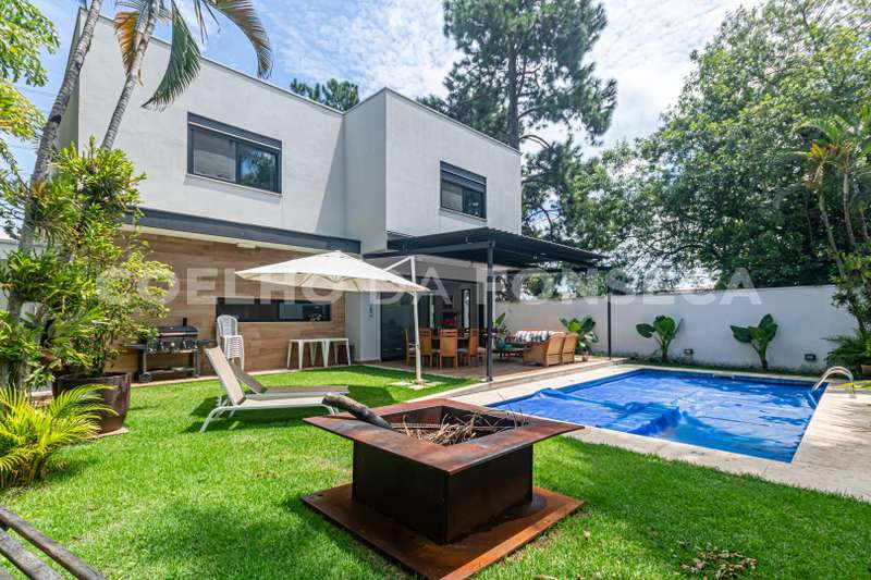 Acabamentos de alto padrão, a casa conta com 6 suítes, cozinha americana, área gourmet integrada e muita sofisticação.